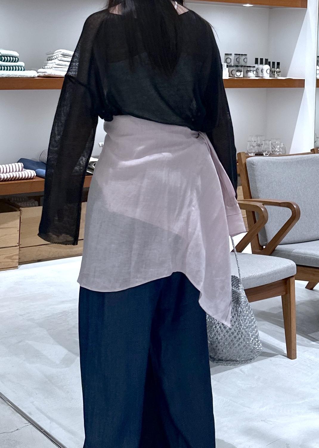 シンプル見えしないようにピンクのシャツを巻いてます。