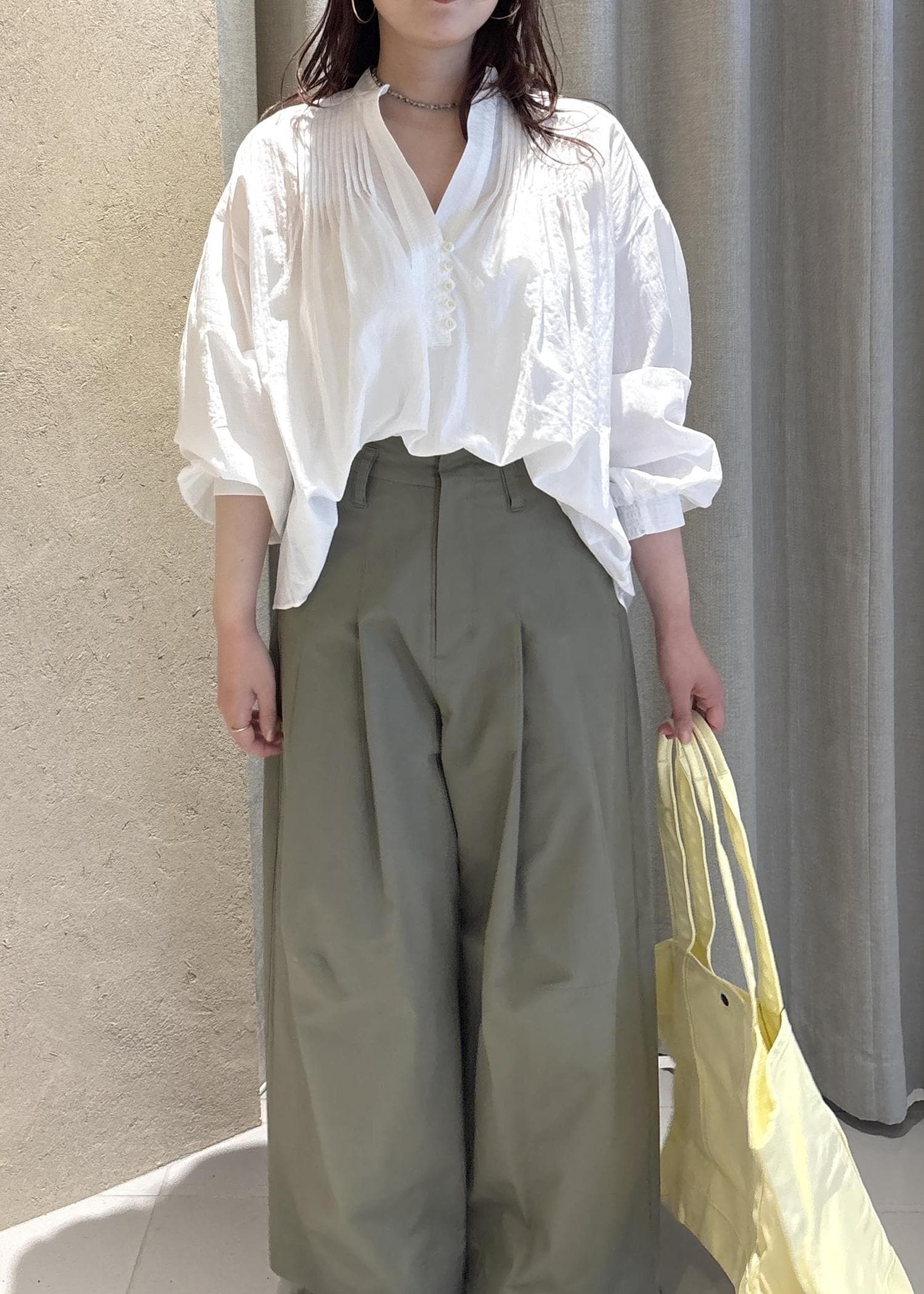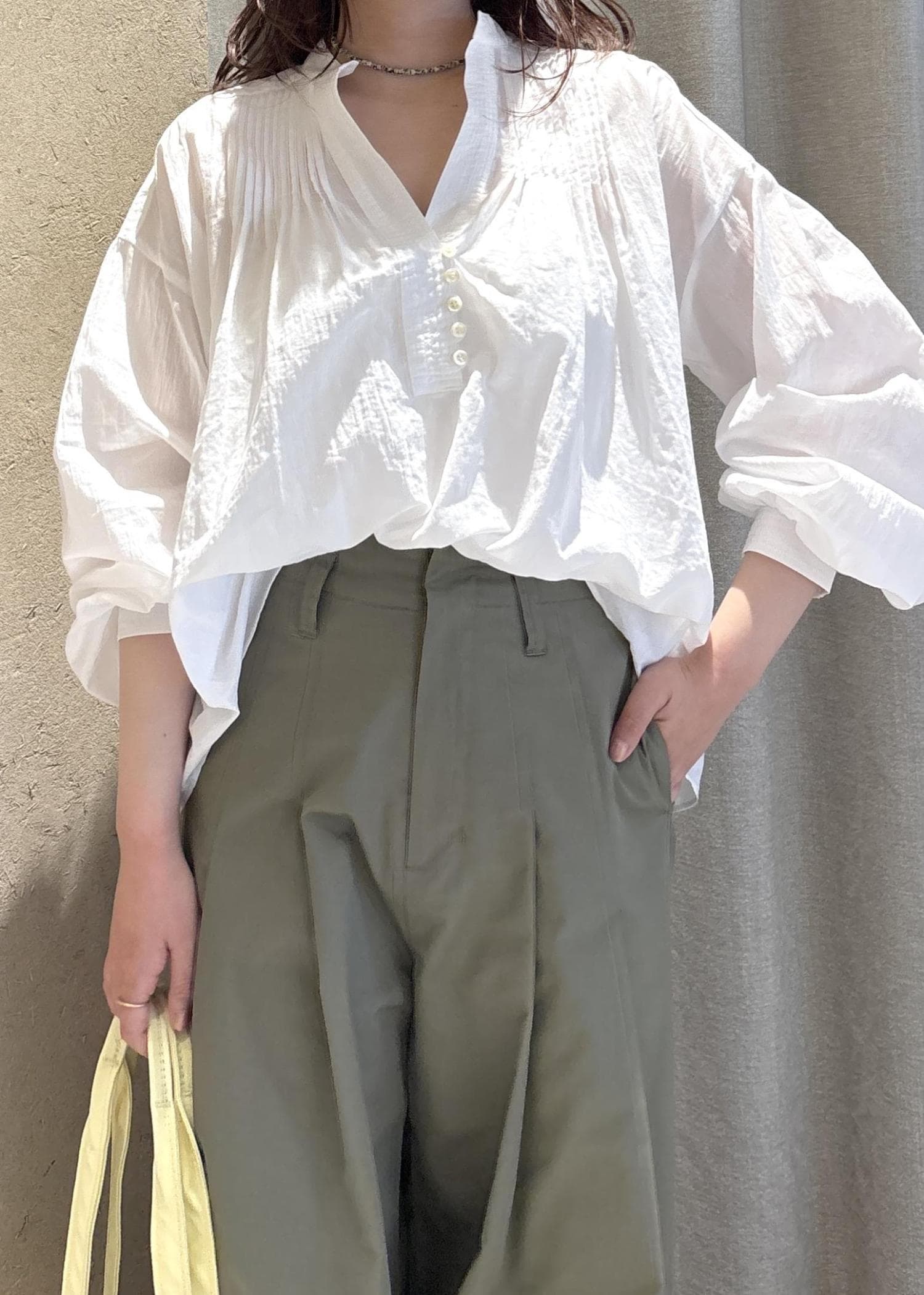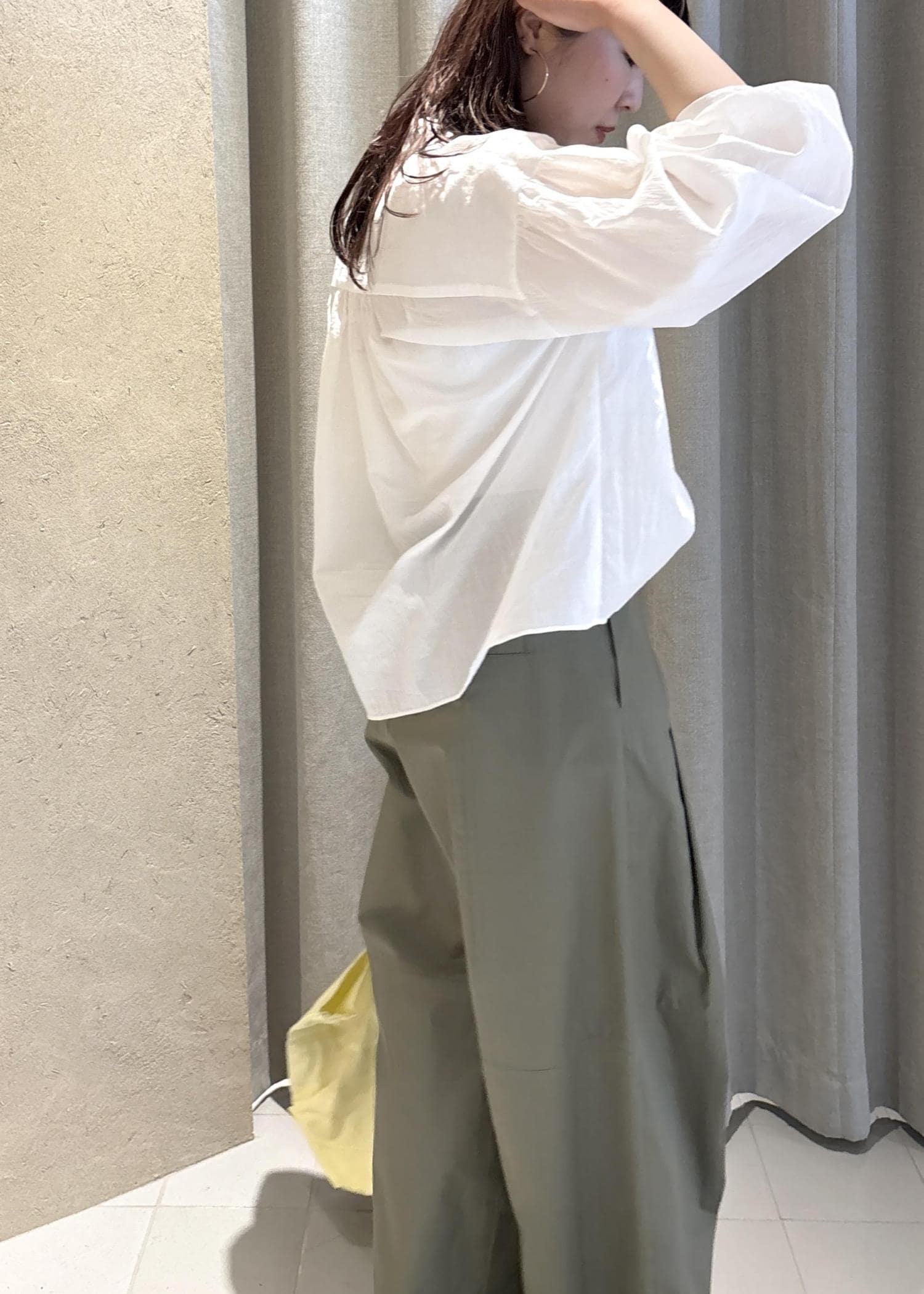 ふわっと広がるブラウス。手首がゴムになっているのが意外と嬉しいデザインです◎