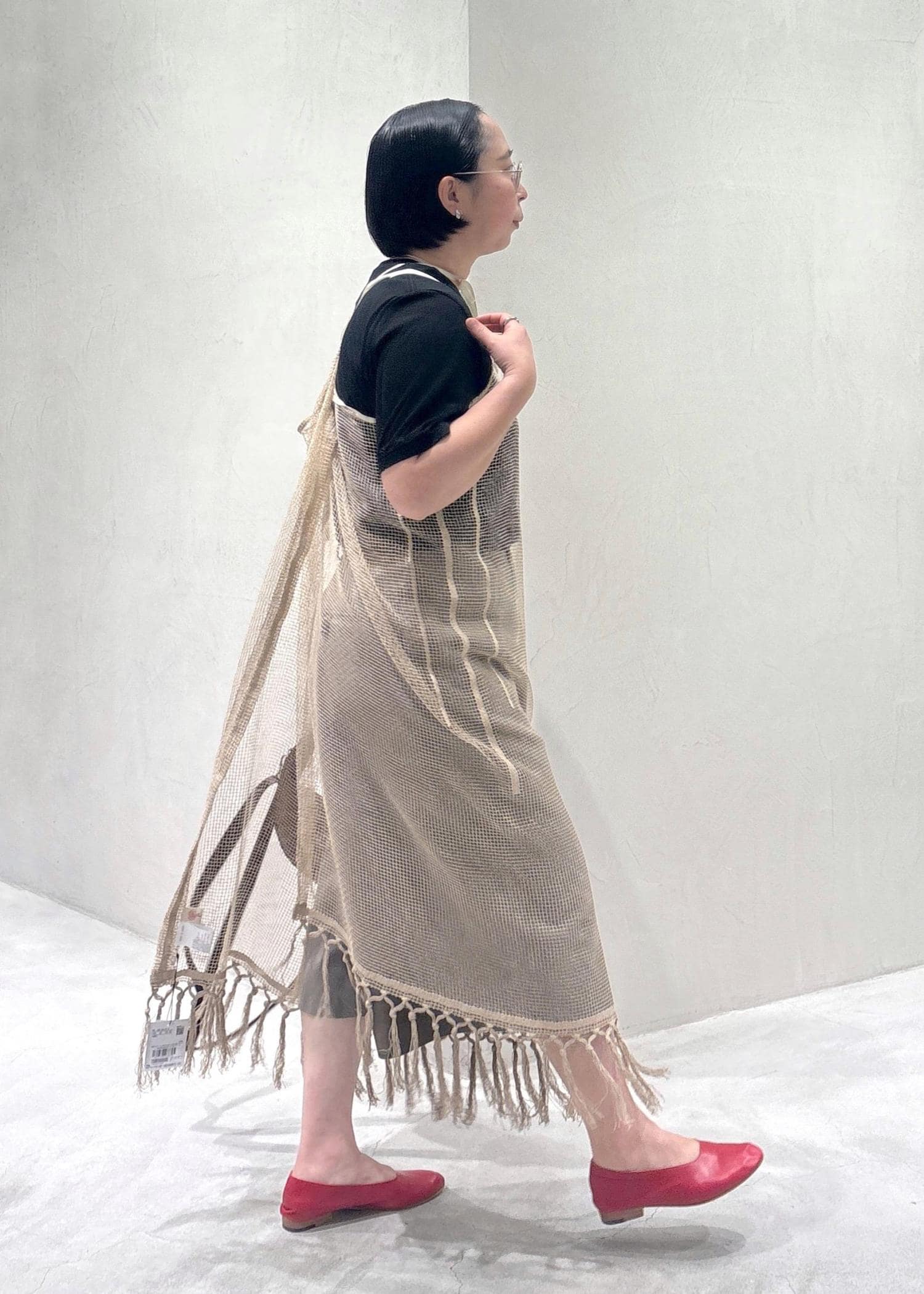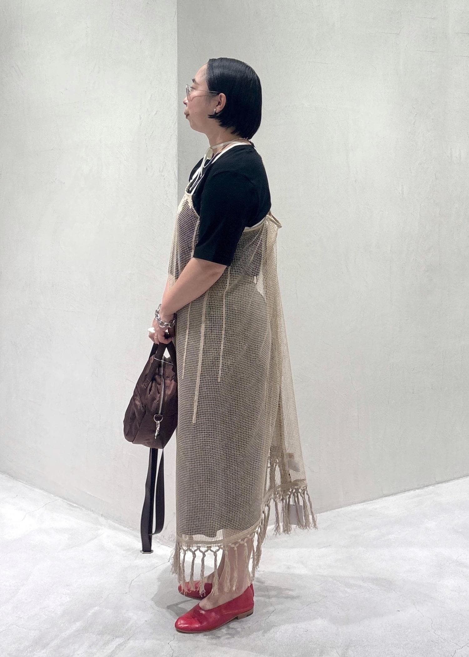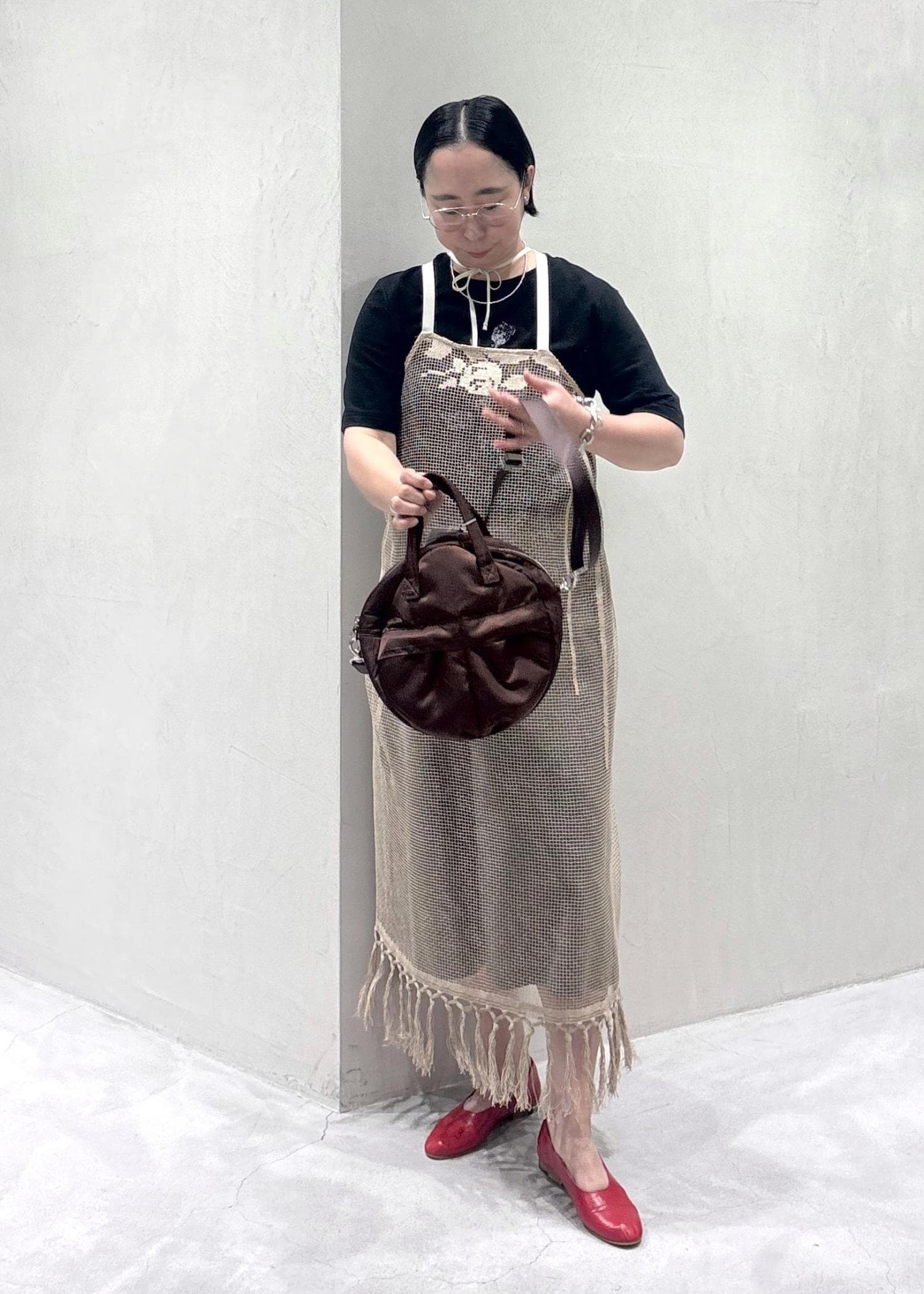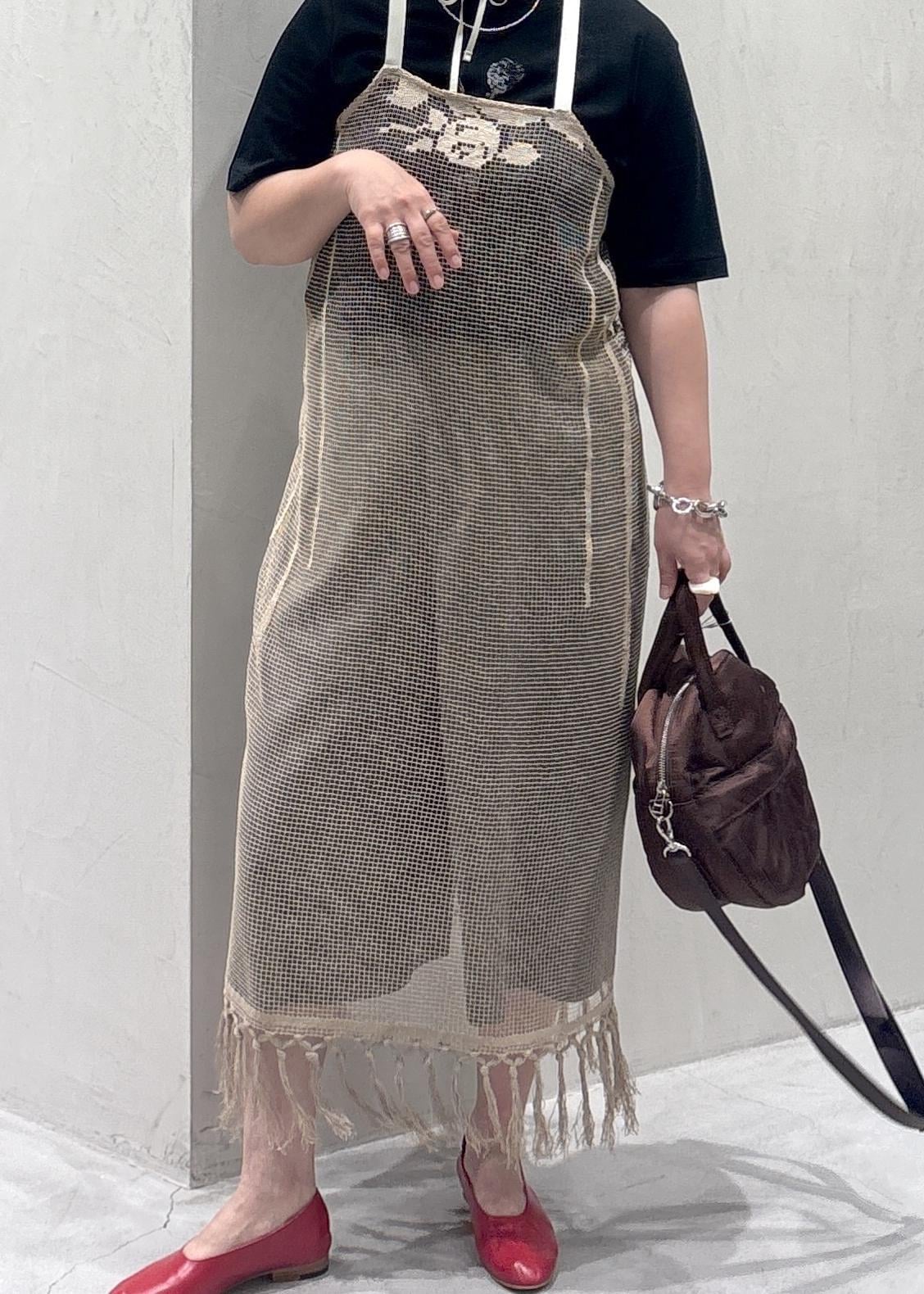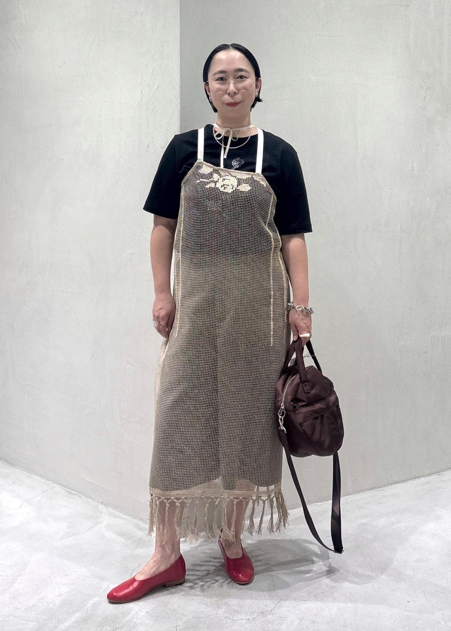 今回はその中から別注Tシャツとアンティークレースをリメイクしたワンピースを合わせてみました。