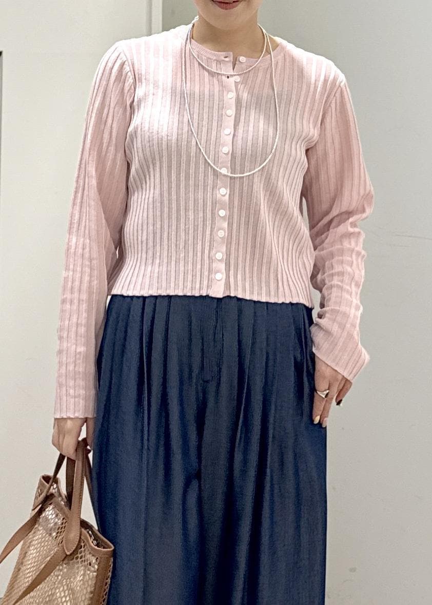 SALON adam et ropéワイドリブスキッパークルーネックカーディガンピンク / F¥20,900レビューリブ素材のコットンニット。