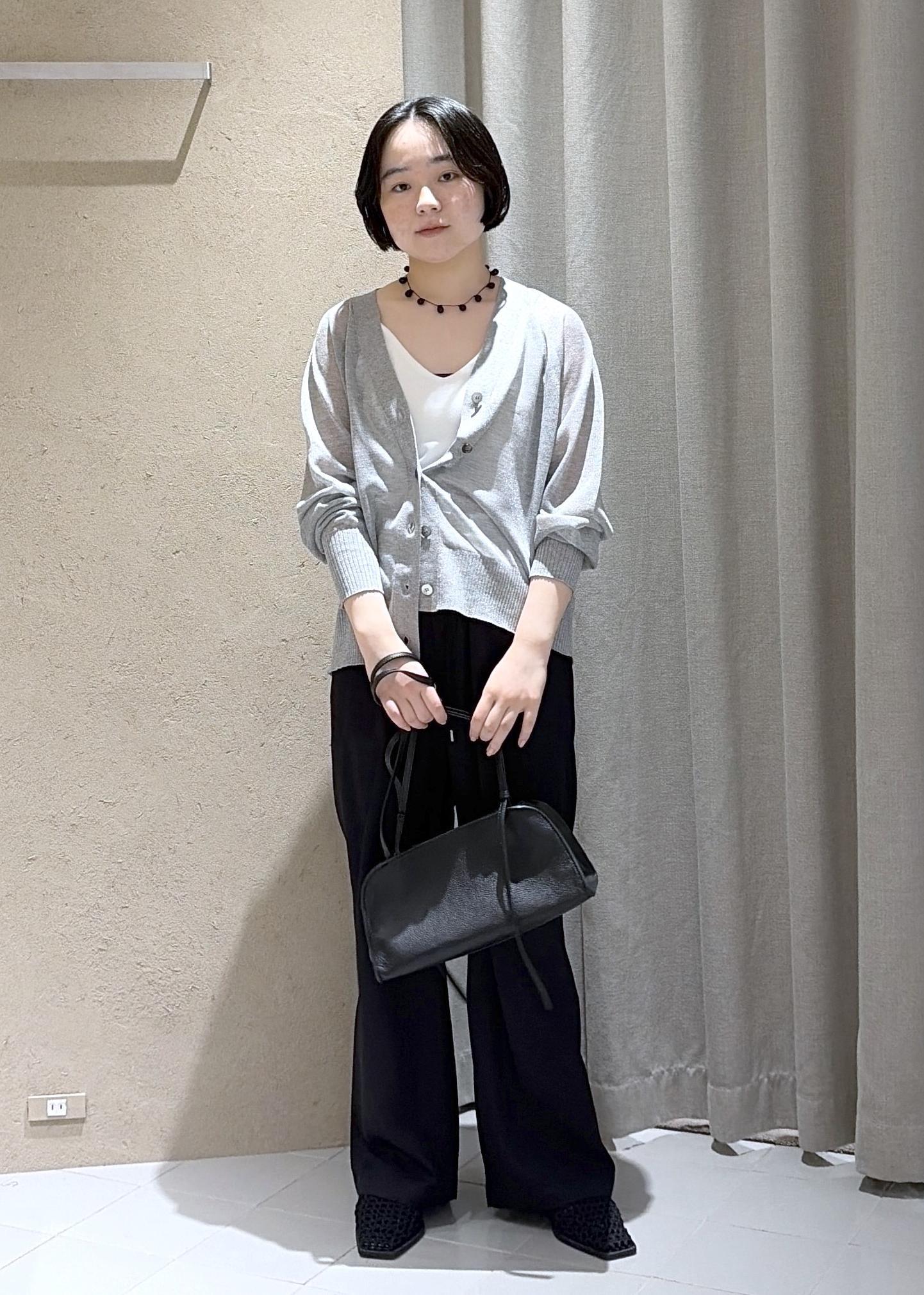 今回は春時期から暑い時期にも一年通しておすすめなブライトシアーカーディガンを使ったベーシックスタイルをご提案。