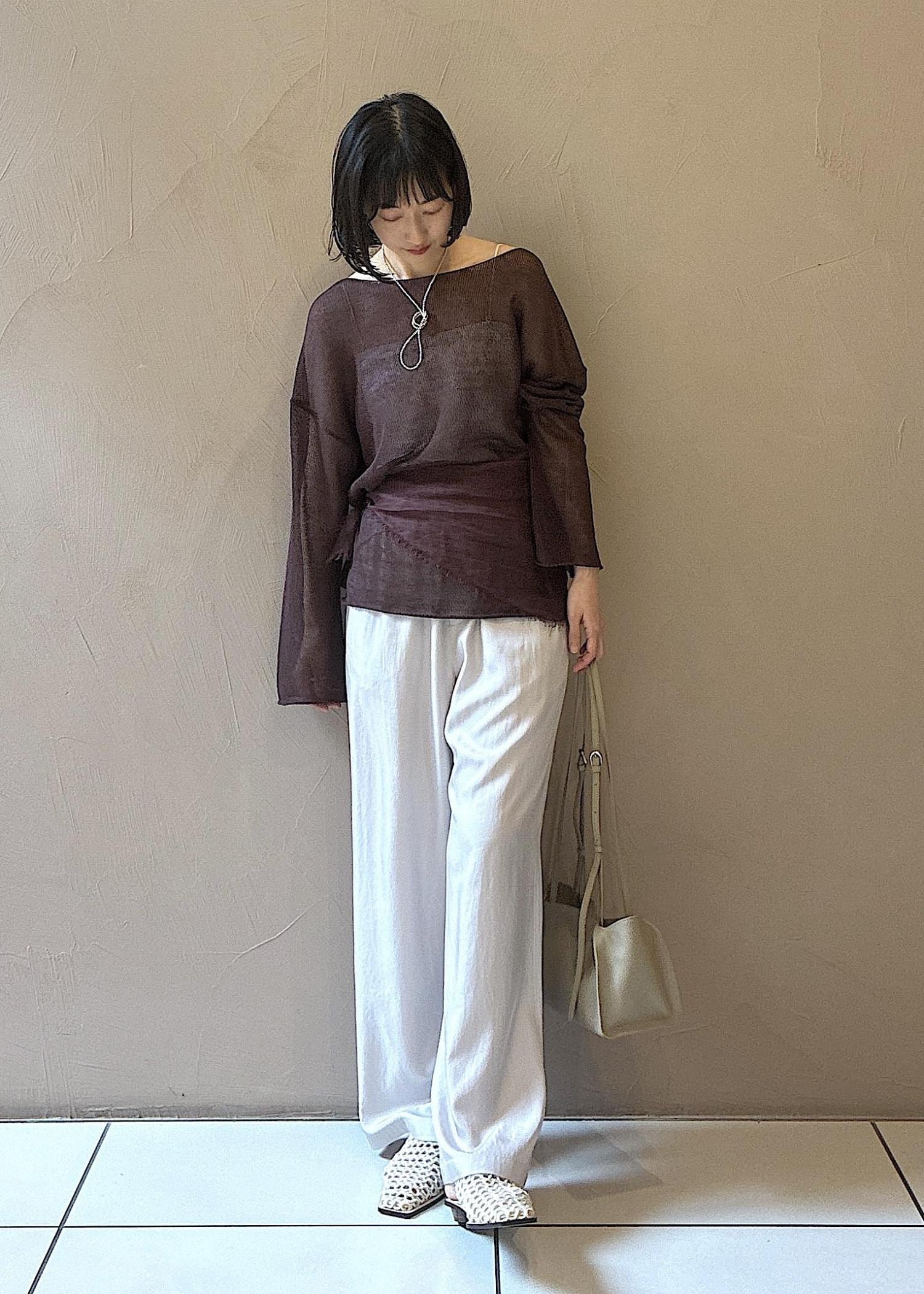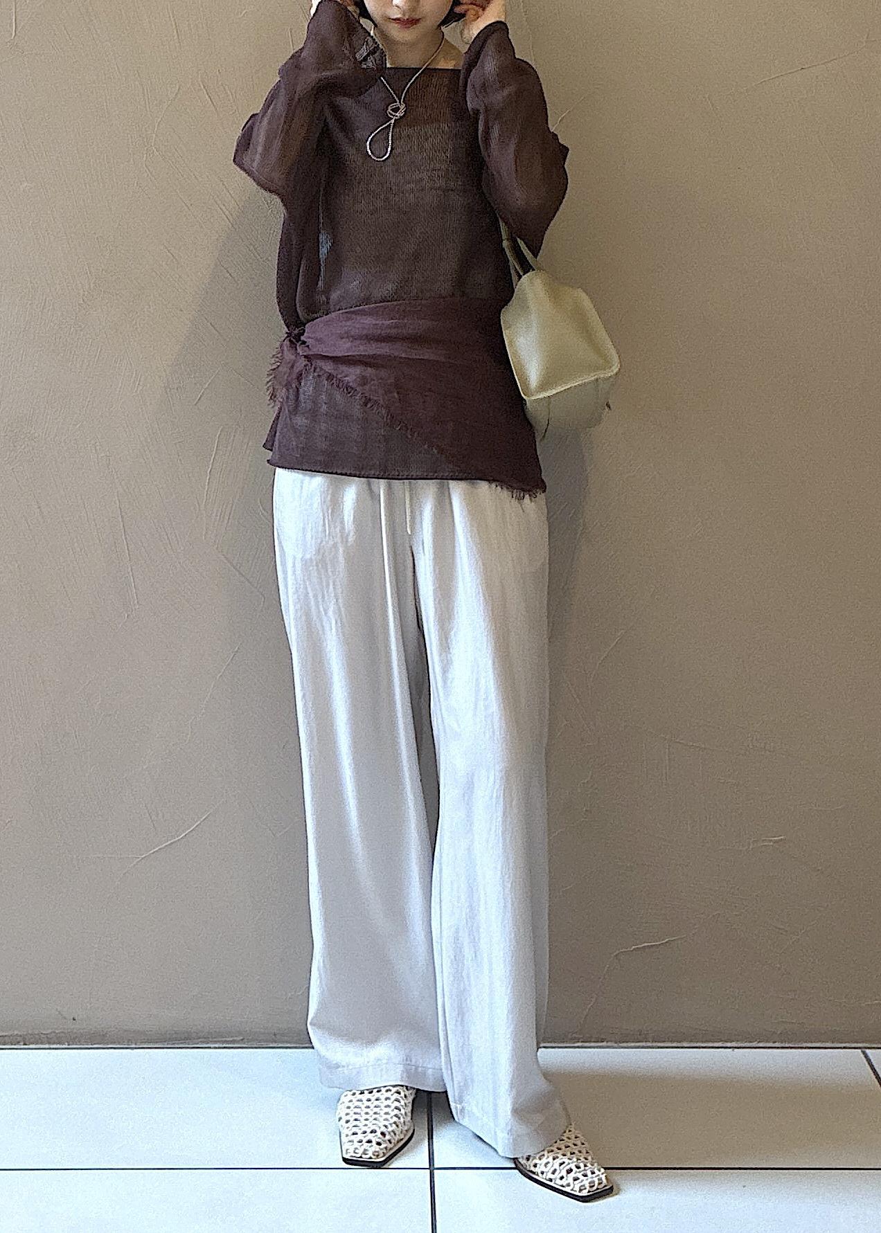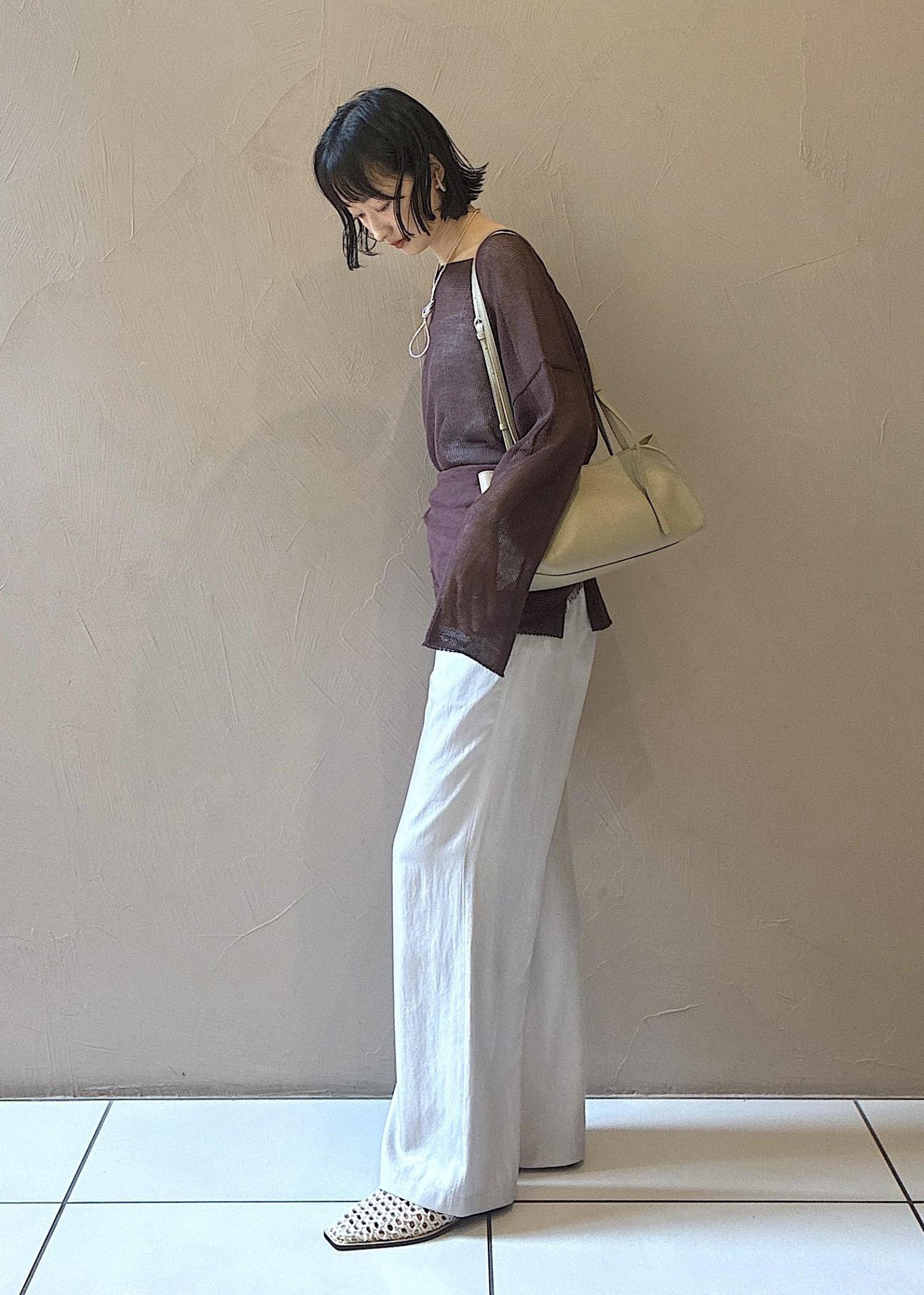 今の時期から夏に向けておすすめの涼しい素材のアイテムでスタイリングしました。