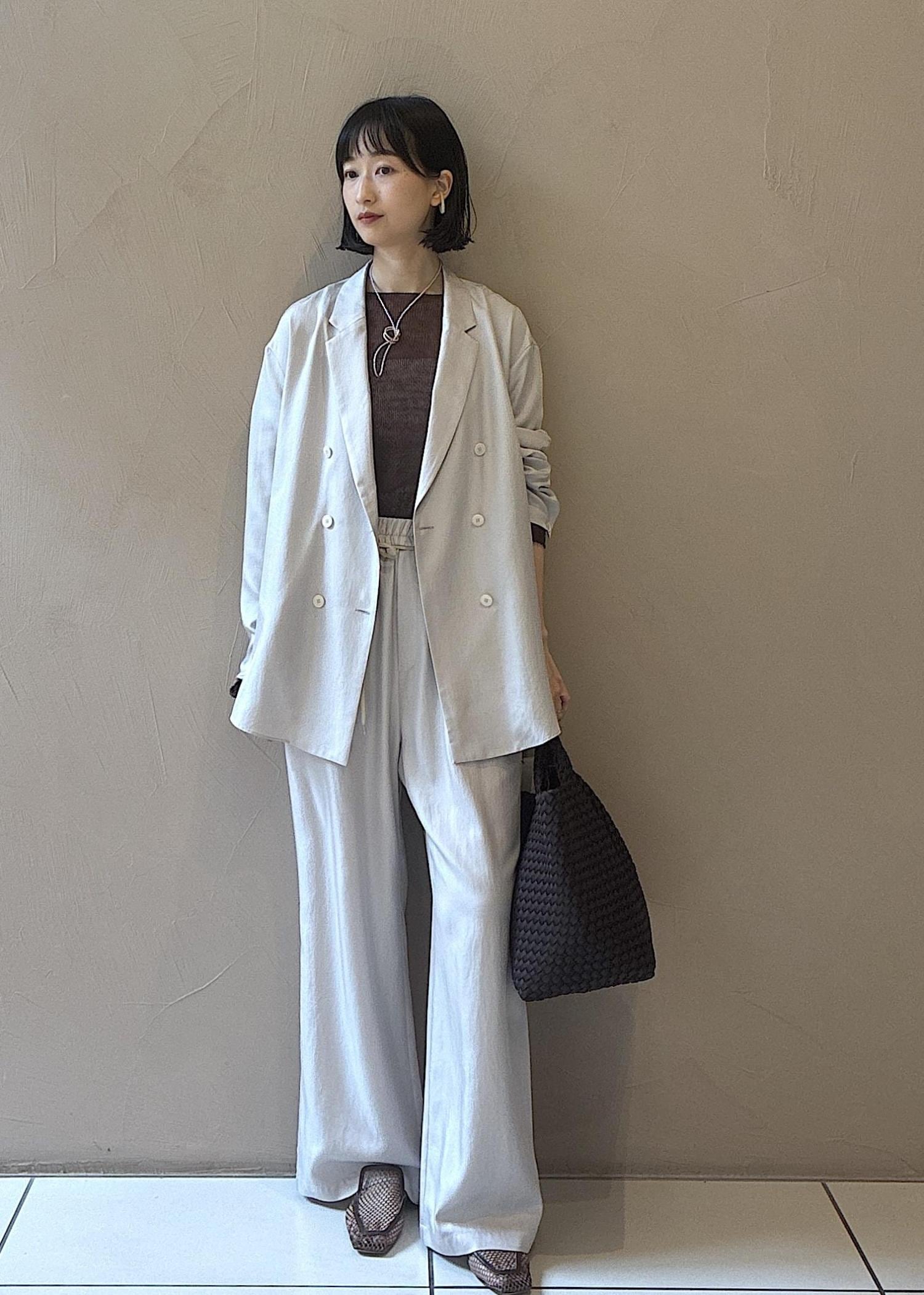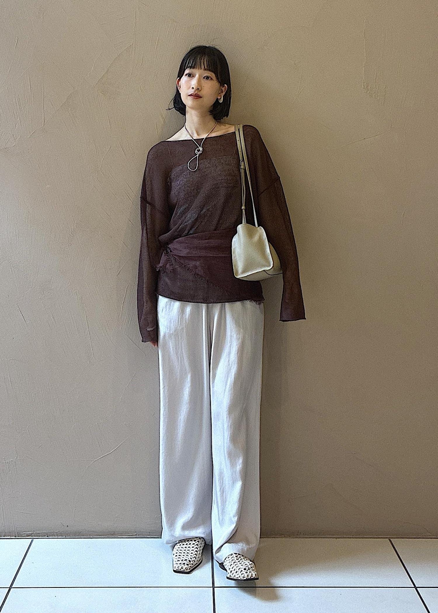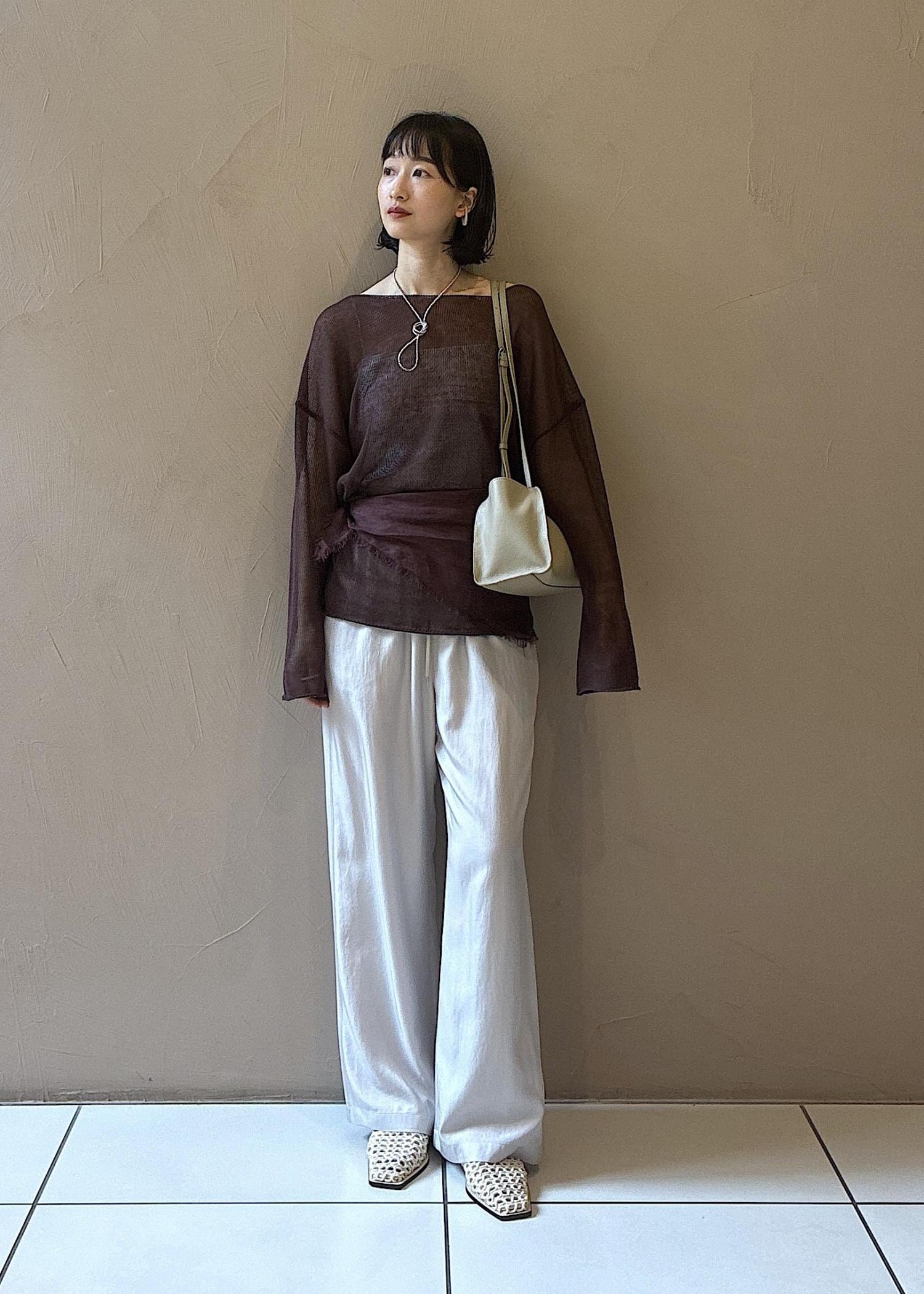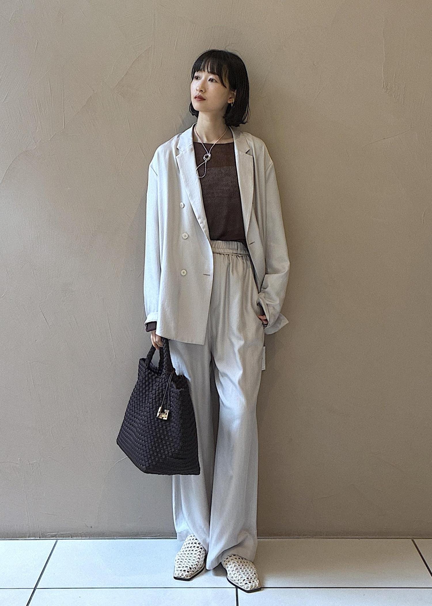 今の時期から夏に向けておすすめの涼しい素材のアイテムでスタイリングしました。