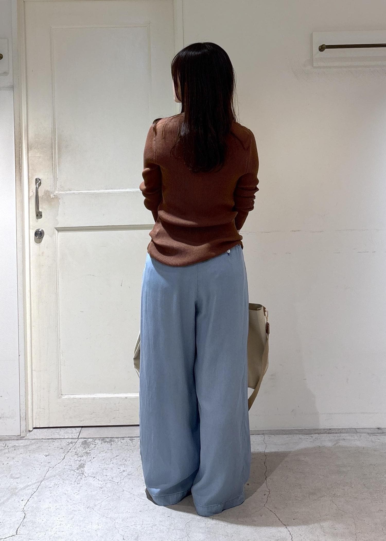 SALON adam et ropéデニムライクタックフォルムワイドパンツ / セットアップ対応サックス / M¥23,100レビュー丈は踵が隠れる程です。