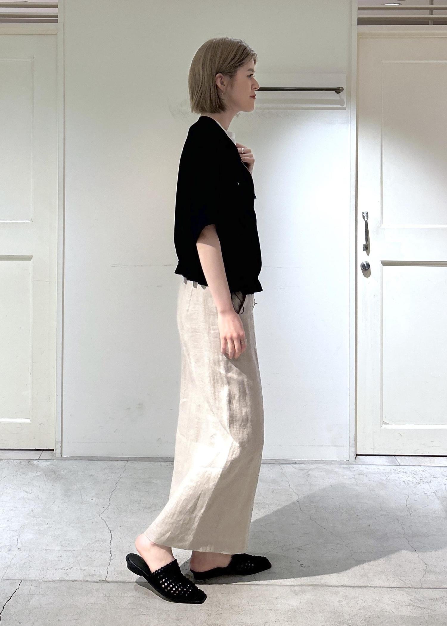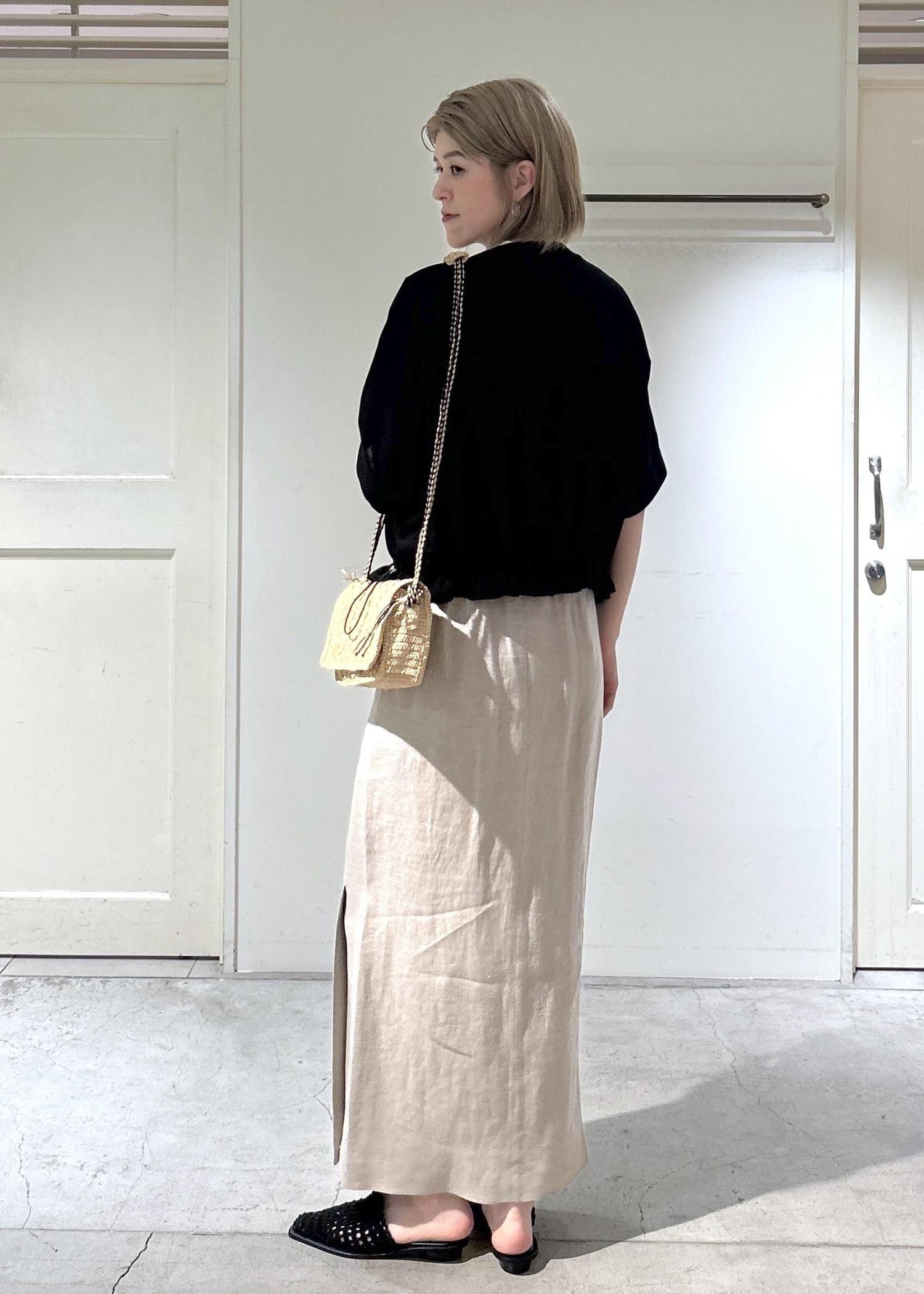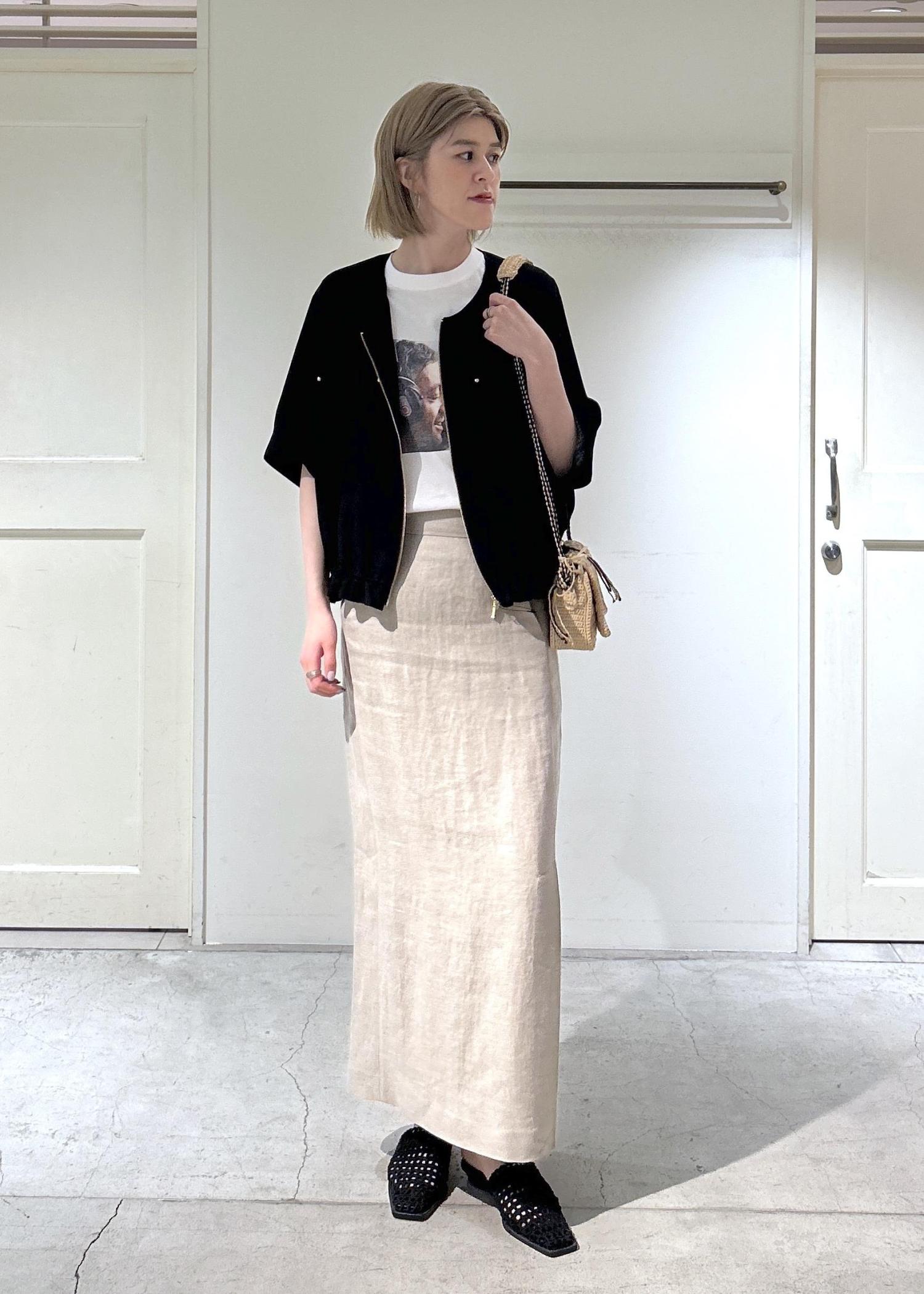今回は、プリントTシャツとリネンのスカートと合わせて、デイリースタイルにしてみました。
