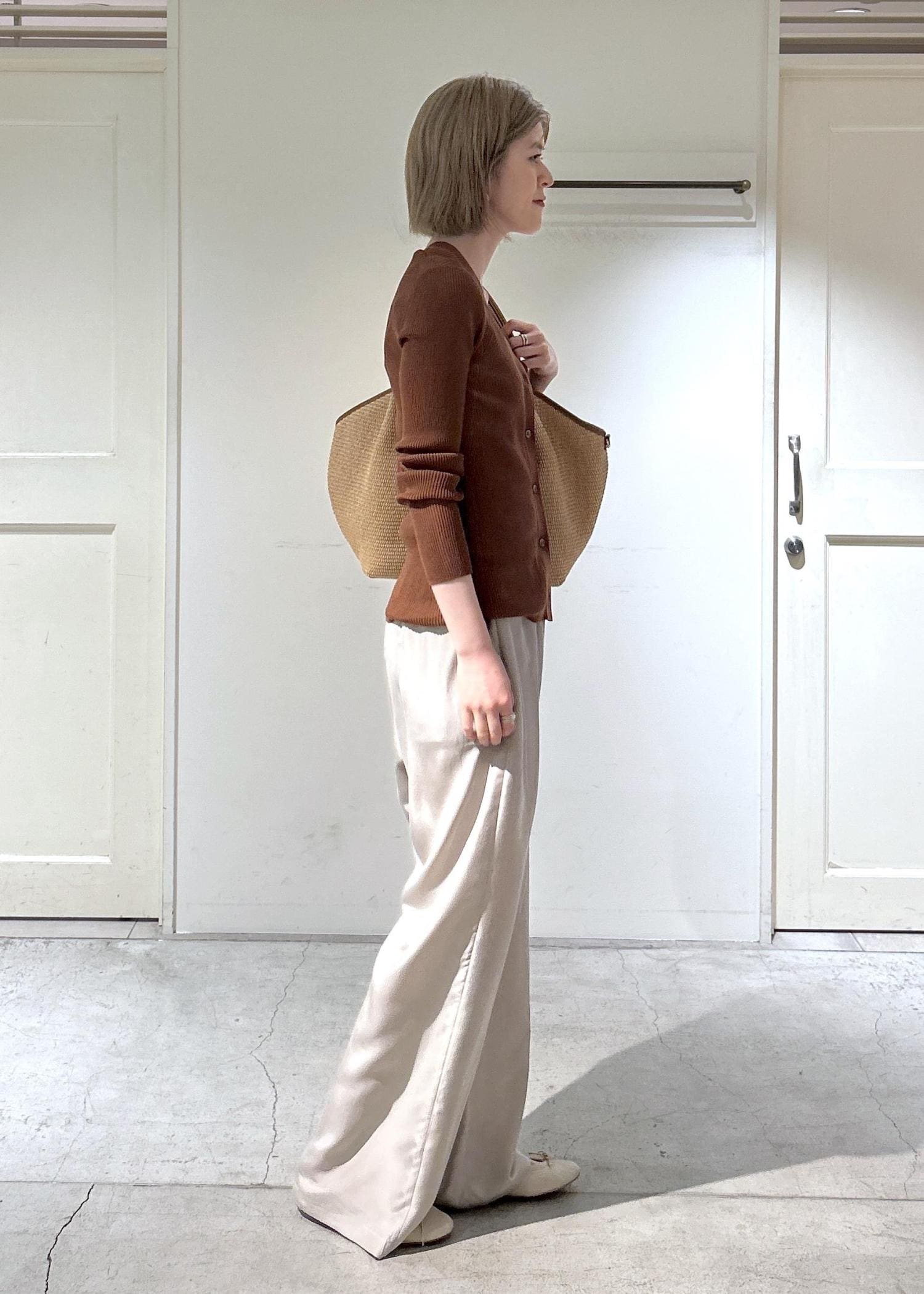 今回は、カーディガンを主役にベージュやブラウンでカラーをまとめてみました。