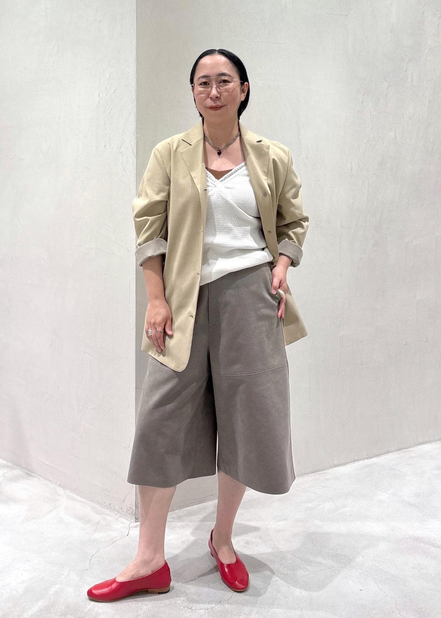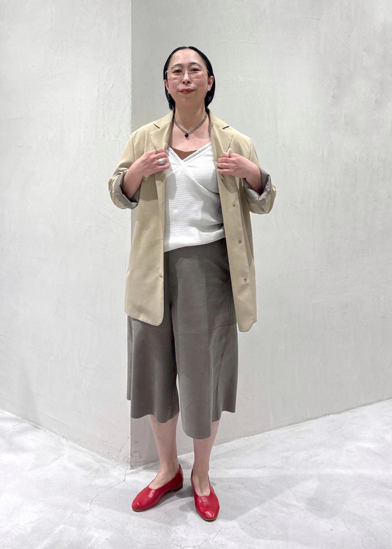 Angie LaLa別注のレースをアクセントにベージュでセットアップ風に合わせてみました。