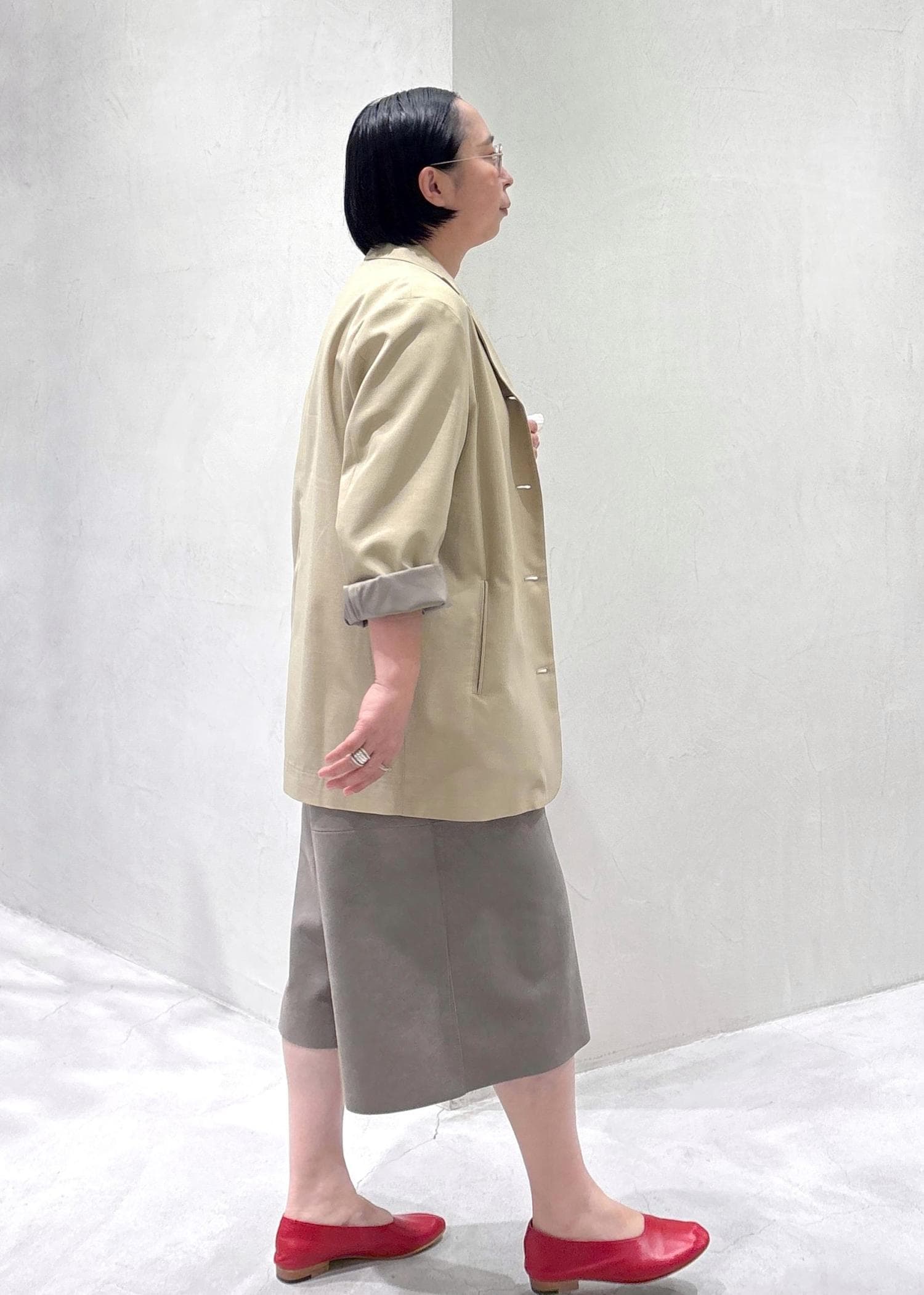 程よく厚みのある生地が肉感も拾いにくく、上半身に厚みのある体型なのでとても助かる1枚です