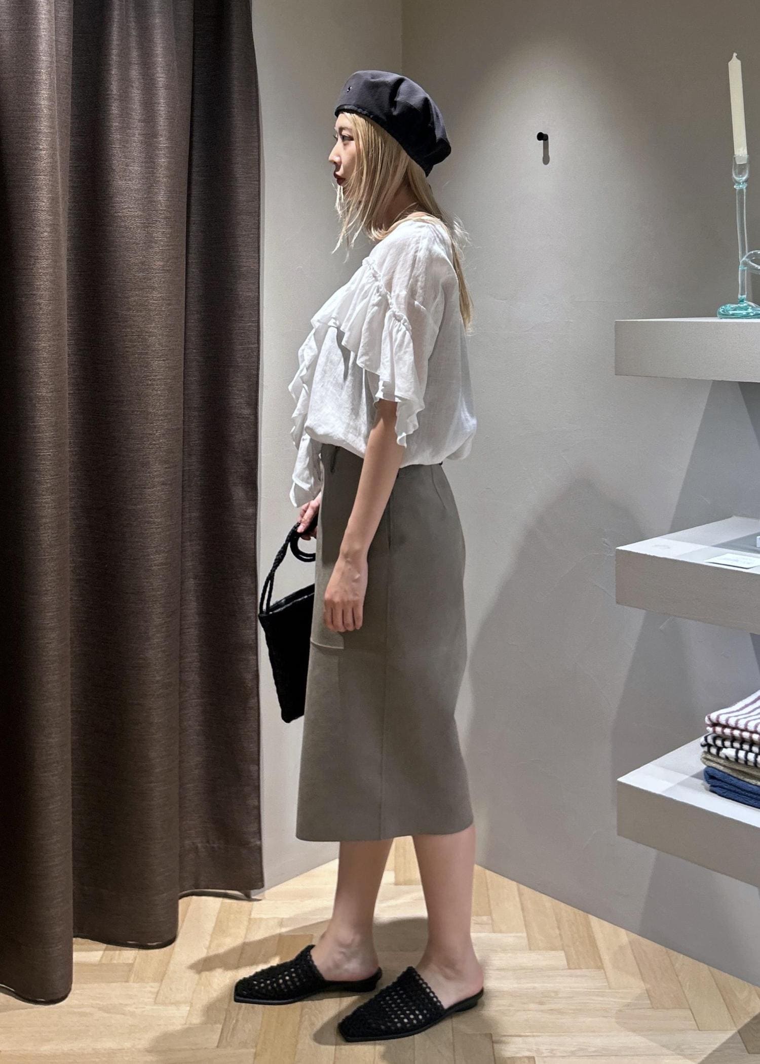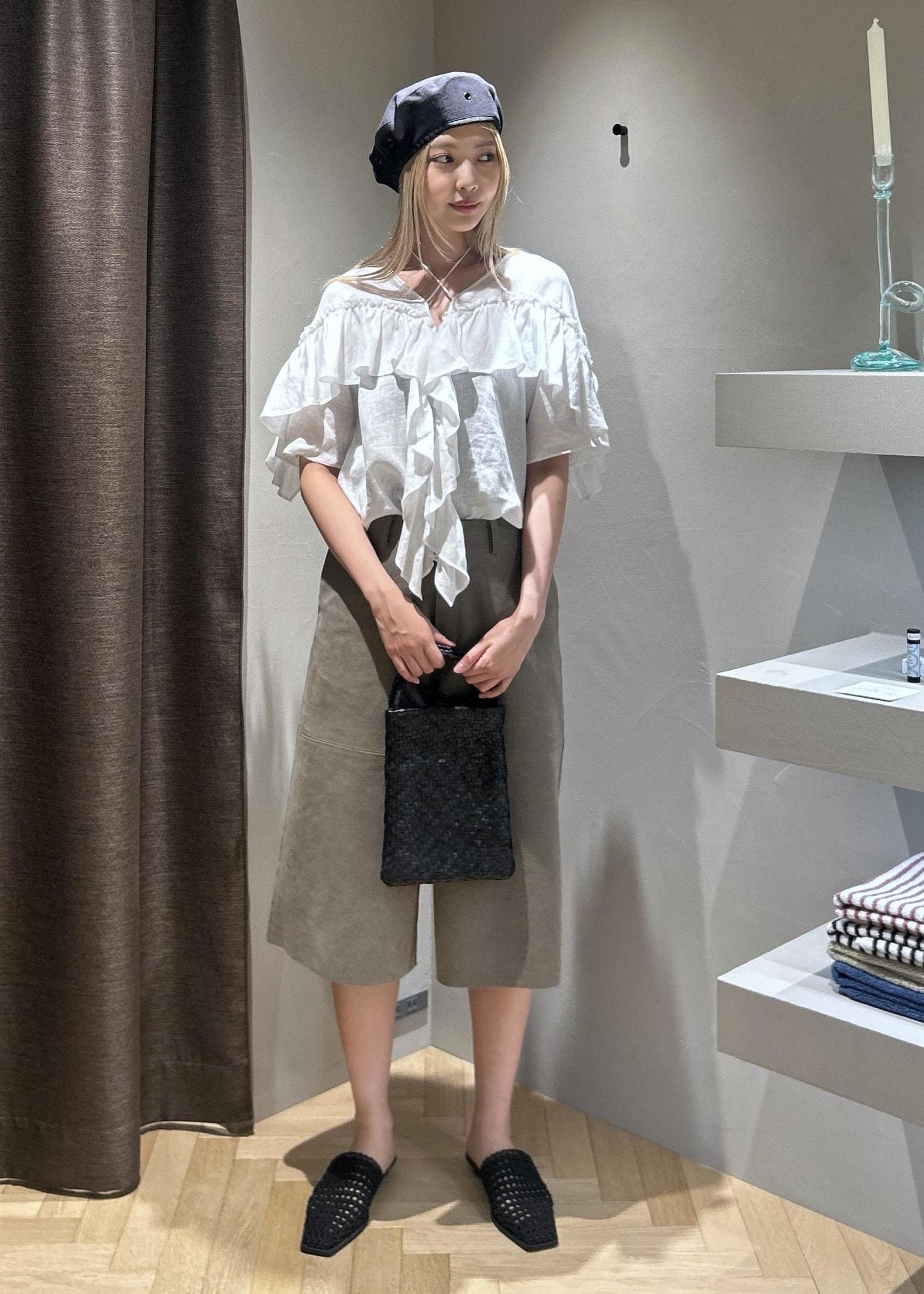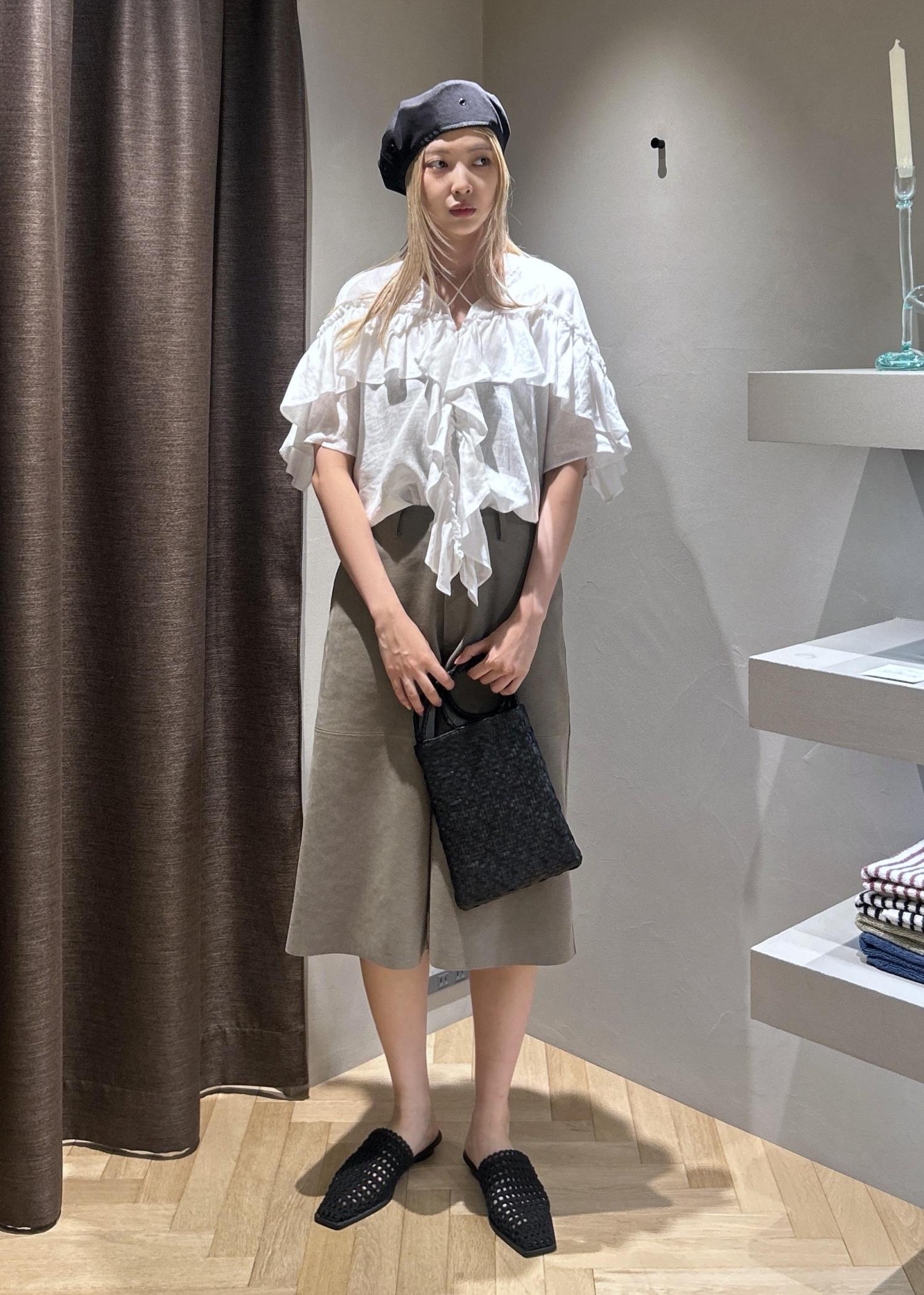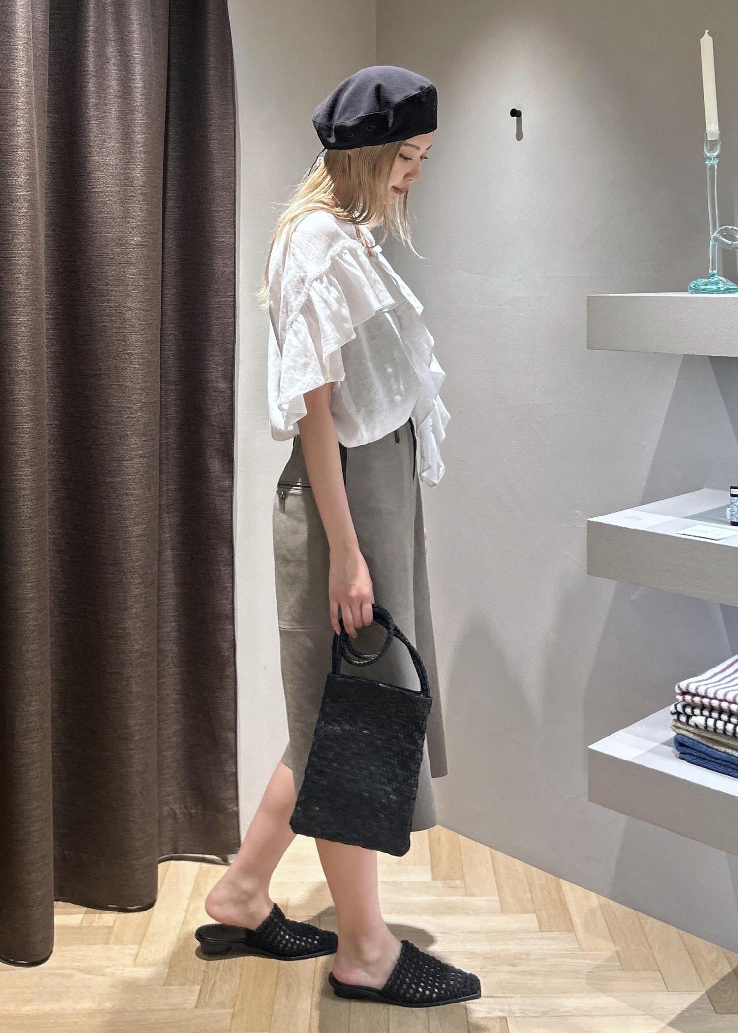 今回はWEB限定のヨーロピアンリネンルジェフリルブラウスを使ってコーディネートを組んでみました。