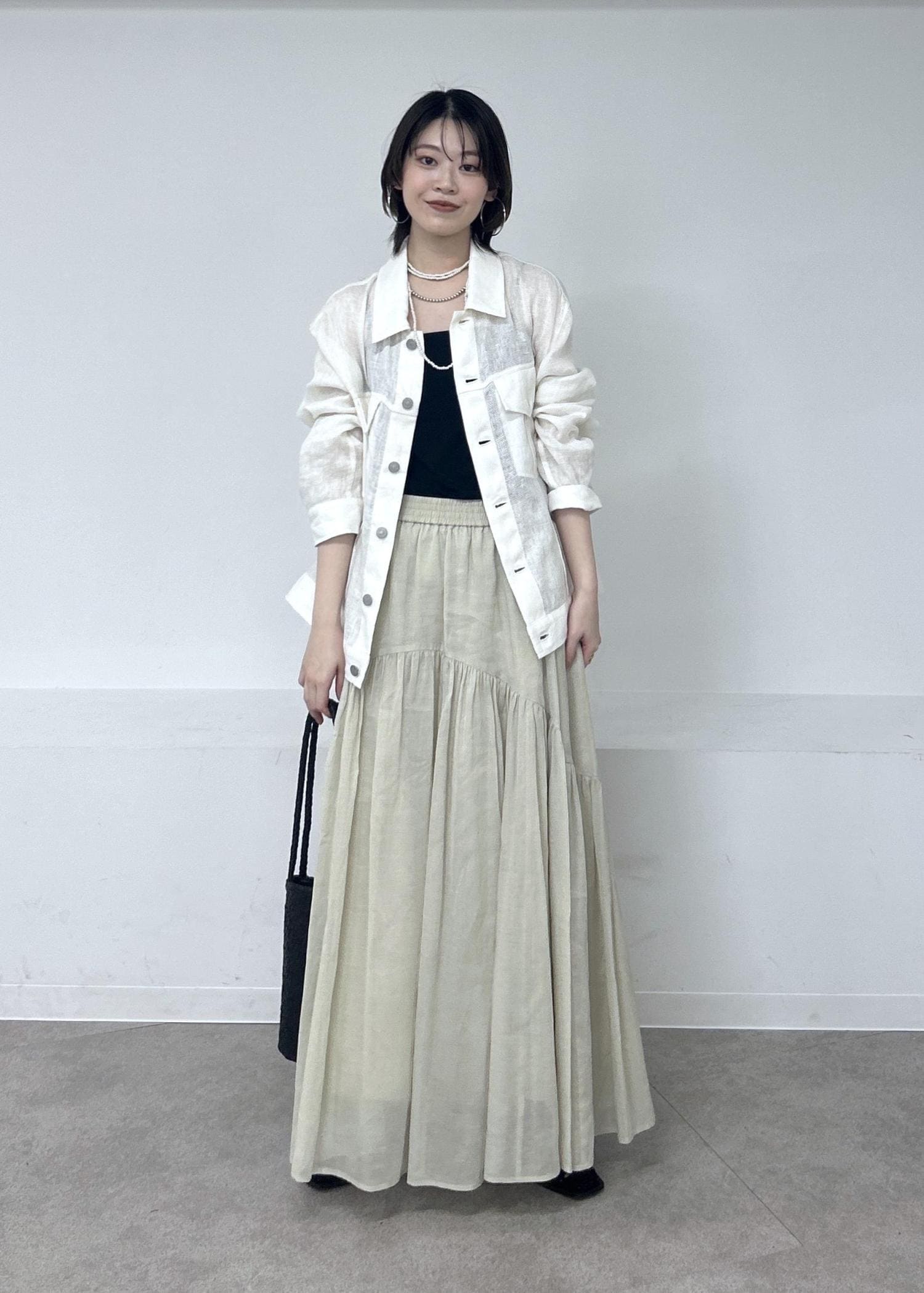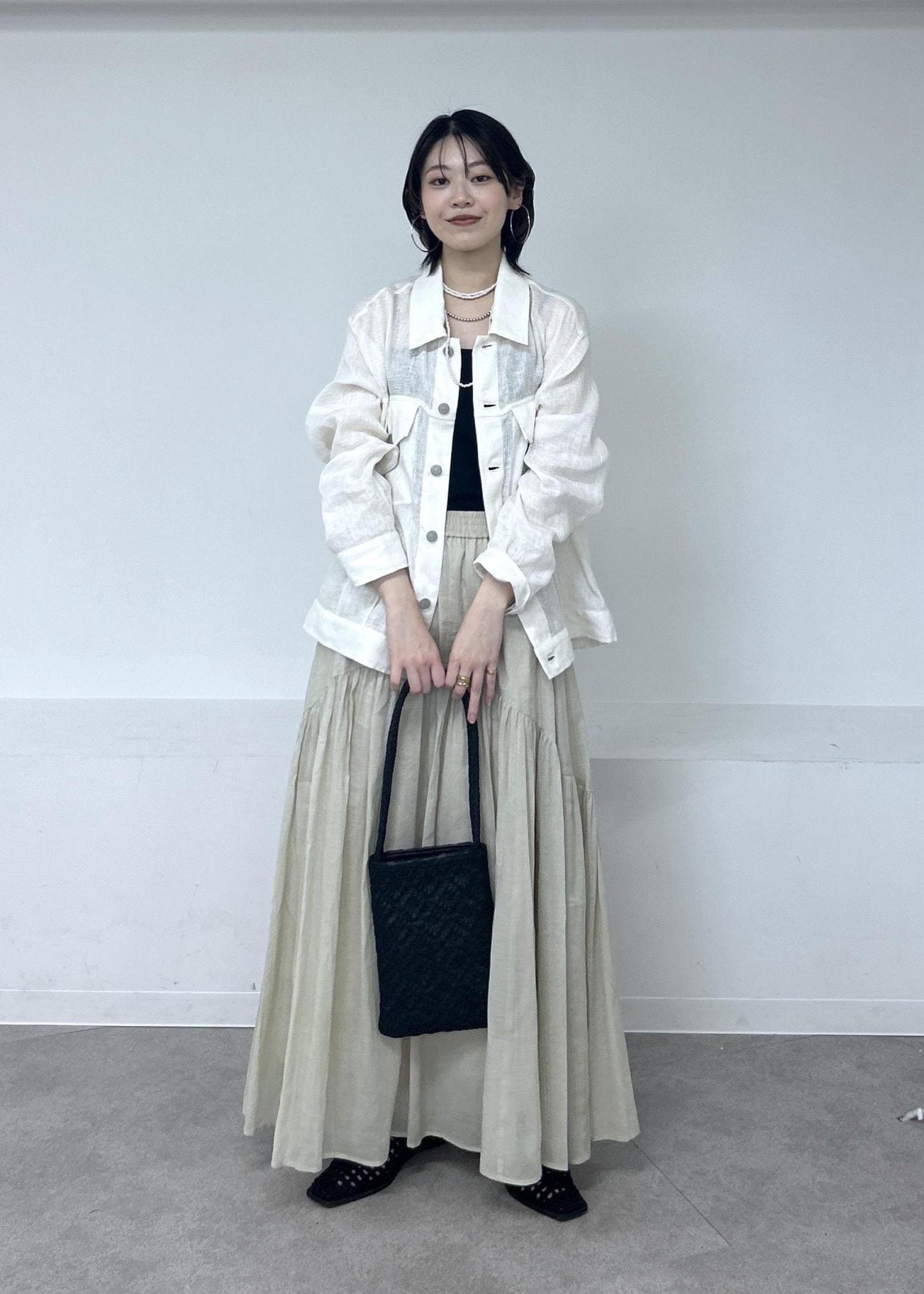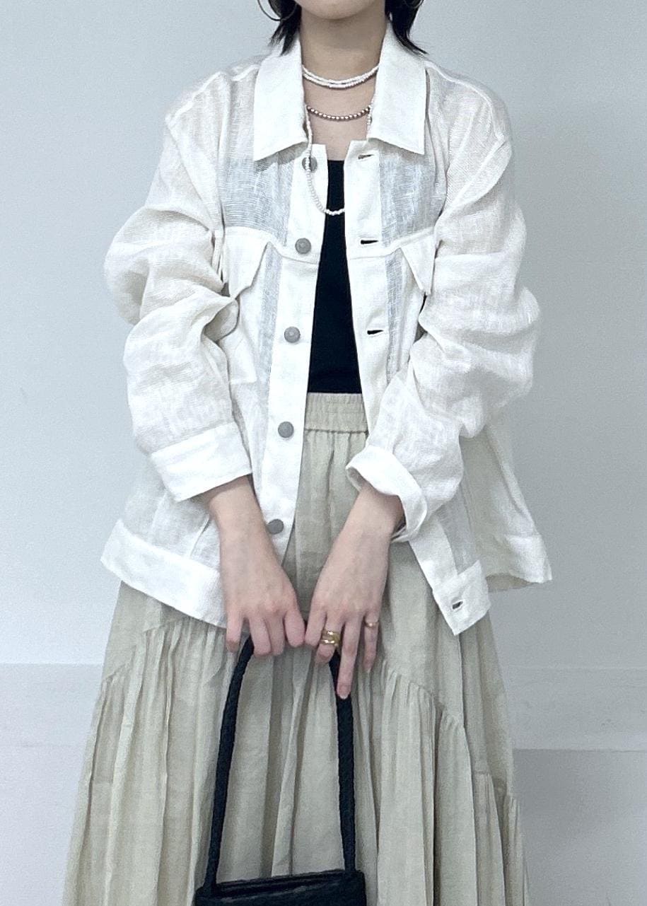 メンズライクなGジャンのデザインを、透け感のある柔らかなリネン素材で仕上げることで女性らしい落ち感が出るジャケット。