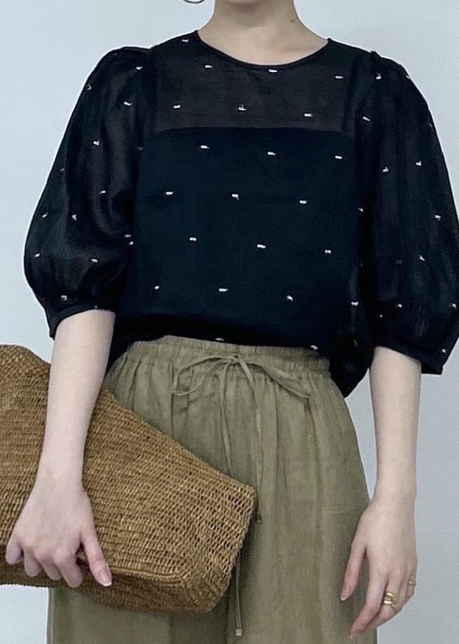 ラメドット刺繍ボリュームスリーブブラウス
