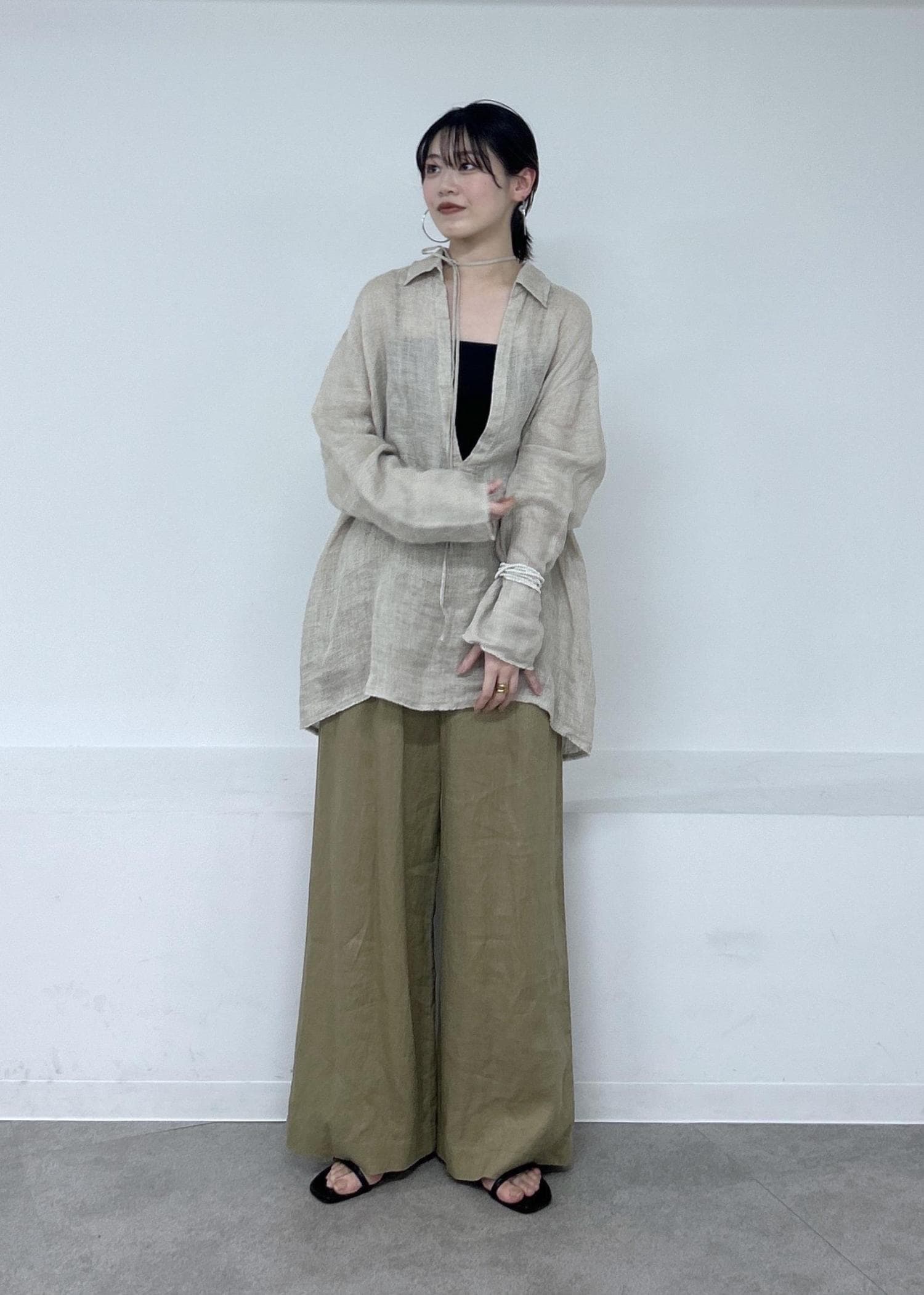 リネンパンツと合わせて初夏を意識したリラックススタイルでコーディネートを組んでみました。