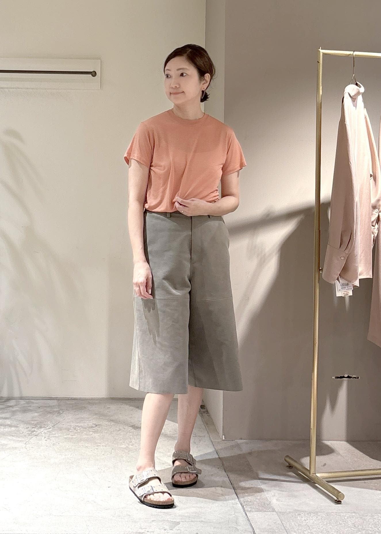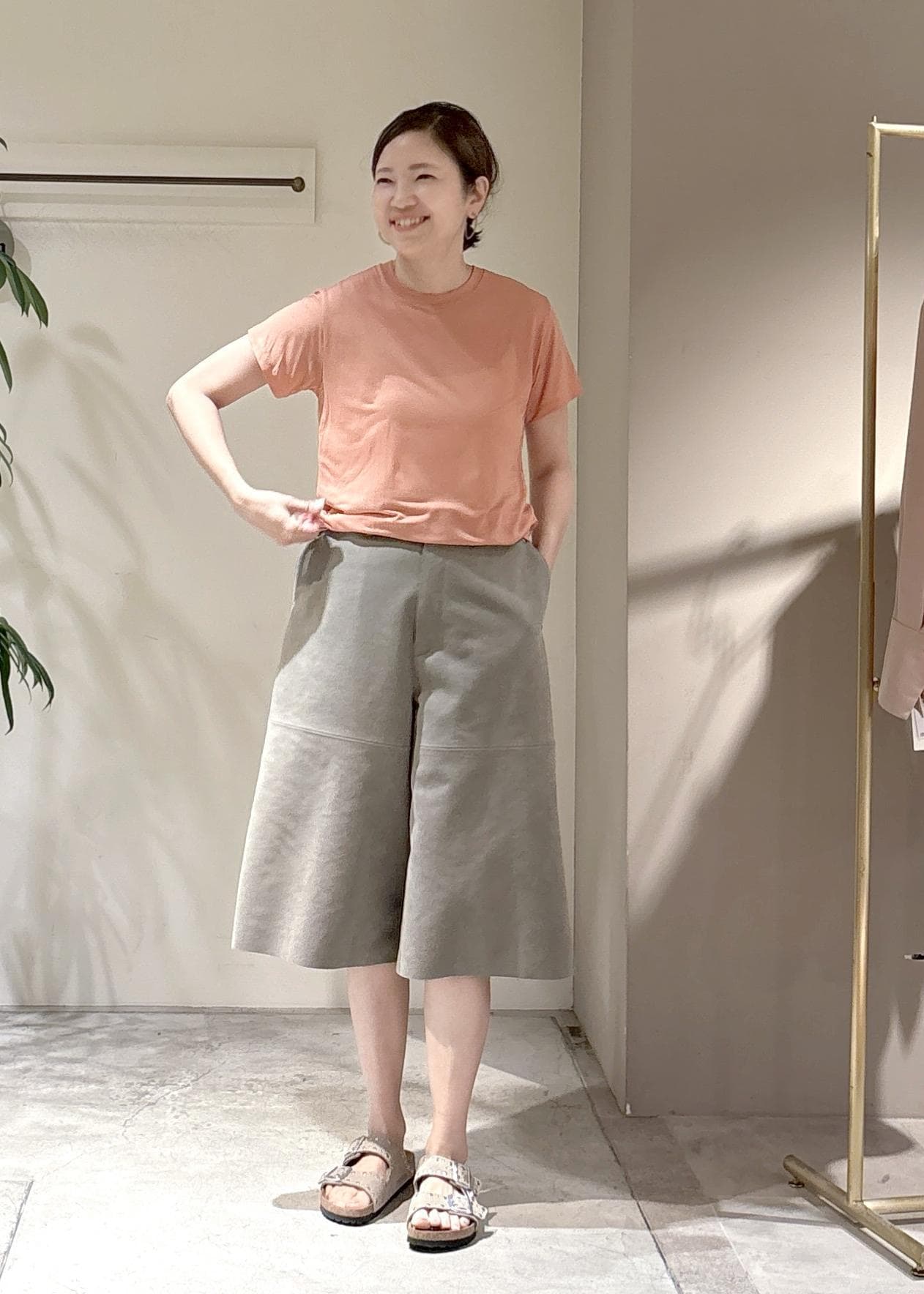163cmで膝下丈。太ももがしっかり隠れるワイド幅なので、膝下がキレイに見えます。軽くて洗濯も可能なウルトラスエード素材。とても扱いやすいです。