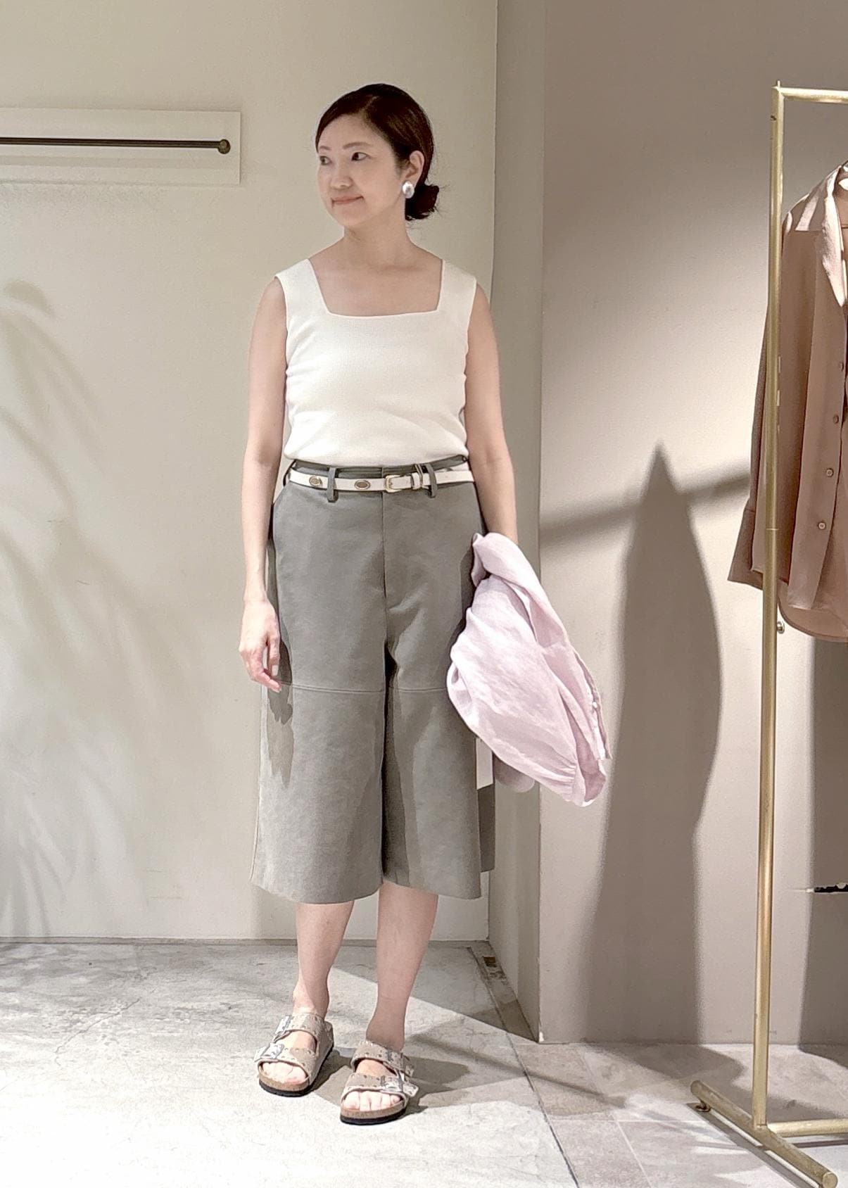 SALON adam et ropéウルトラスエードハーフパンツ / Ultrasuede(R)ベージュ系 / S¥29,700レビュー163cmで膝下丈。太ももがしっかり隠れるワイド幅なので、膝下がキレイに見えます。軽くて洗濯も可能なウルトラスエード素材。とても扱いやすいです。