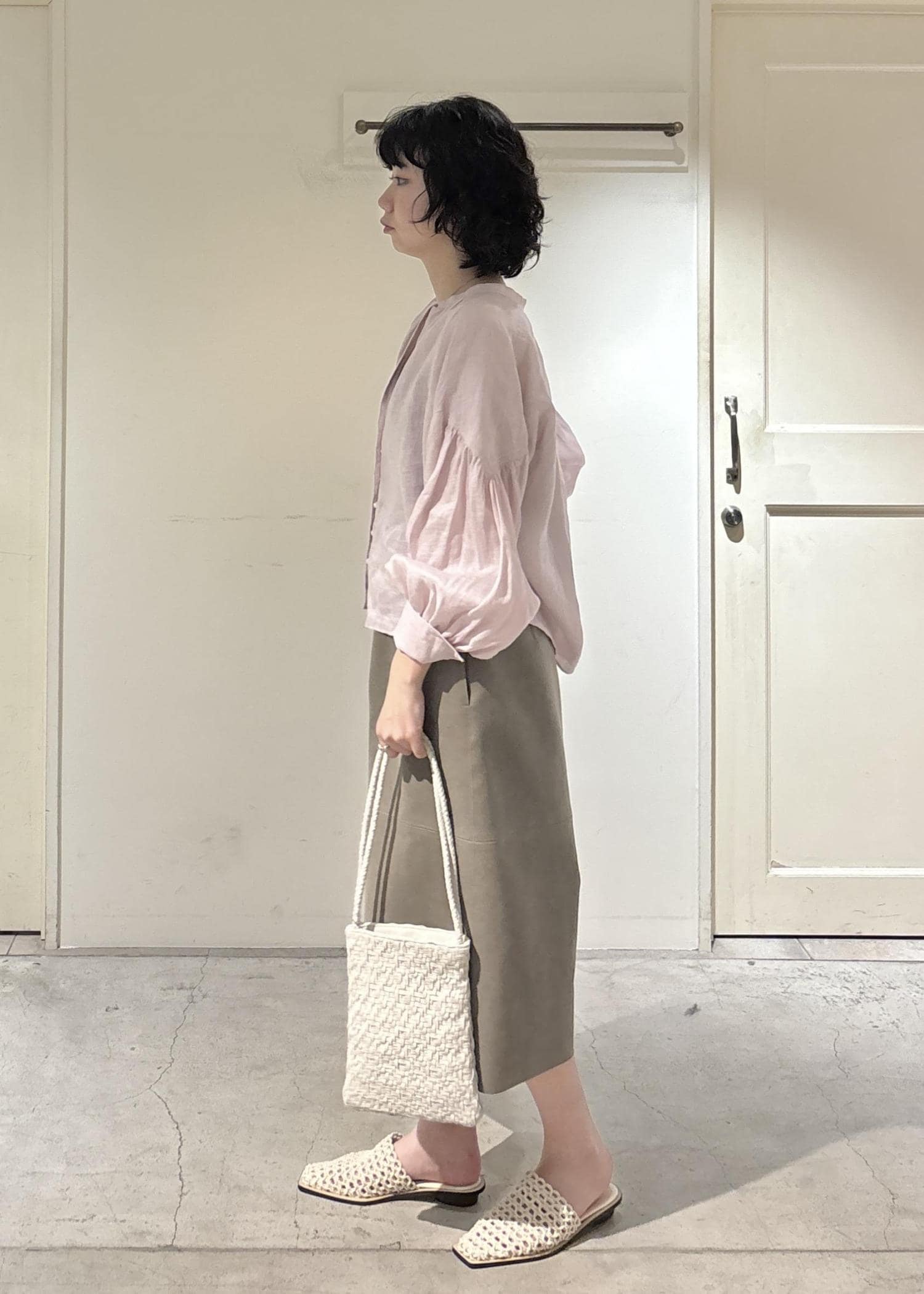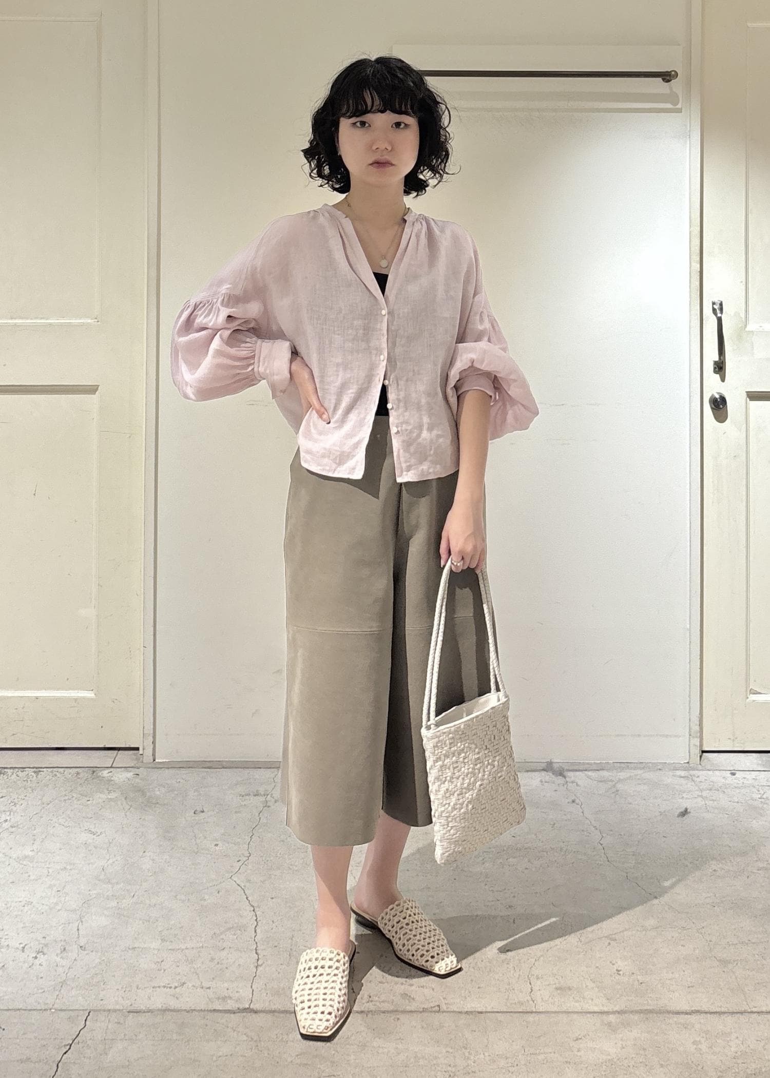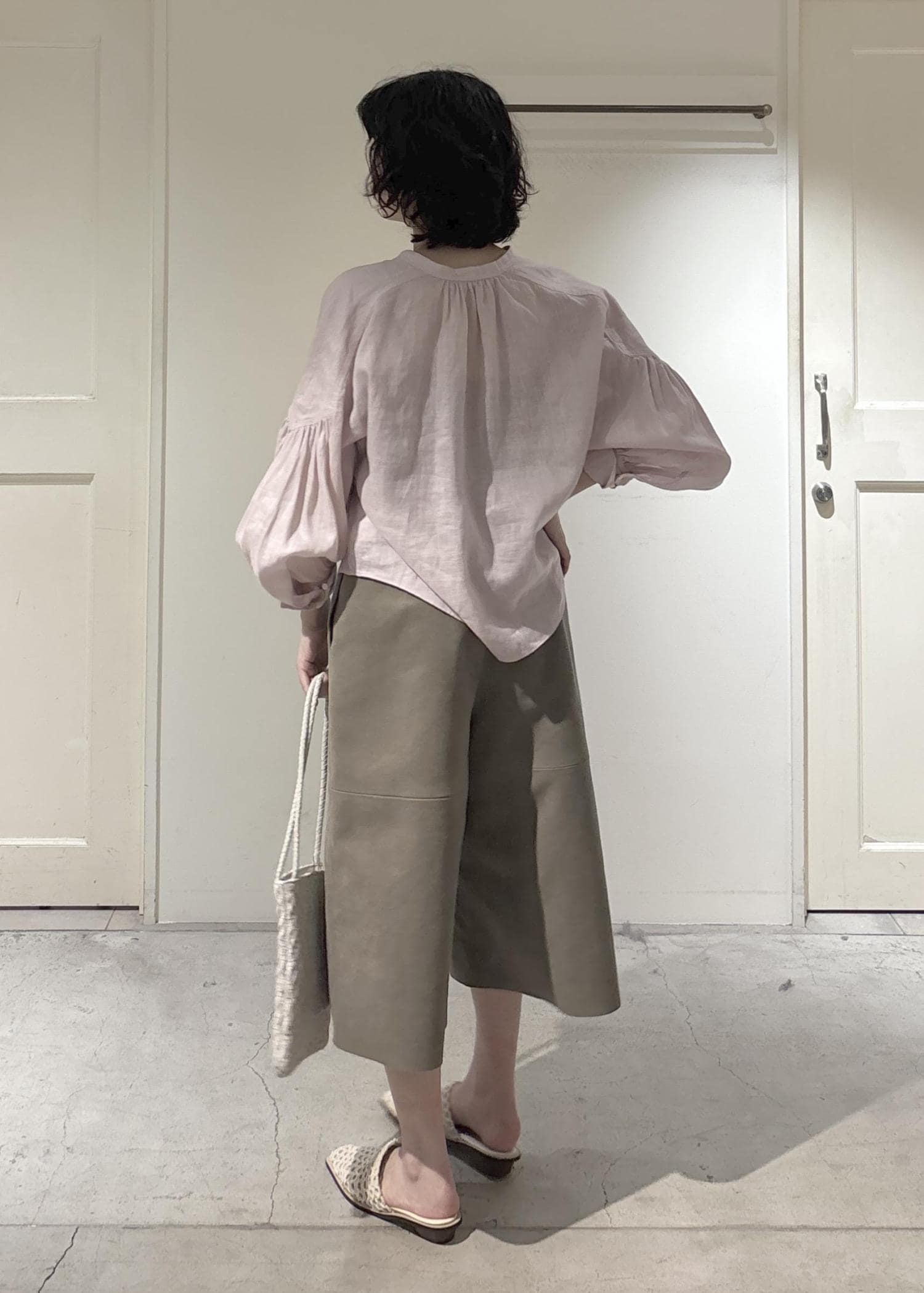 袖の下部にかけてボリュームがあり、フェミニン感がプラスされますが、甘すぎないので合わせやすいです。