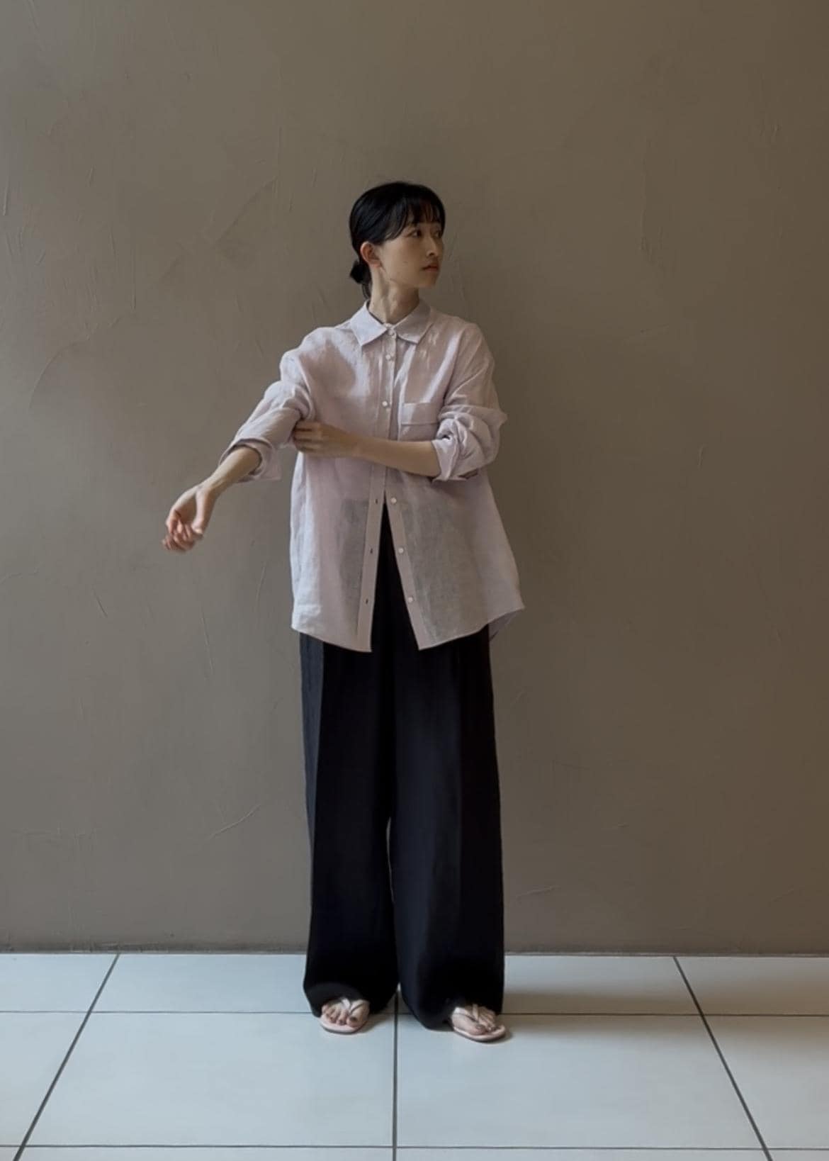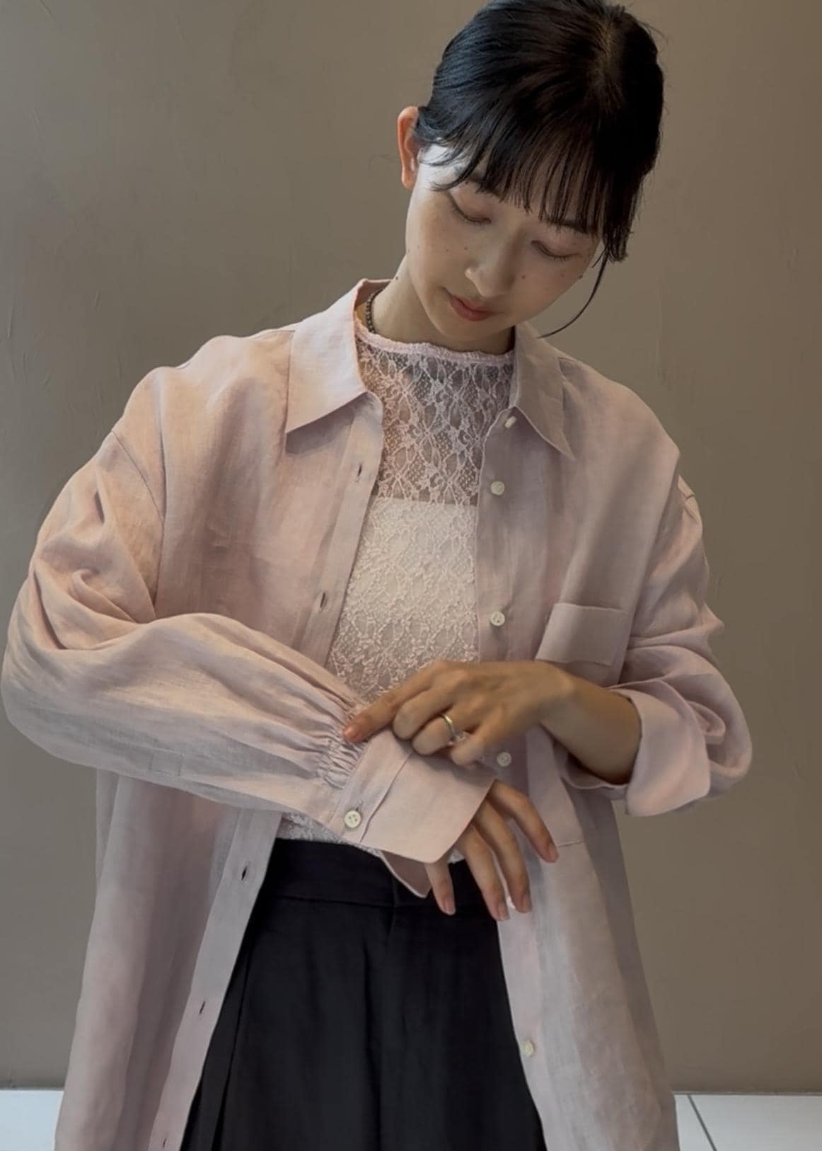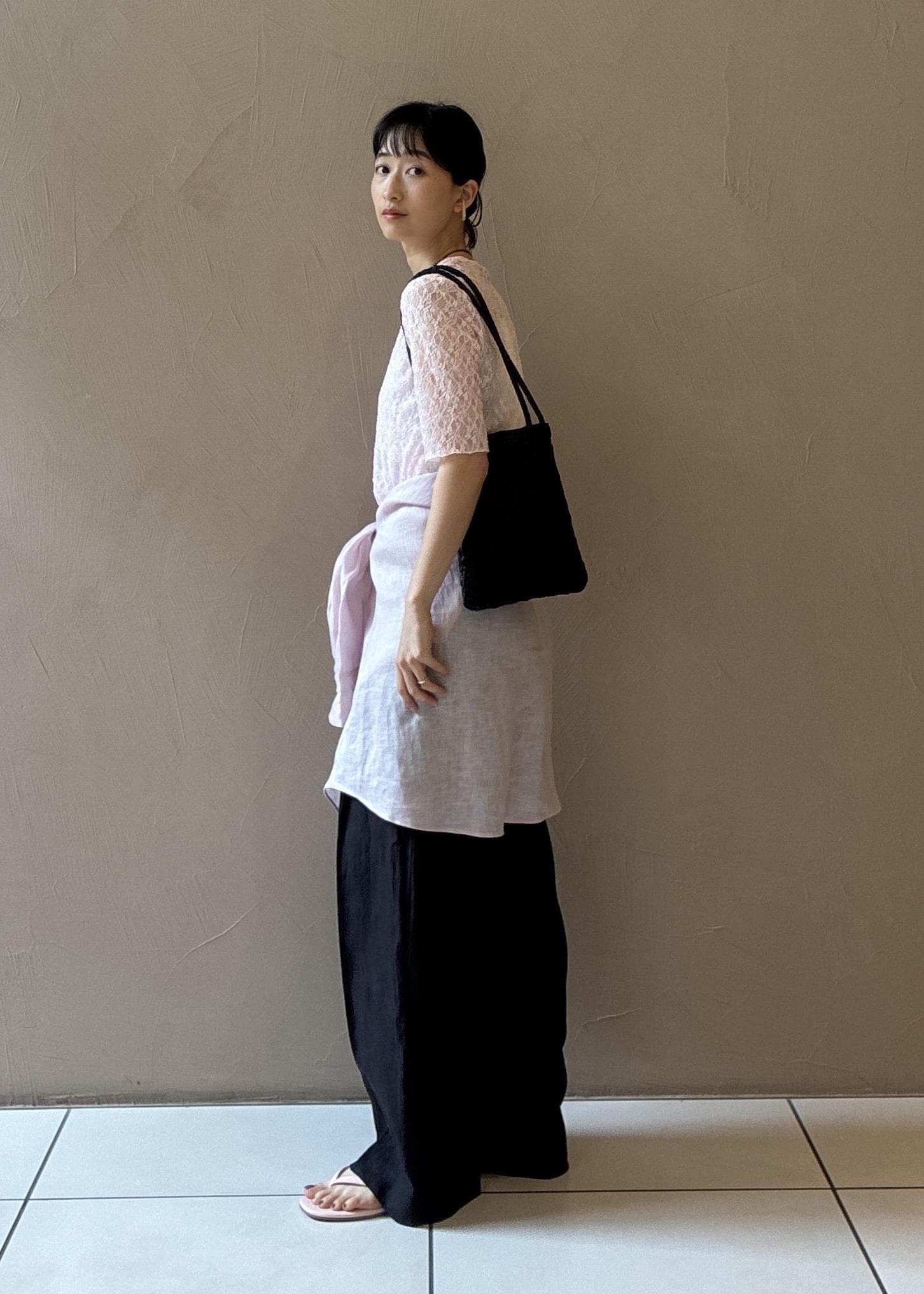 ピンクのものを着ようとスタイリングしました。