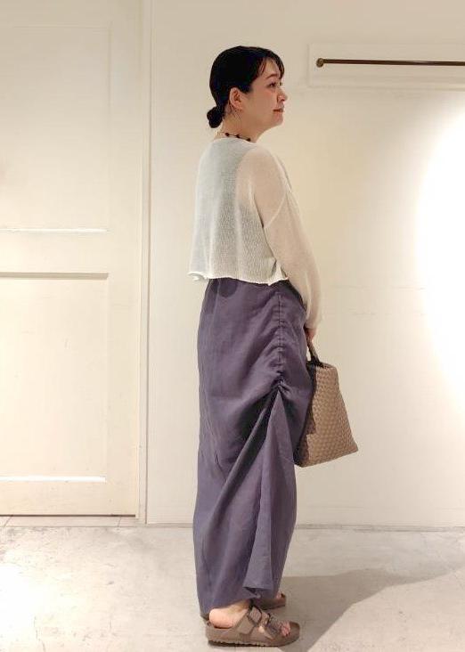 またサマーニットの程よい透け感で、涼しく且つ二の腕が隠せるコーデにしました。
