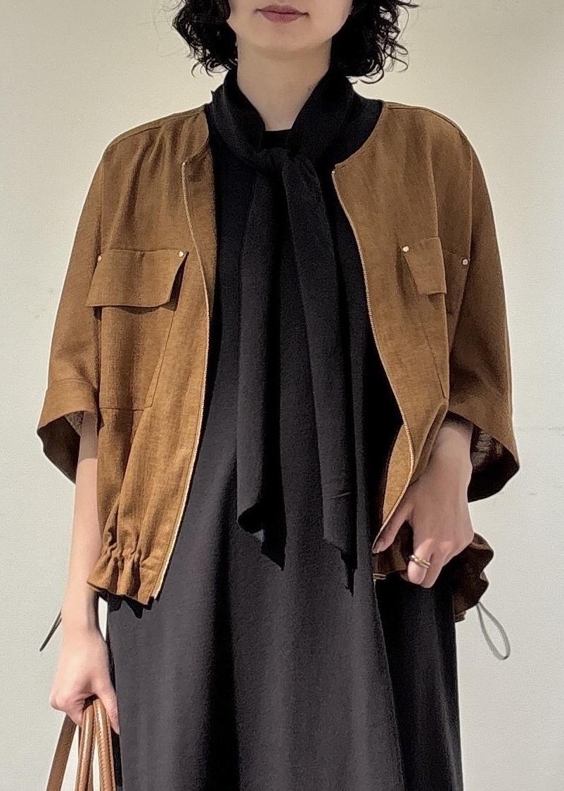 SALON adam et ropé【WEB限定】ハーフスリーブドロストライトブルゾンブラウン系 / F¥18,700レビュー麻のような質感で、軽やかな生地です。
