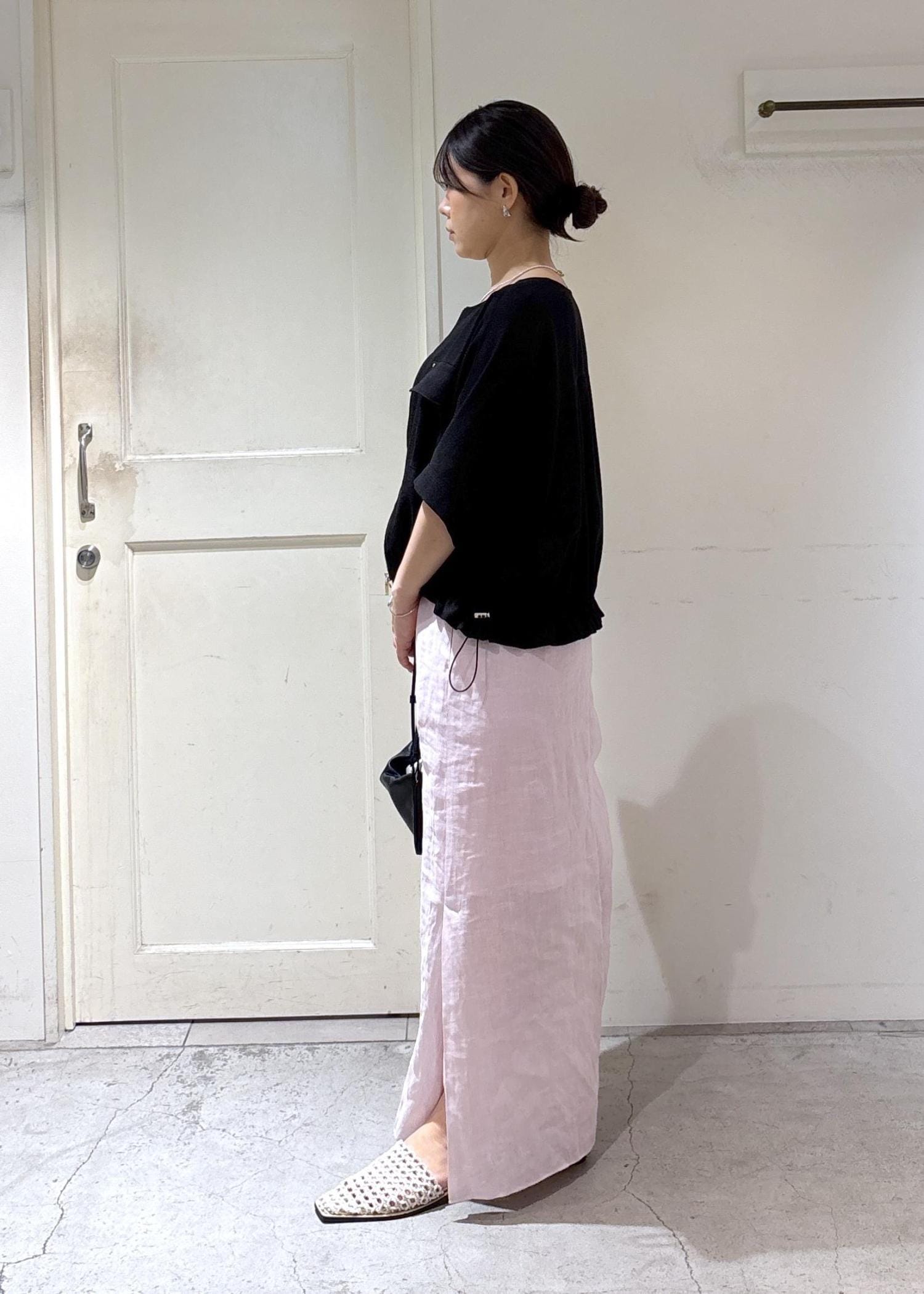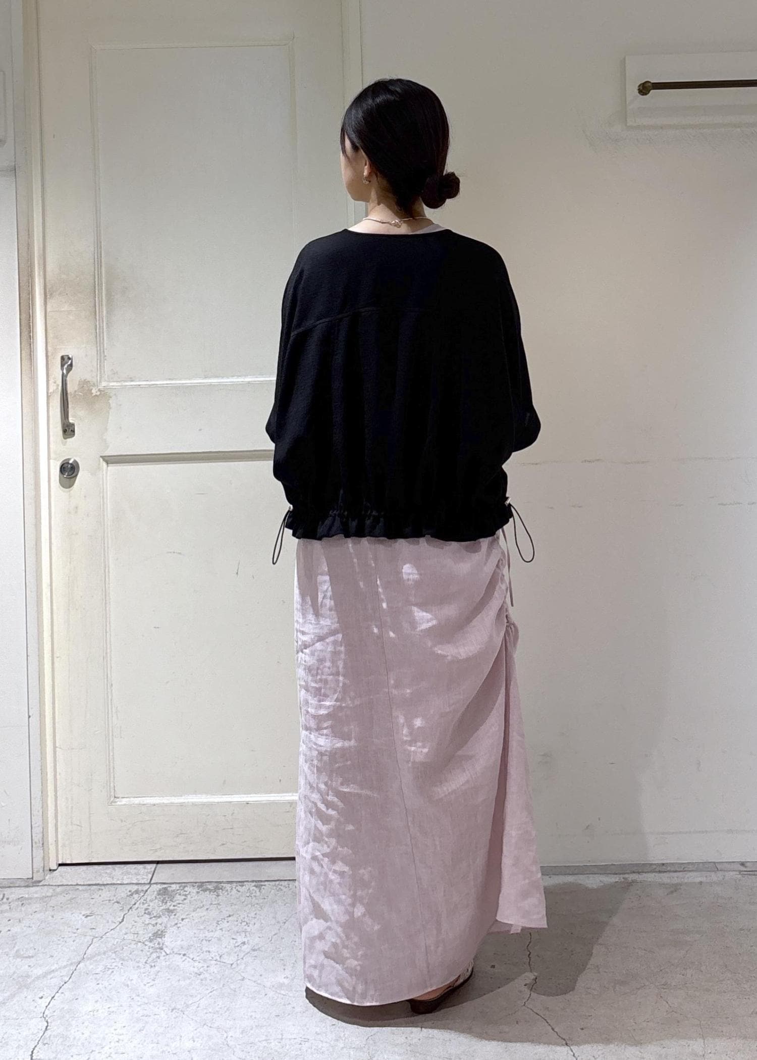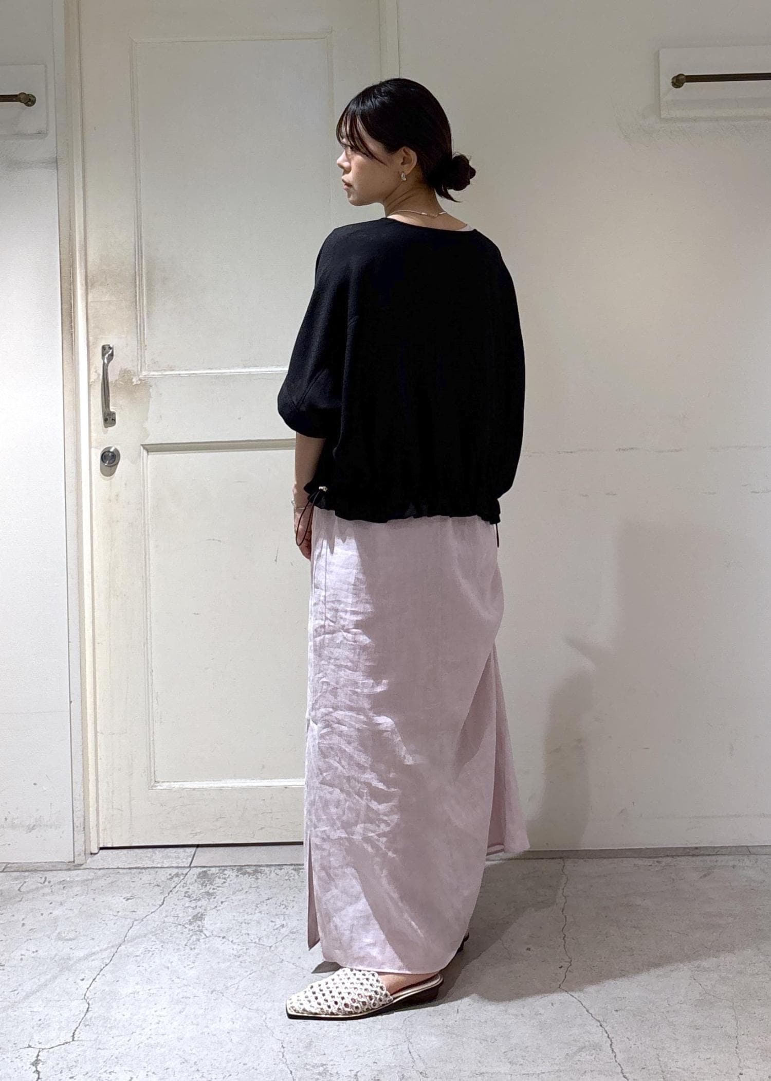 SALON adam et ropéリネンドロストノースリーブワンピース / GENTLE LINENピンク / F¥29,700レビュー丈は足首あたり、サイドの紐で長さ調節可能です。