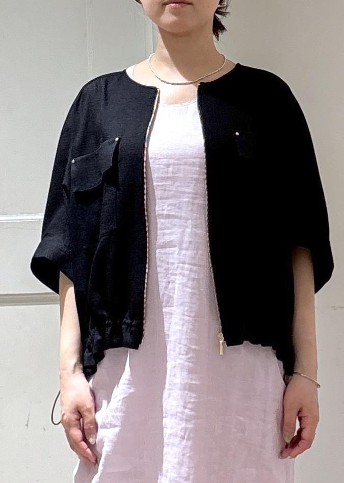 SALON adam et ropé【WEB限定】ハーフスリーブドロストライトブルゾンブラック / F¥18,700レビュー丈は腰あたり。