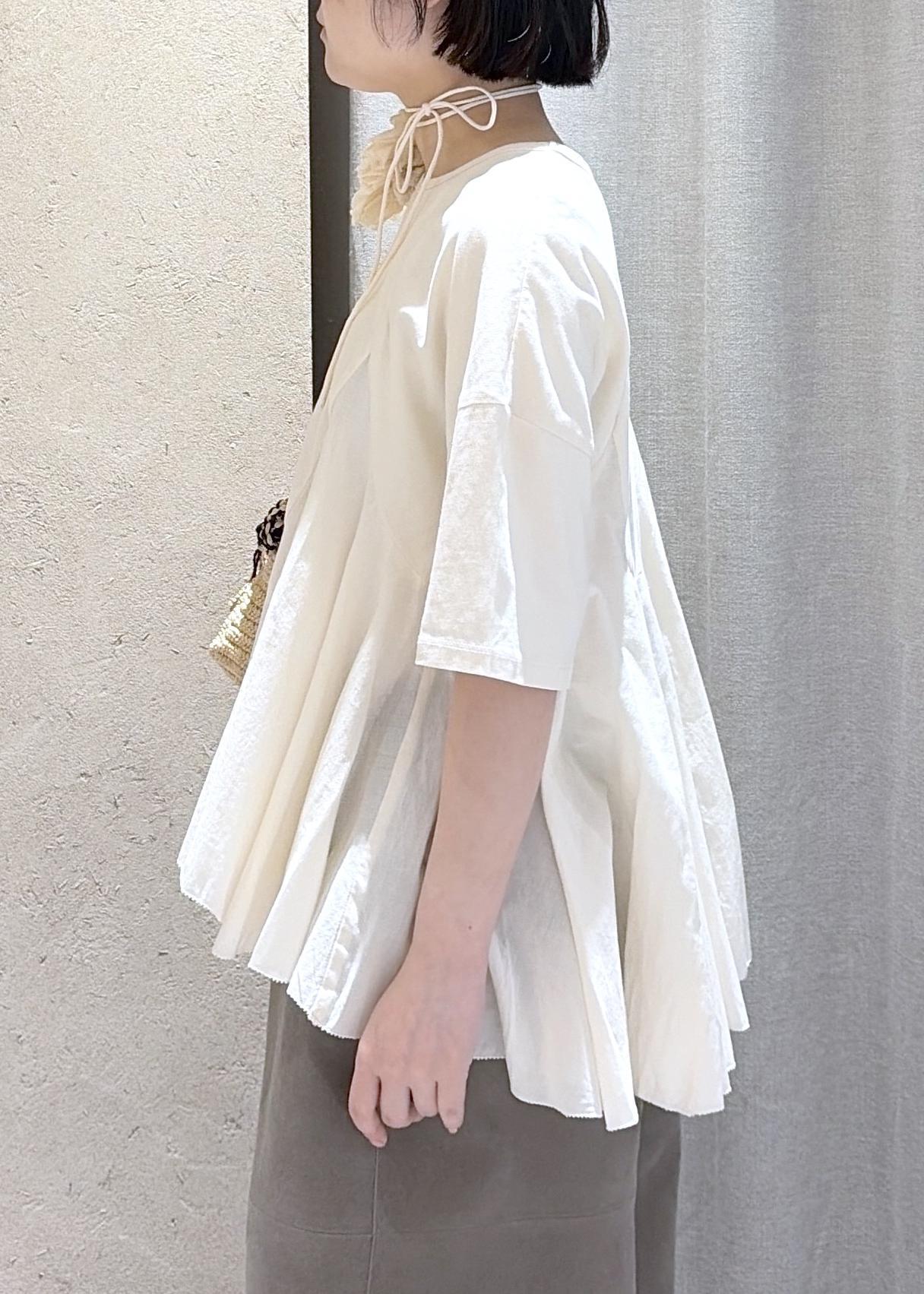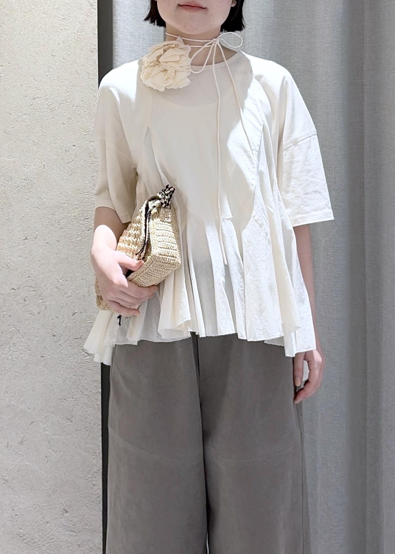 予約SALON adam et ropé【AAYUSHI(アユーシ) for SALON】別注ペプラムラッフルTシャツキナリ / F¥23,100レビューかなりサラッとしていて着心地の良いコットン素材です。腕周り、お腹周りともにゆったりとしたサイジングで暑い日も汗染み気にすることなく涼しげに着ていただけそうです。また、付属のお花のコード付きコサージュは腰巻きや首元だけでなく、手首に巻いたりシンプルにになりがちな夏のスタイリングのアクセントにぴったりです。