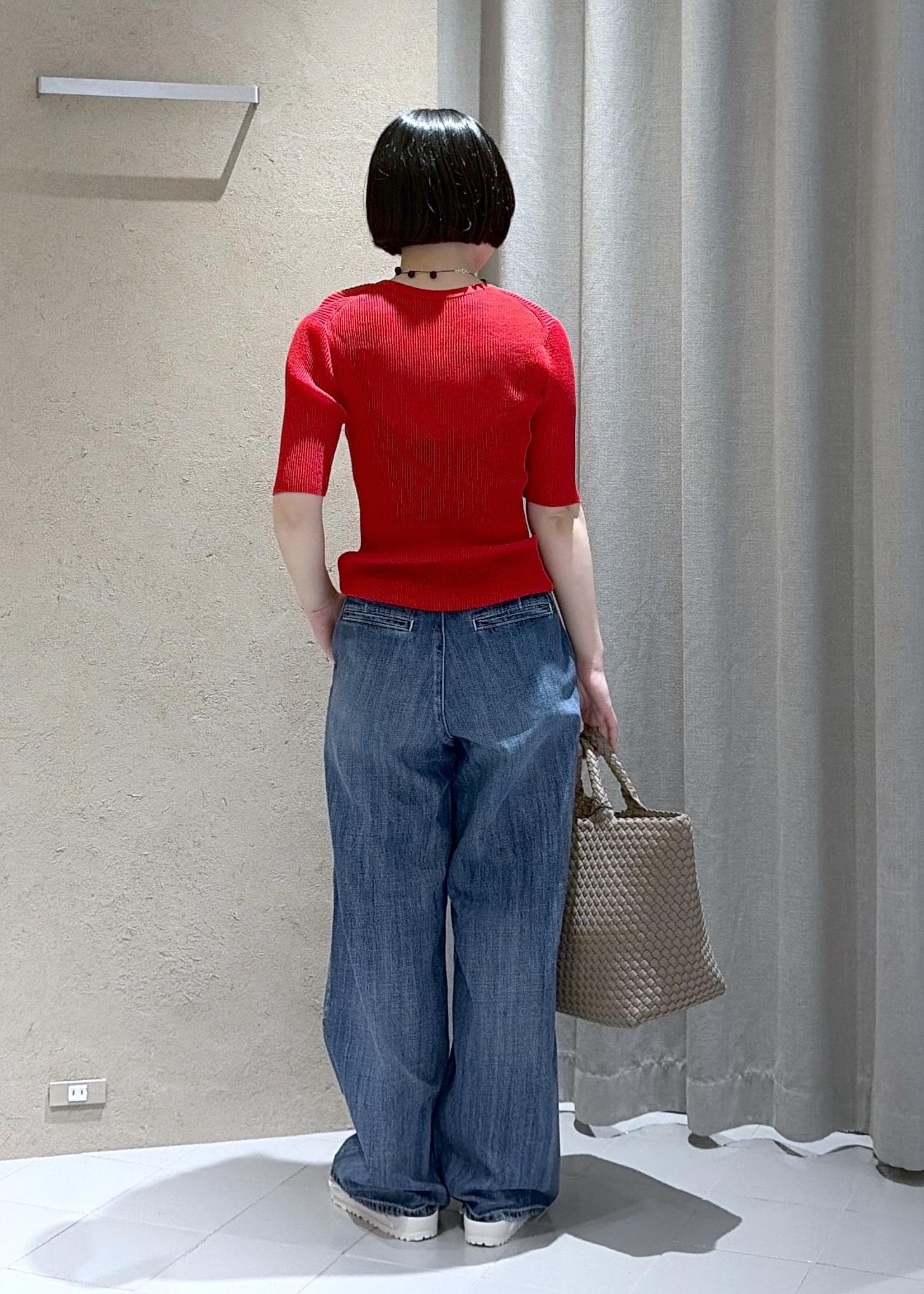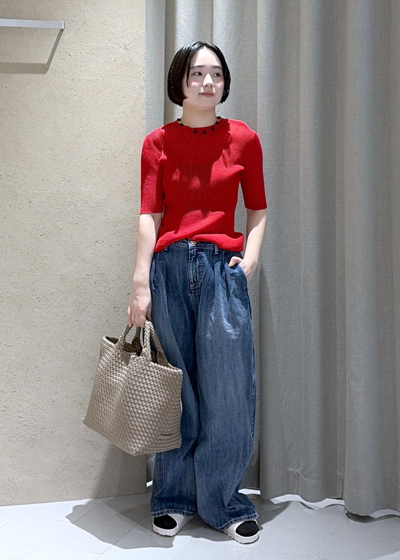 今回は定番におすすめしたい赤×デニム合わせでコーディネートしてみました。