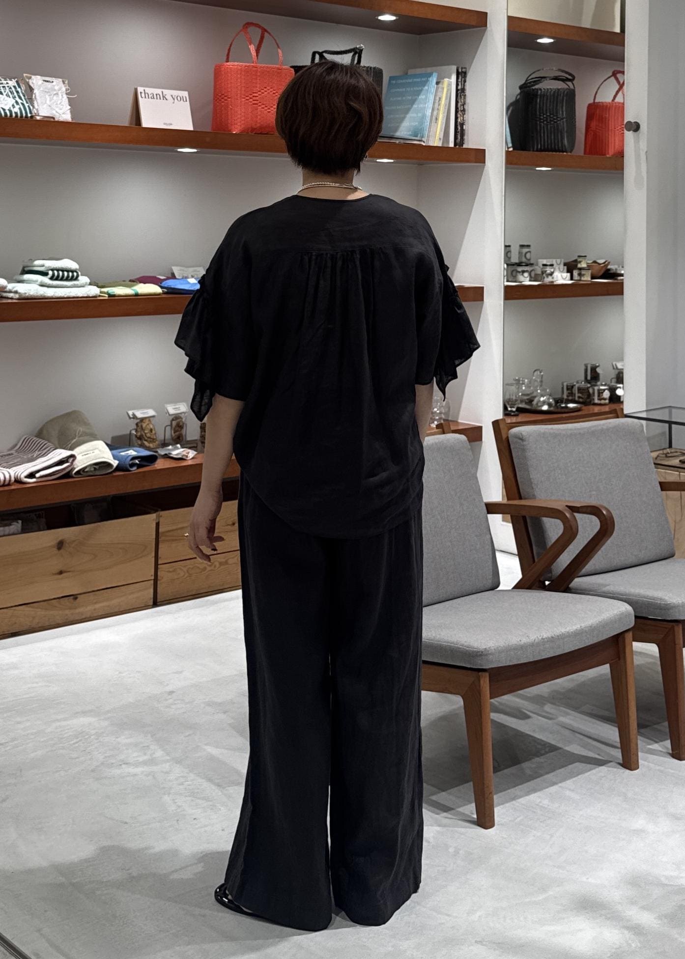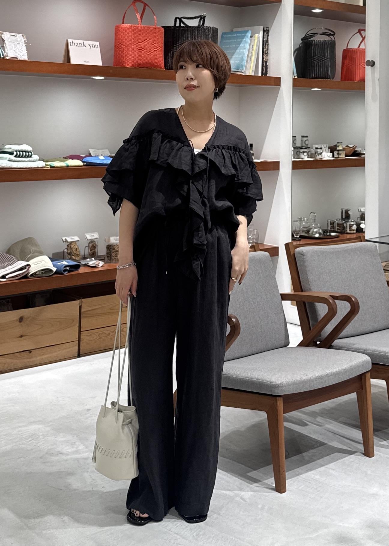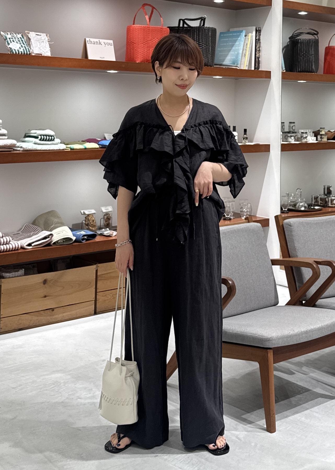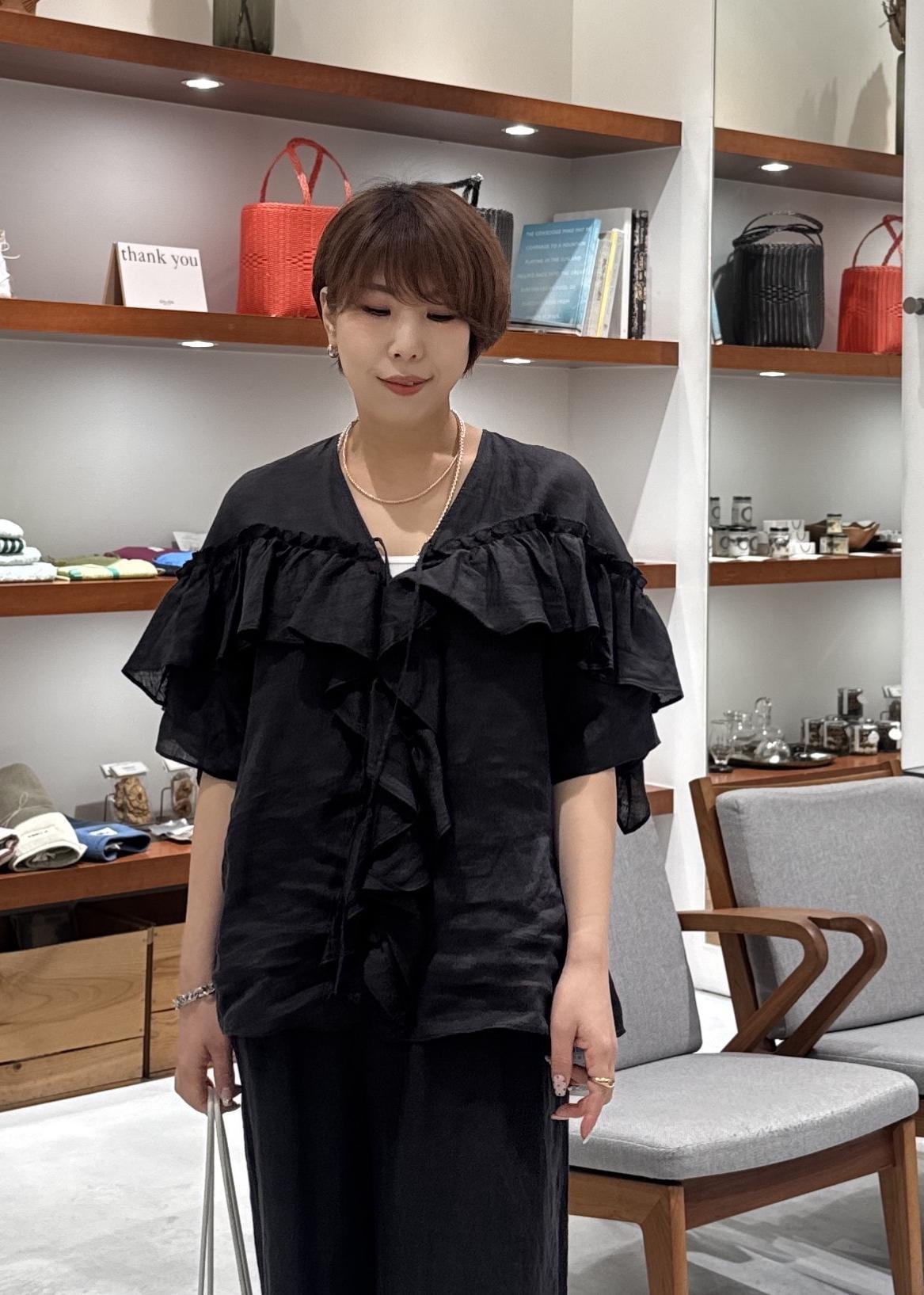 SALON adam et ropé【WEB限定】ヨーロピアンリネンルジェフリルブラウスチャコール / F¥18,700レビュー柔らかいリネンでチクチク感なく着用できます。