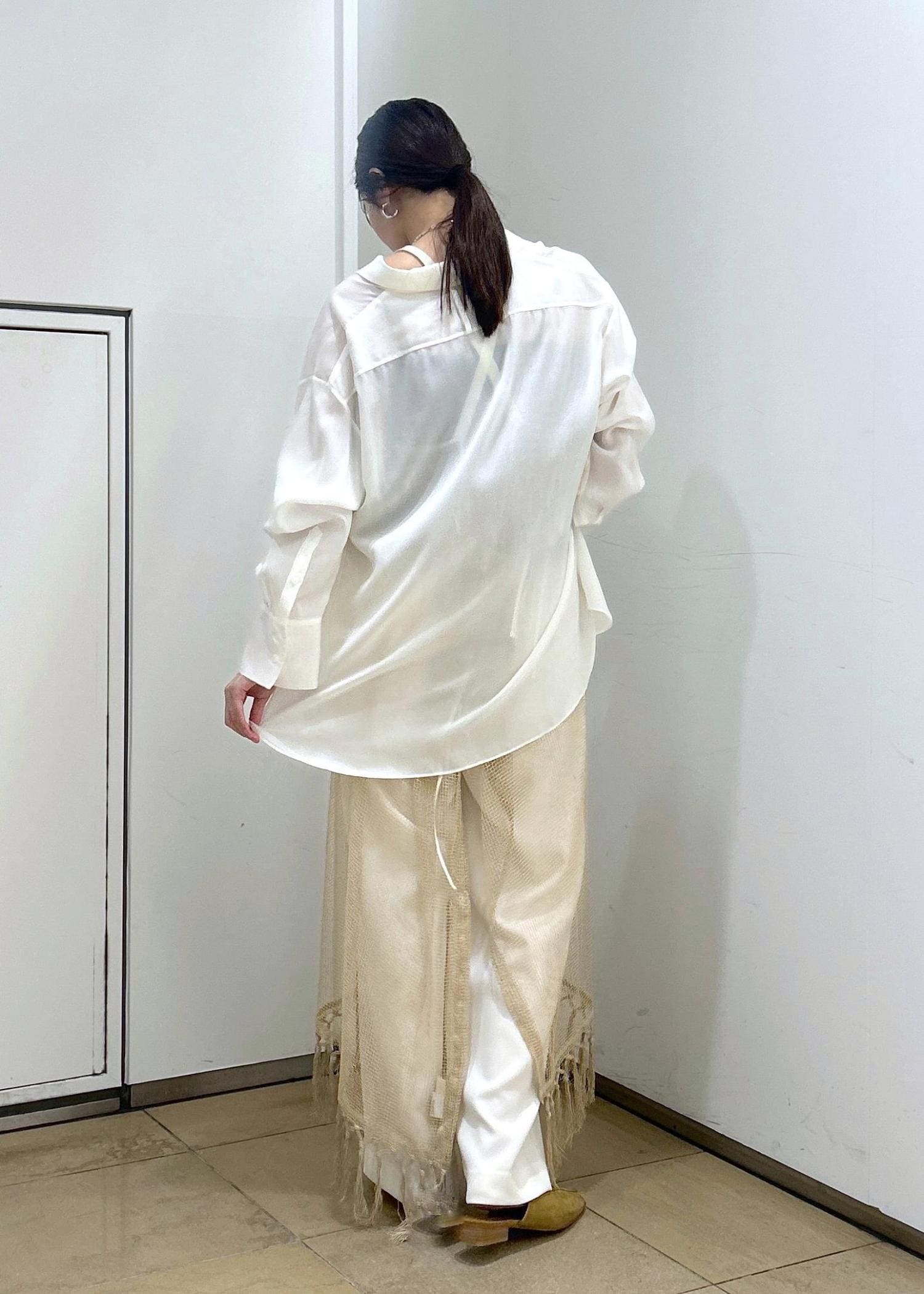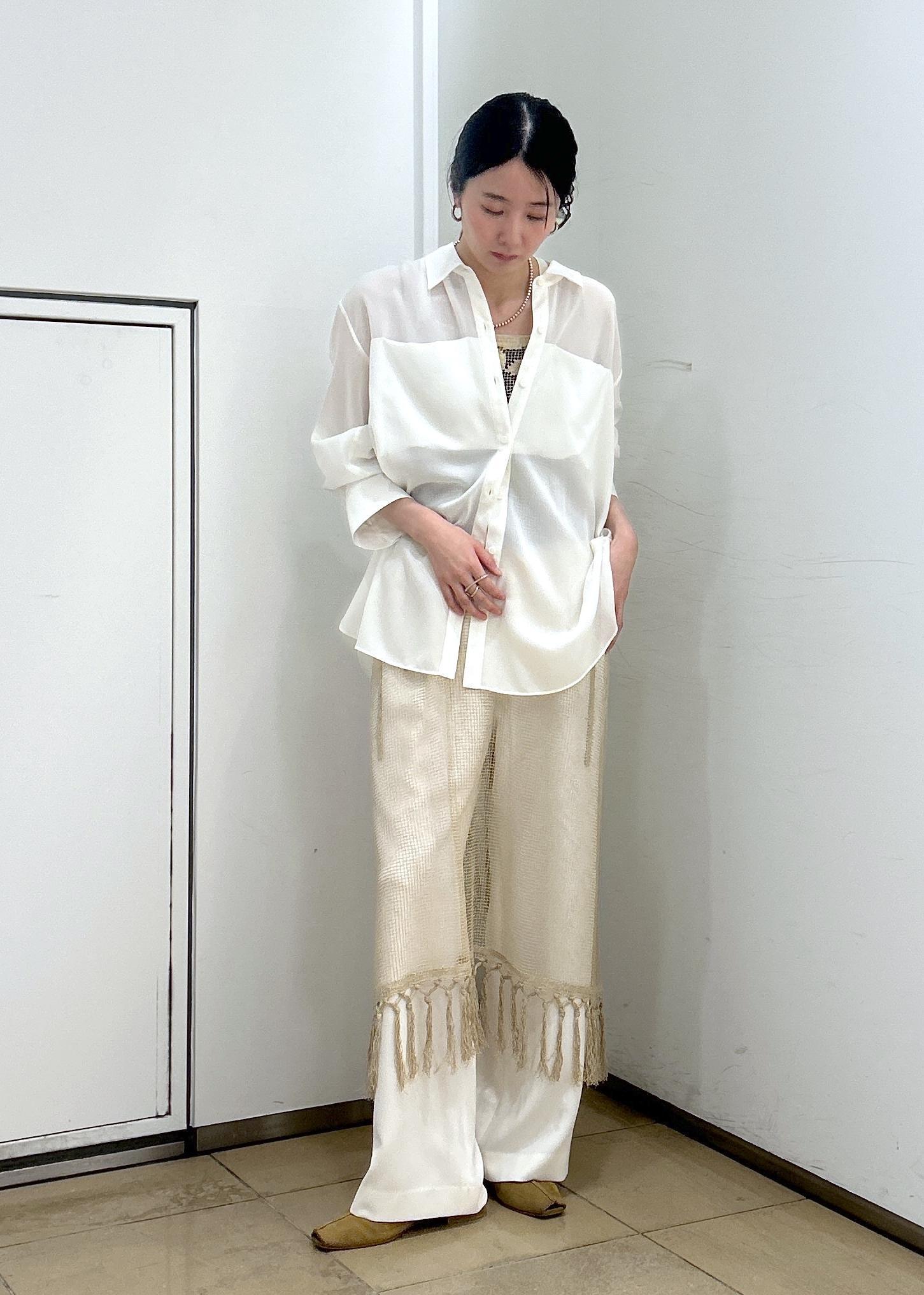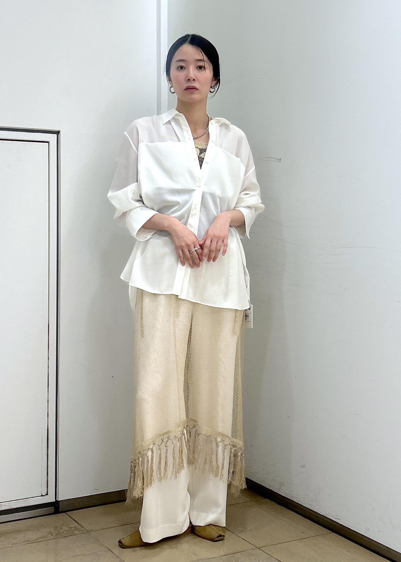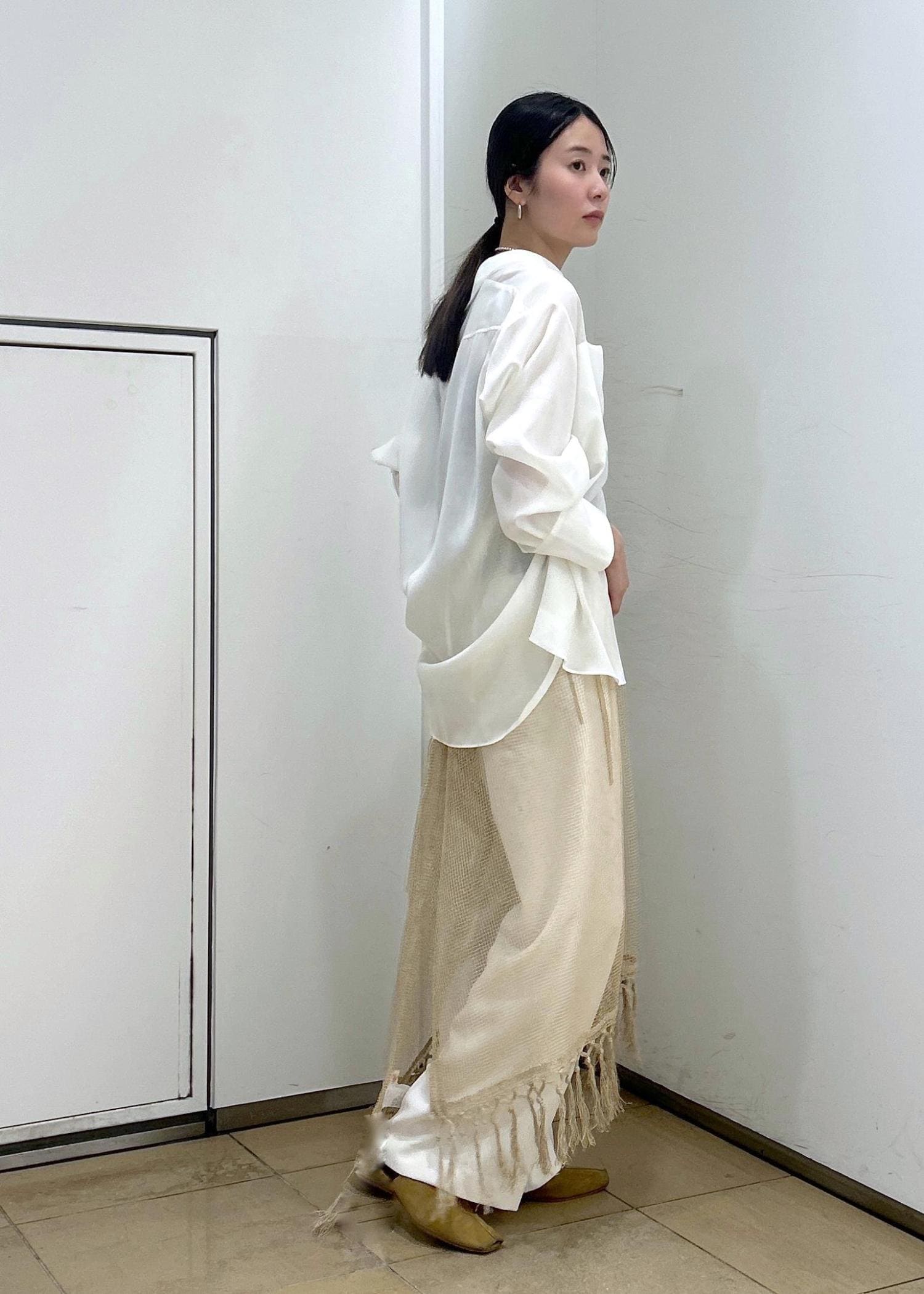 Mサイズ着用で足の甲がしっかり隠れる着丈です。