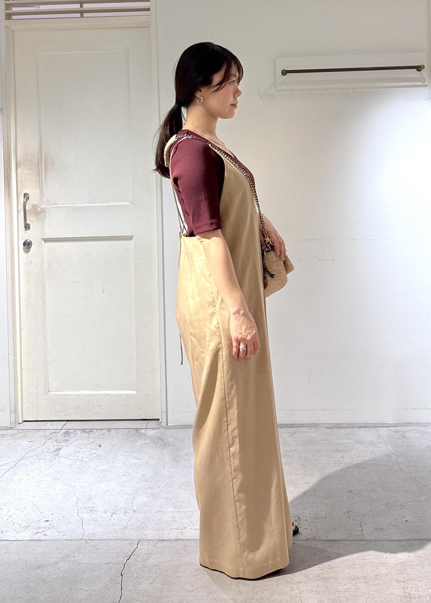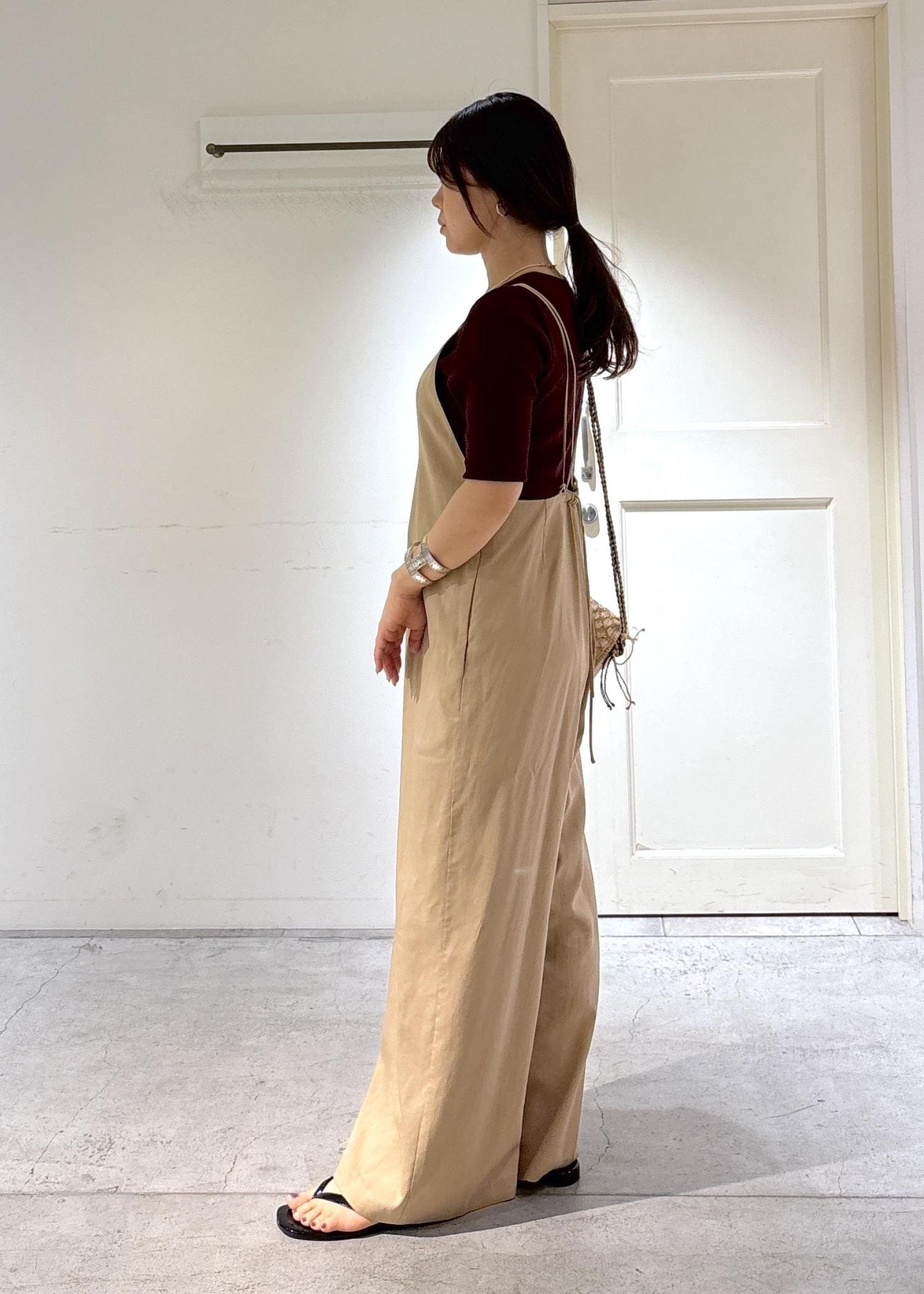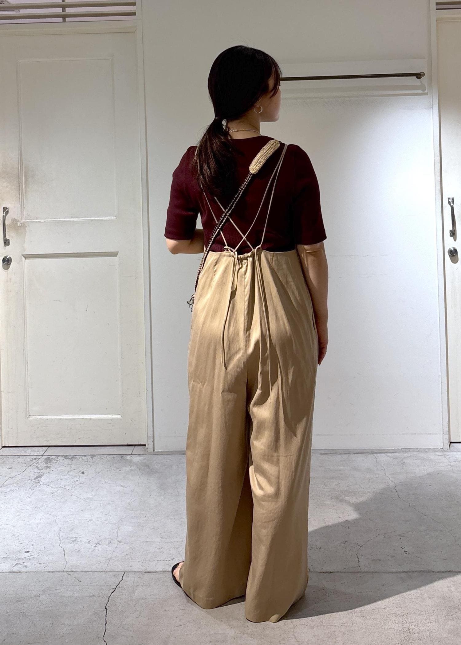 SALON adam et ropéビンテージツイルサロペットベージュ / F¥31,900レビュー丈は後ろのストラップでお好きな長さに調節可能。