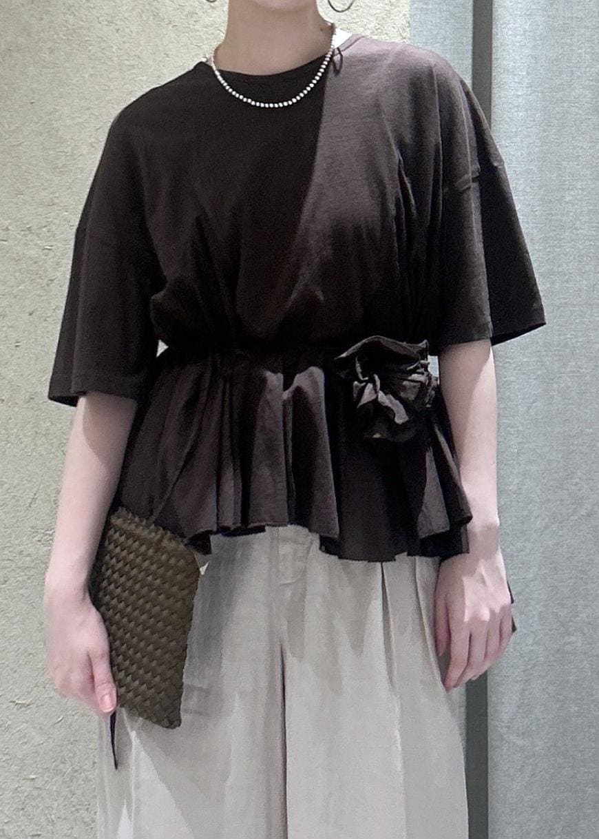 予約SALON adam et ropé【AAYUSHI(アユーシ) for SALON】別注ペプラムラッフルTシャツダークブラウン / F¥23,100レビュー【サイズ感】