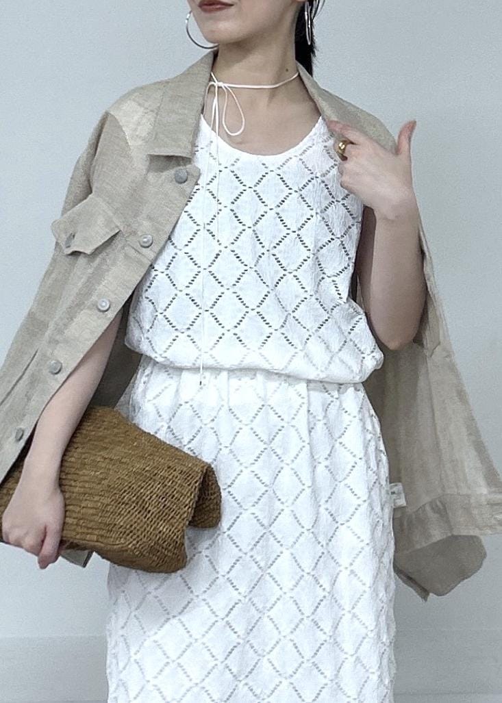 ダイヤ柄のデザインがかわいい夏の軽やかなセットアップ。