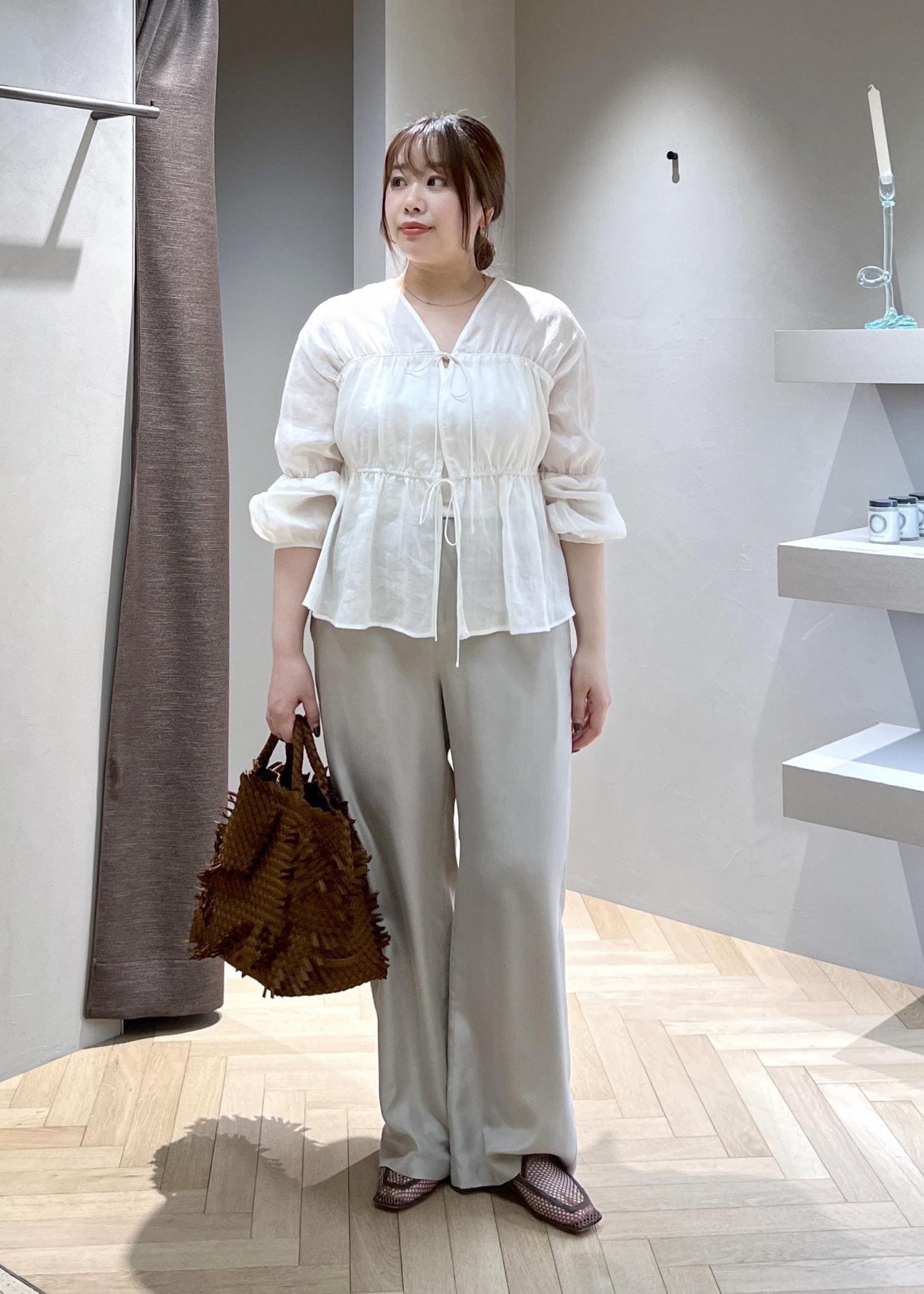 SALON adam et ropé[26SS]GENTLE SILK パンツ / セットアップ対応・洗えるベージュ系 / S¥31,900レビュー【サイズ感】