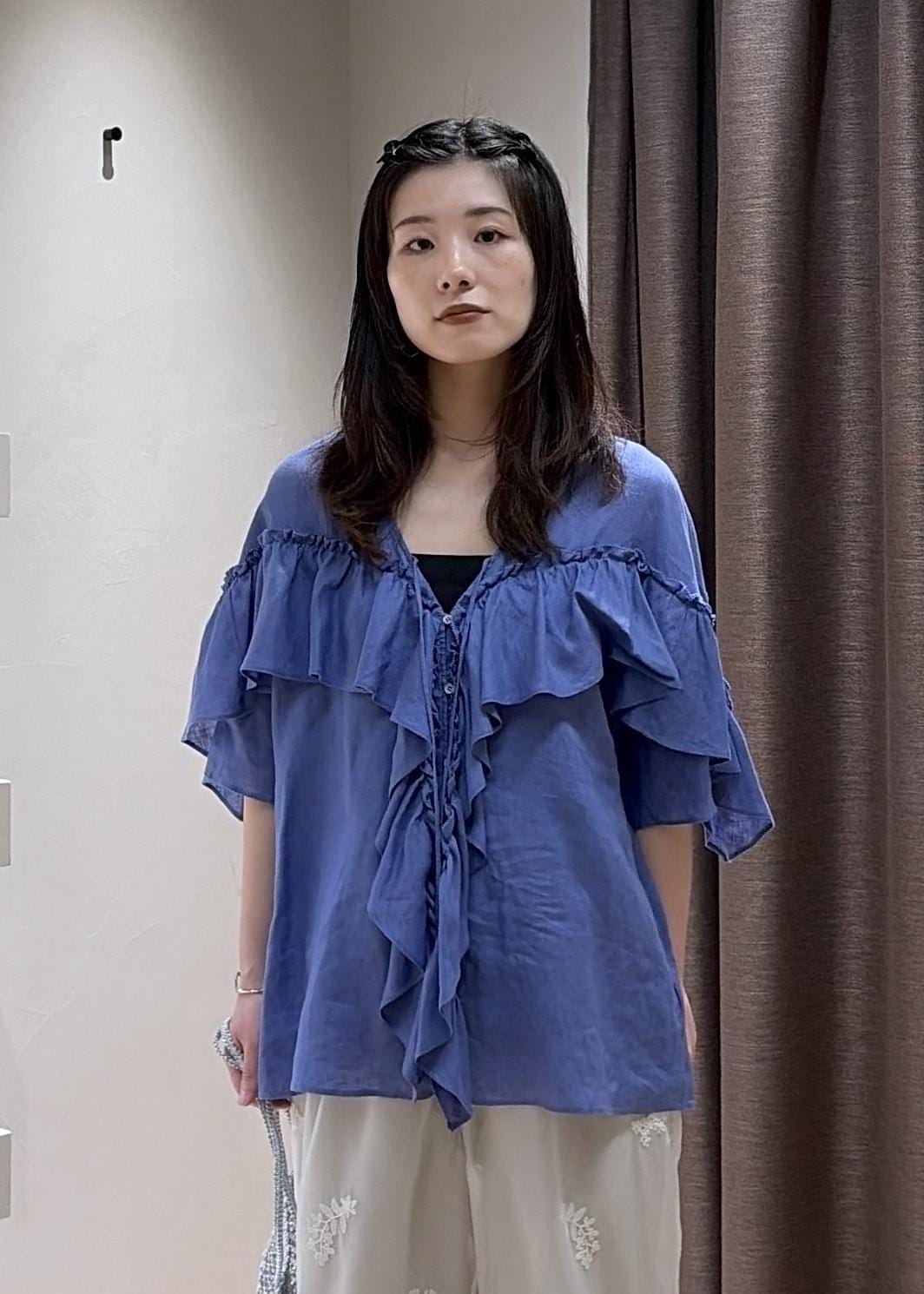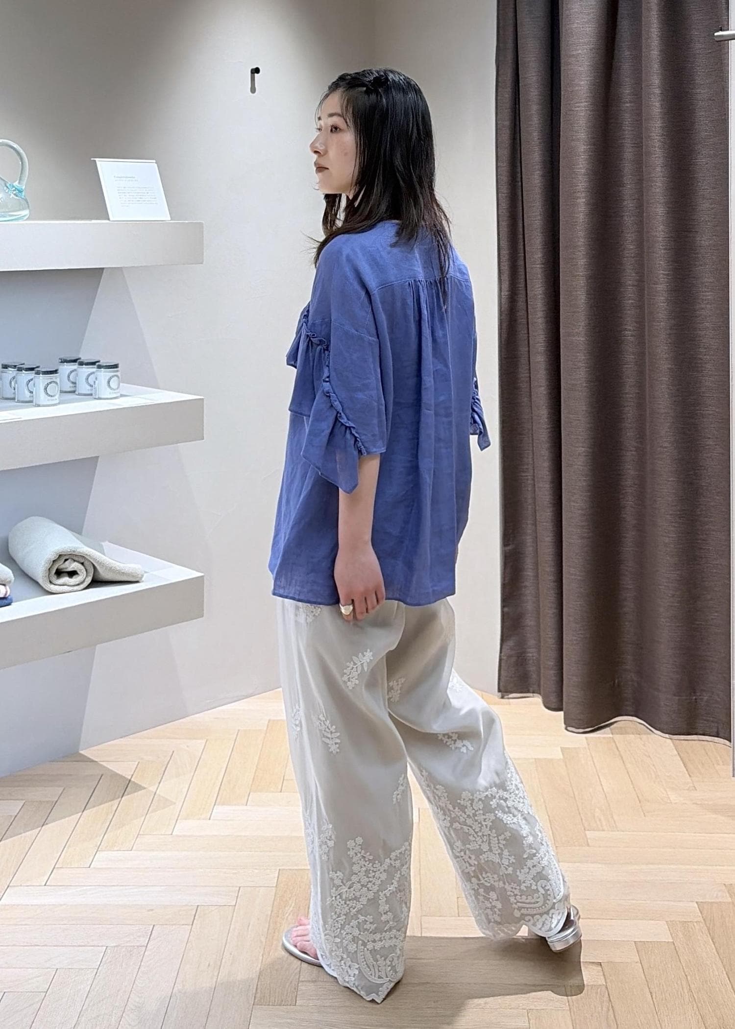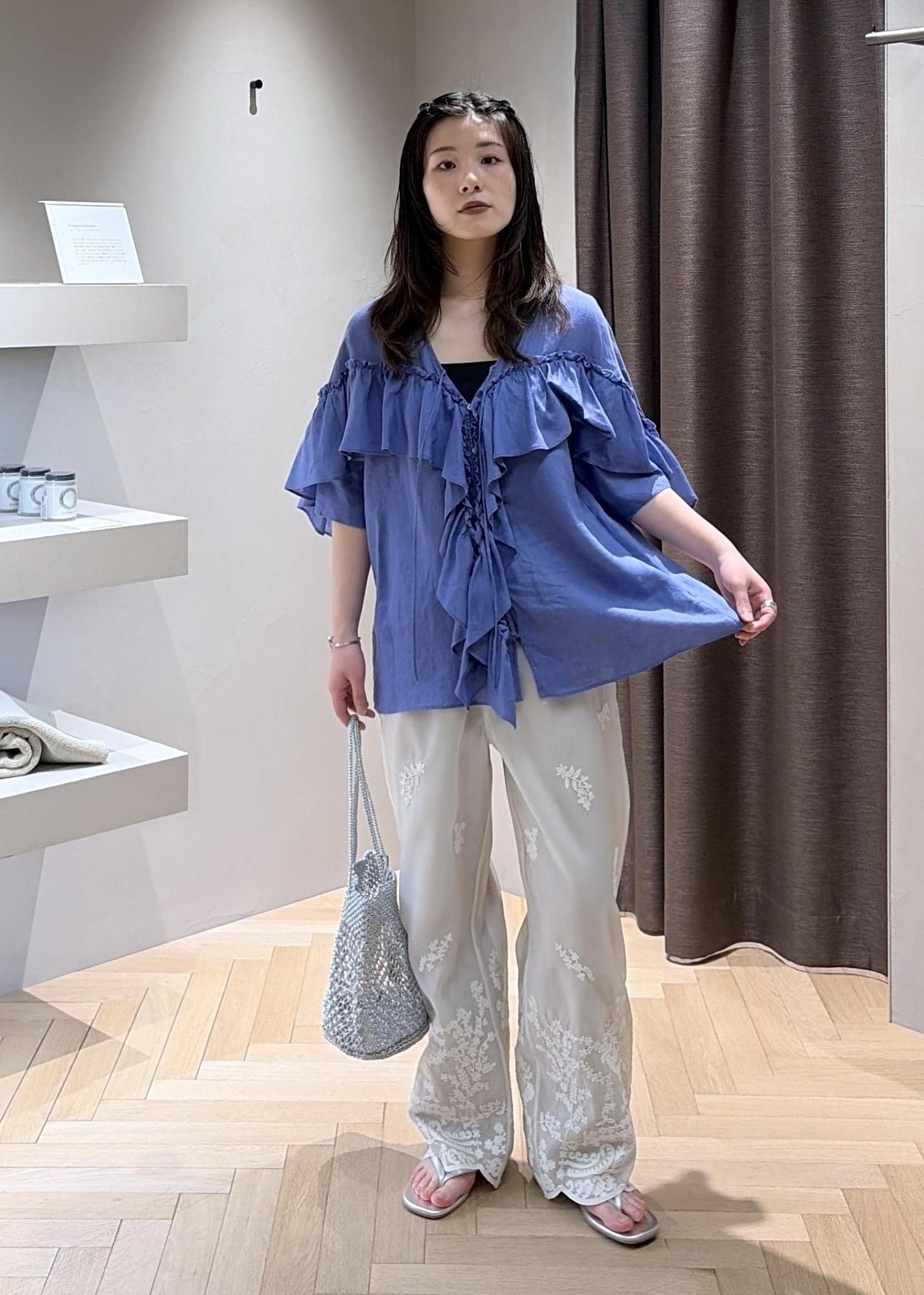 SALON adam et ropé【WEB限定】ヨーロピアンリネンルジェフリルブラウスブルー系 / F¥18,700レビュー【サイズ感】