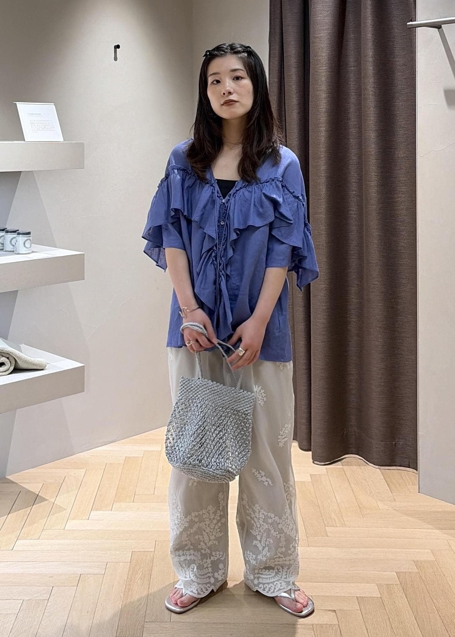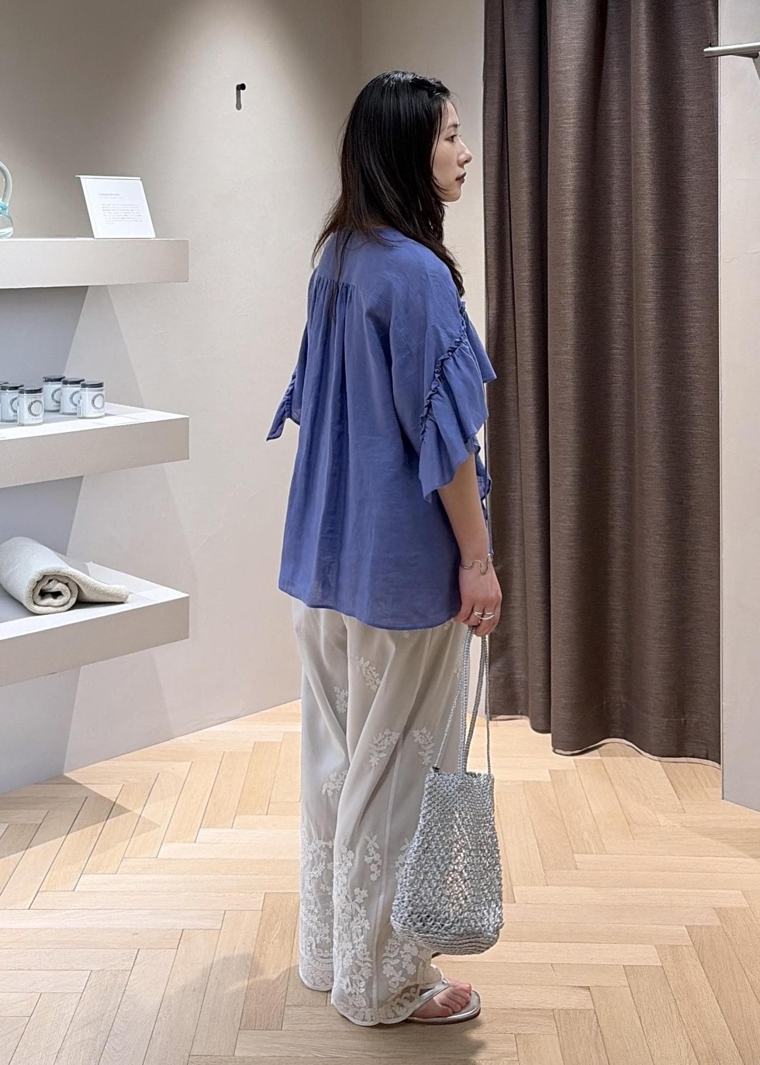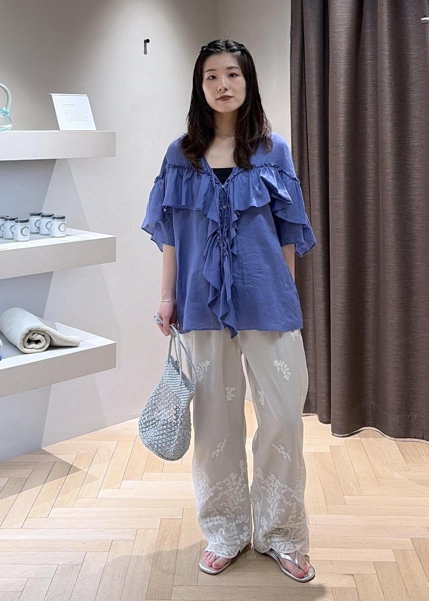 SALON adam et ropé【WEB限定】ヨーロピアンリネンルジェフリルブラウスブルー系 / F¥18,700レビュー【サイズ感】