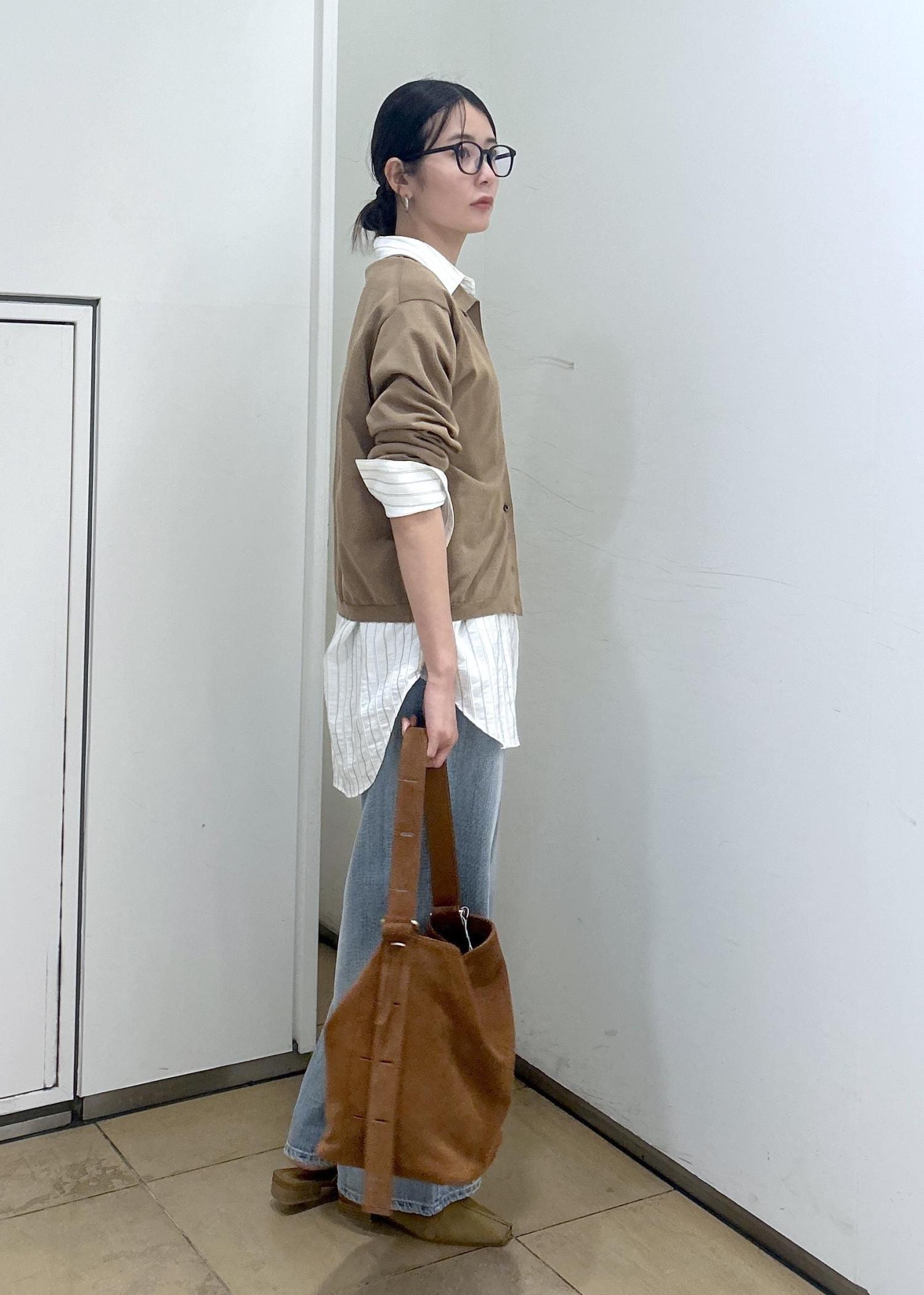 シャツをレイヤードしてカジュアルダウンしてみました。