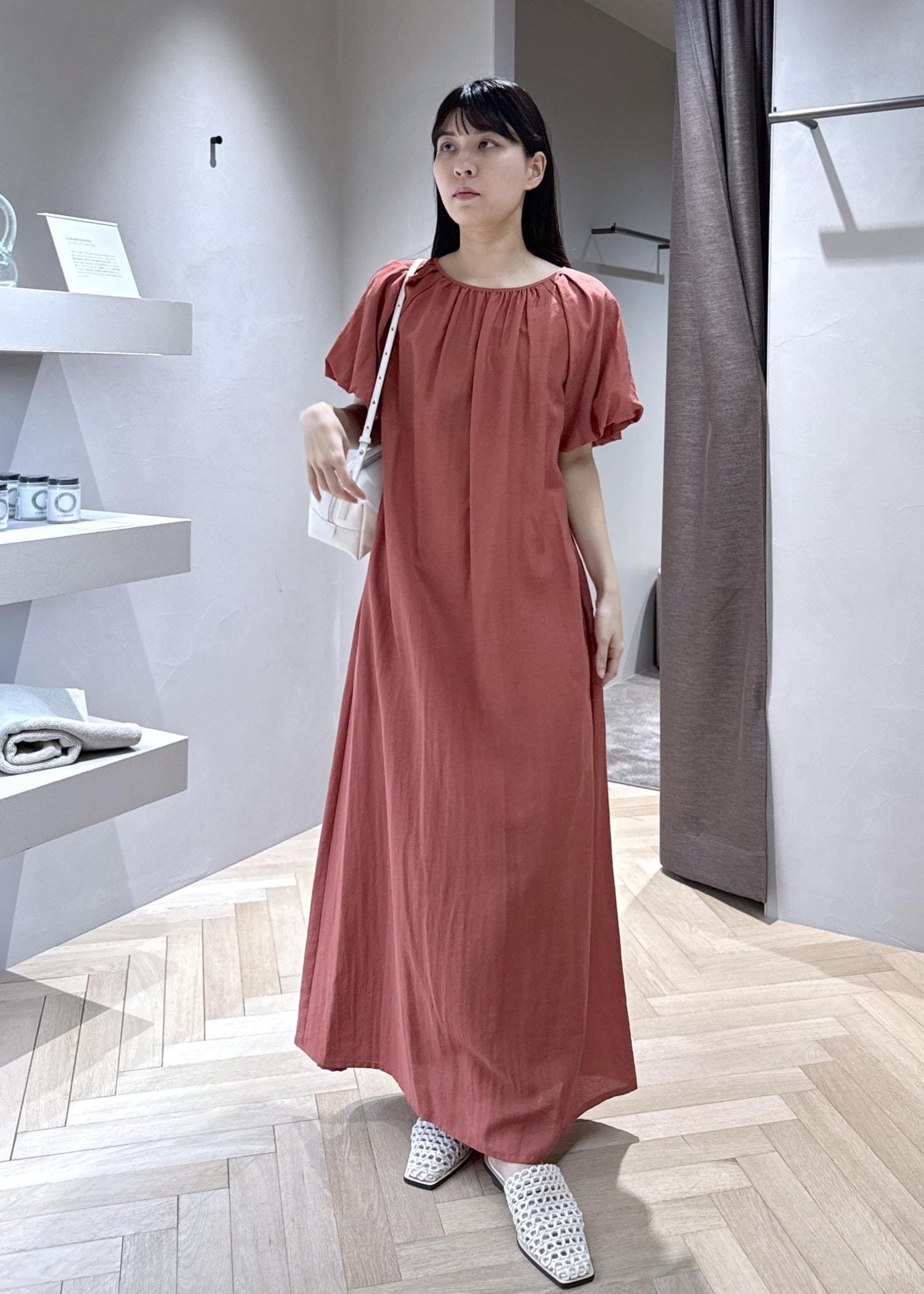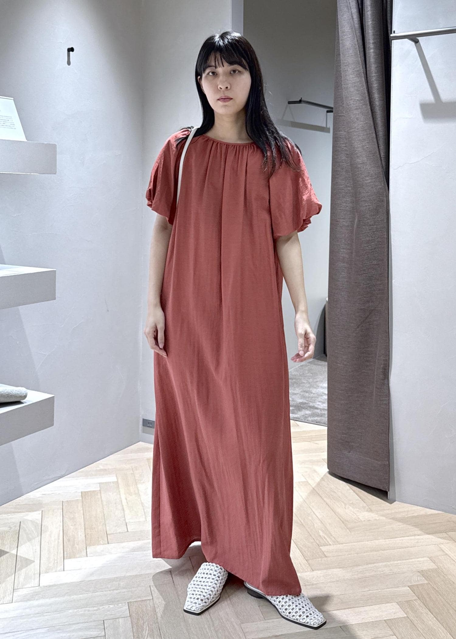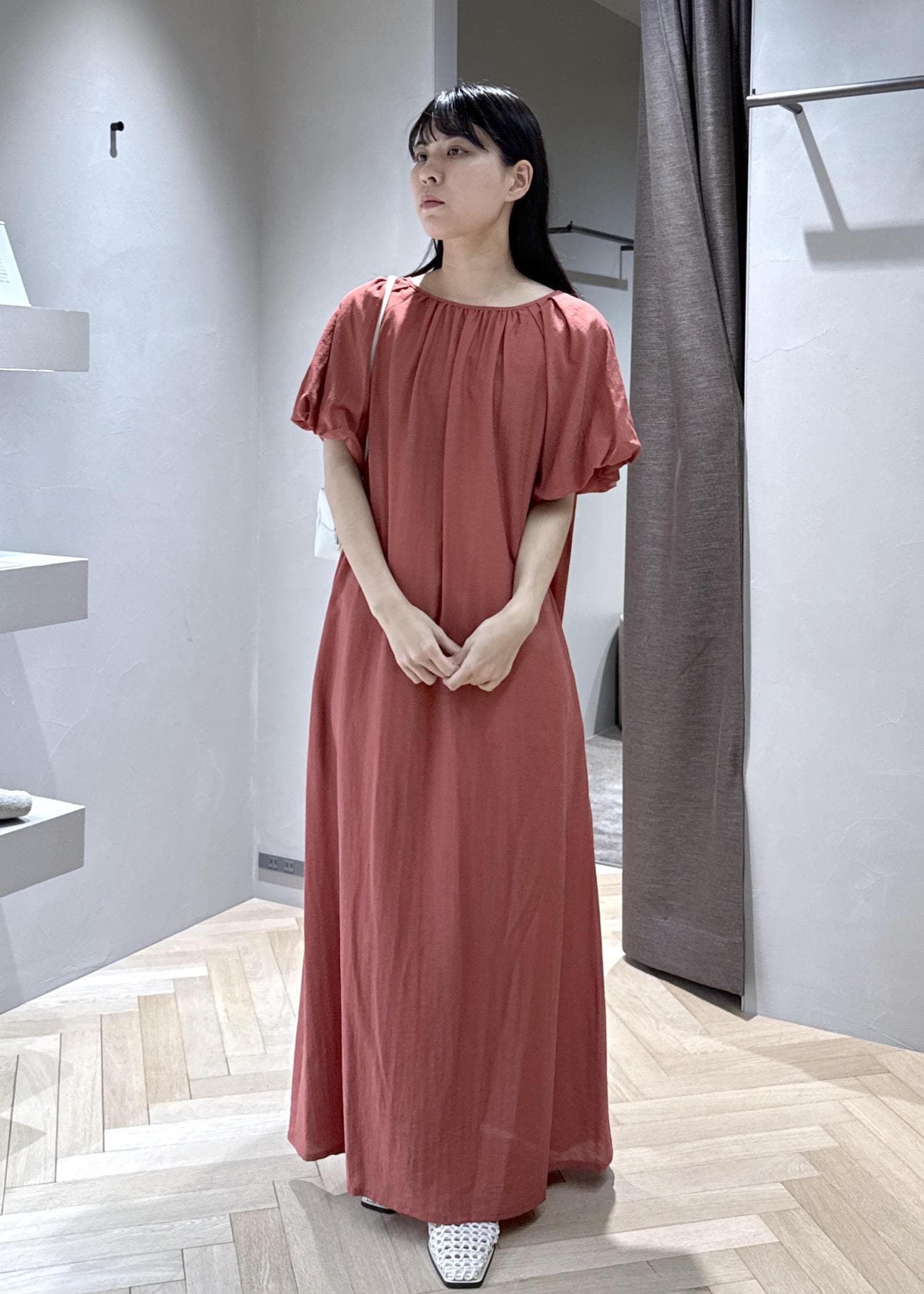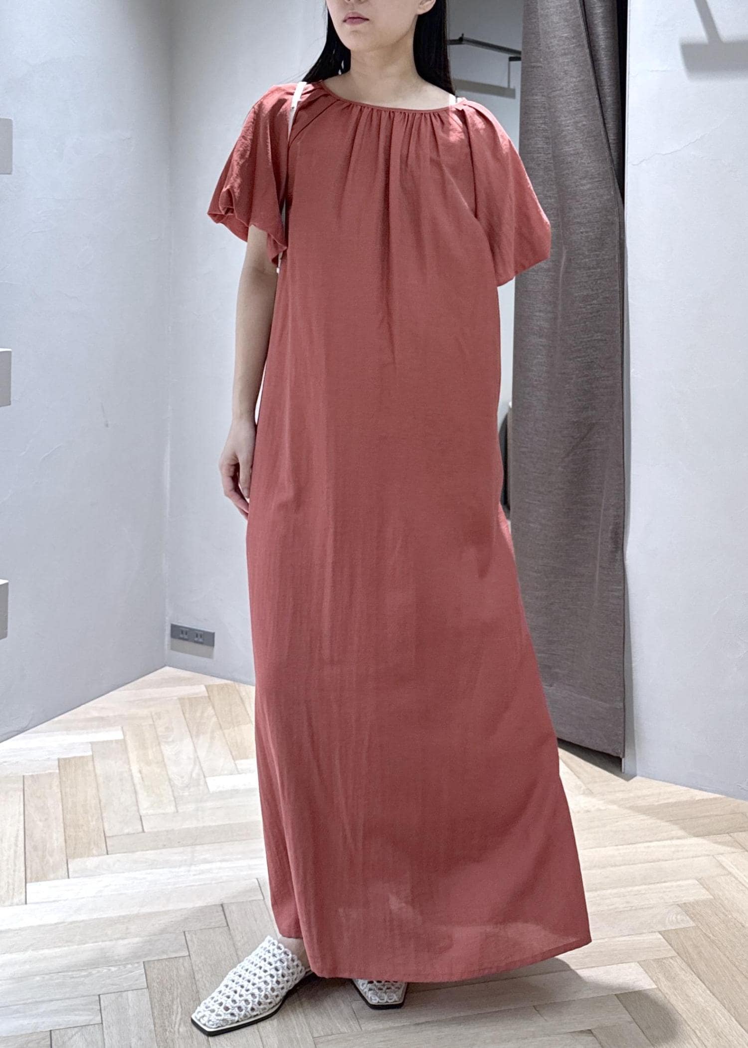 生地も柔らかく、夏に一枚で着たいワンピースです。