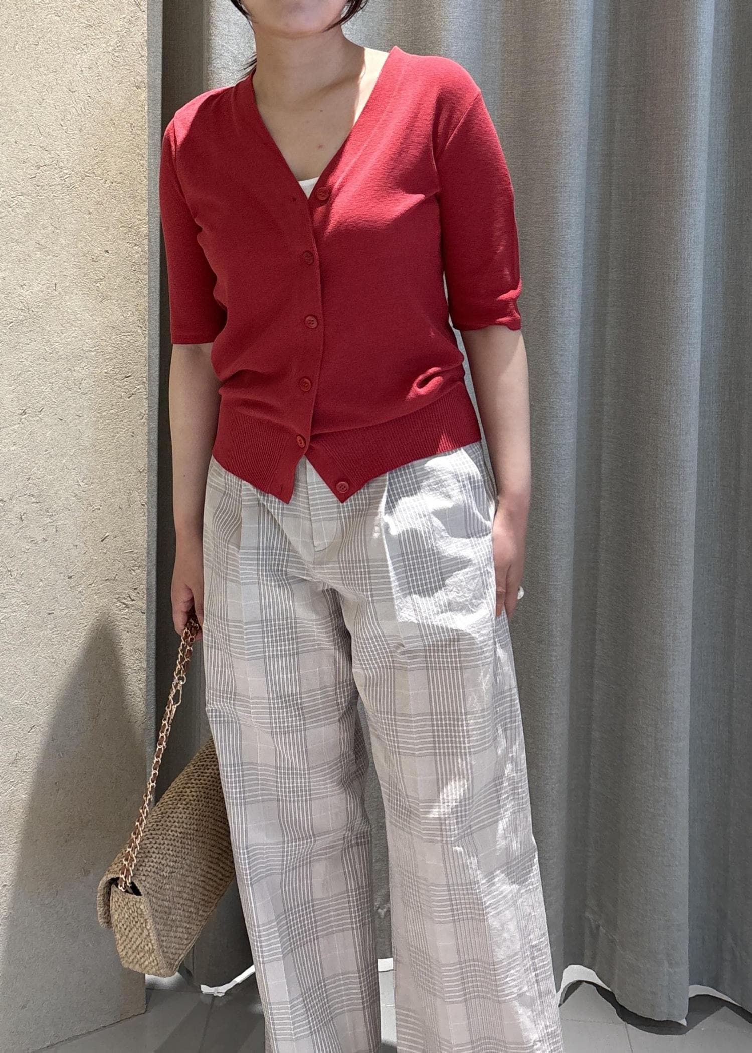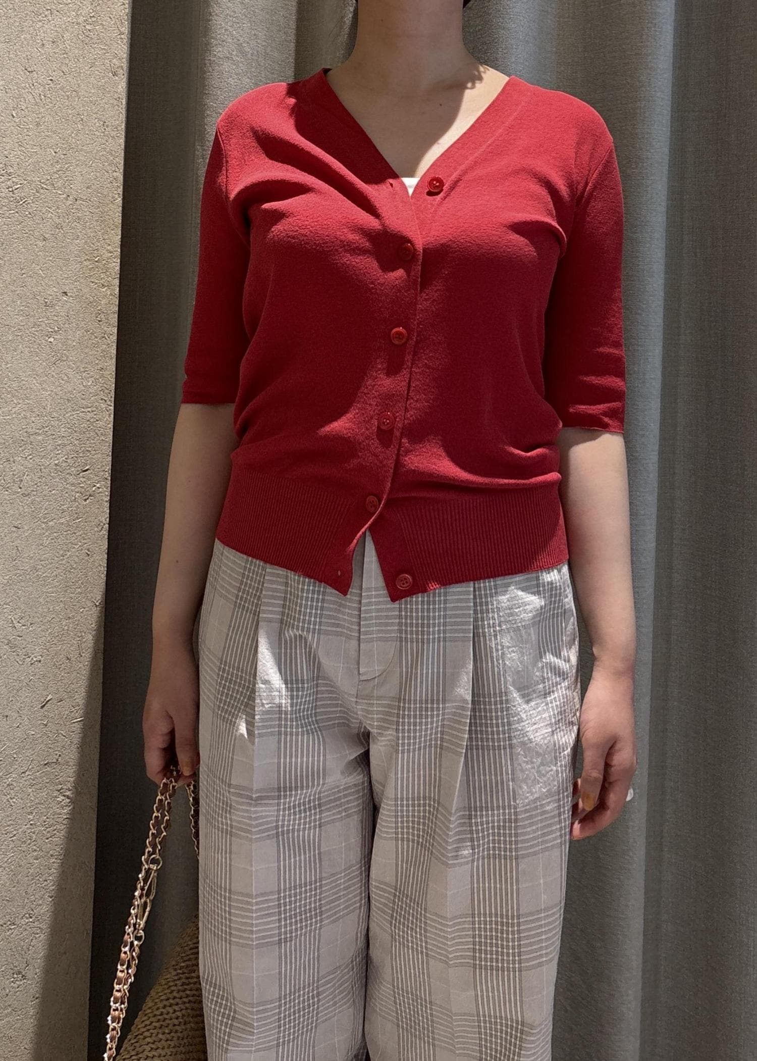 SALON adam et ropéLOTUS ハーフスリーブVネックカーディガン / アンサンブル対応レッド / F¥23,100レビュー着るとひんやり涼しくなるような、シャリ感のある素材です。程よくぴたっとしますが不思議と細く見えるデザインです!