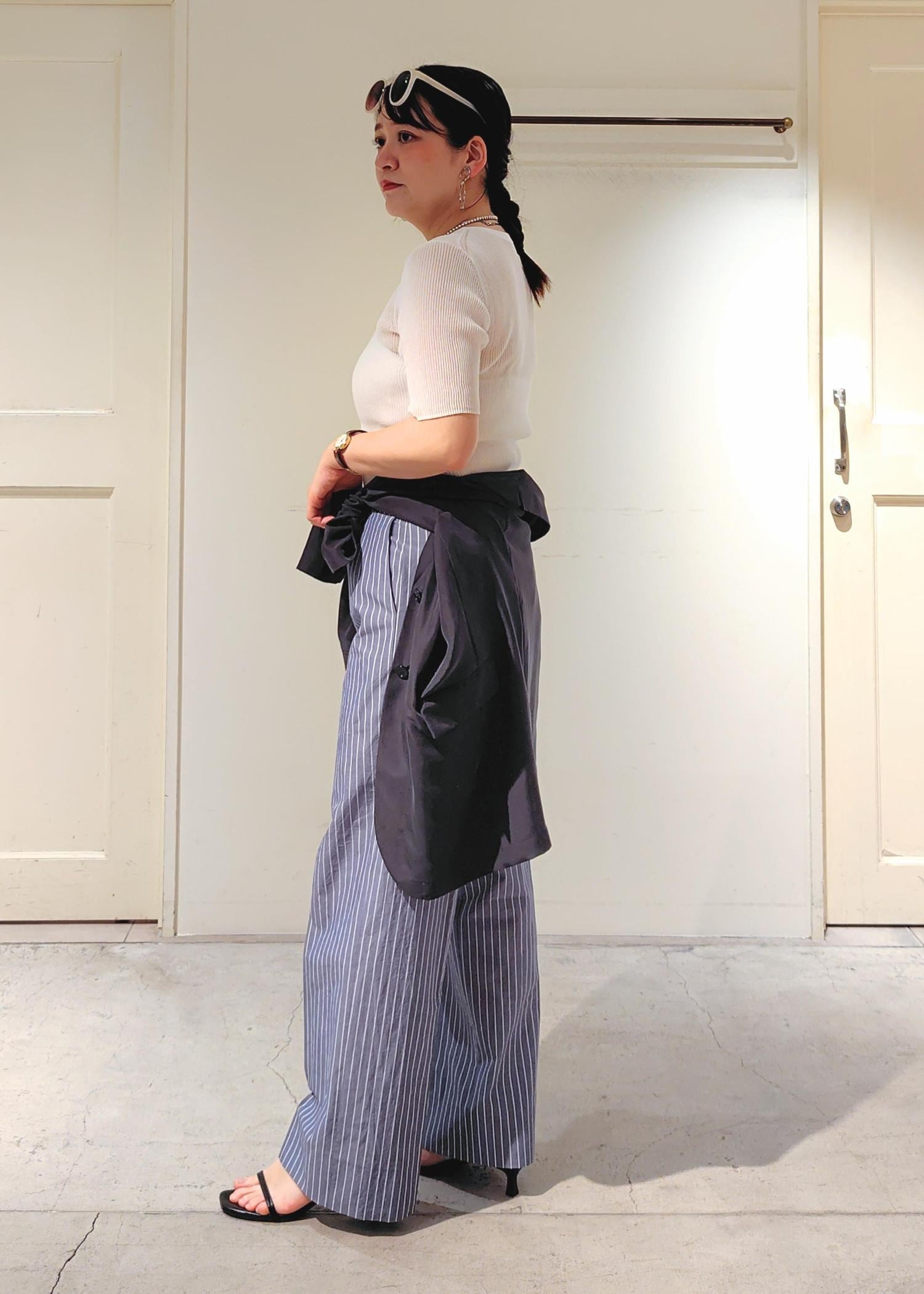web限定のシアーリブニットプルオーバーを取り入れたコーディネートです。