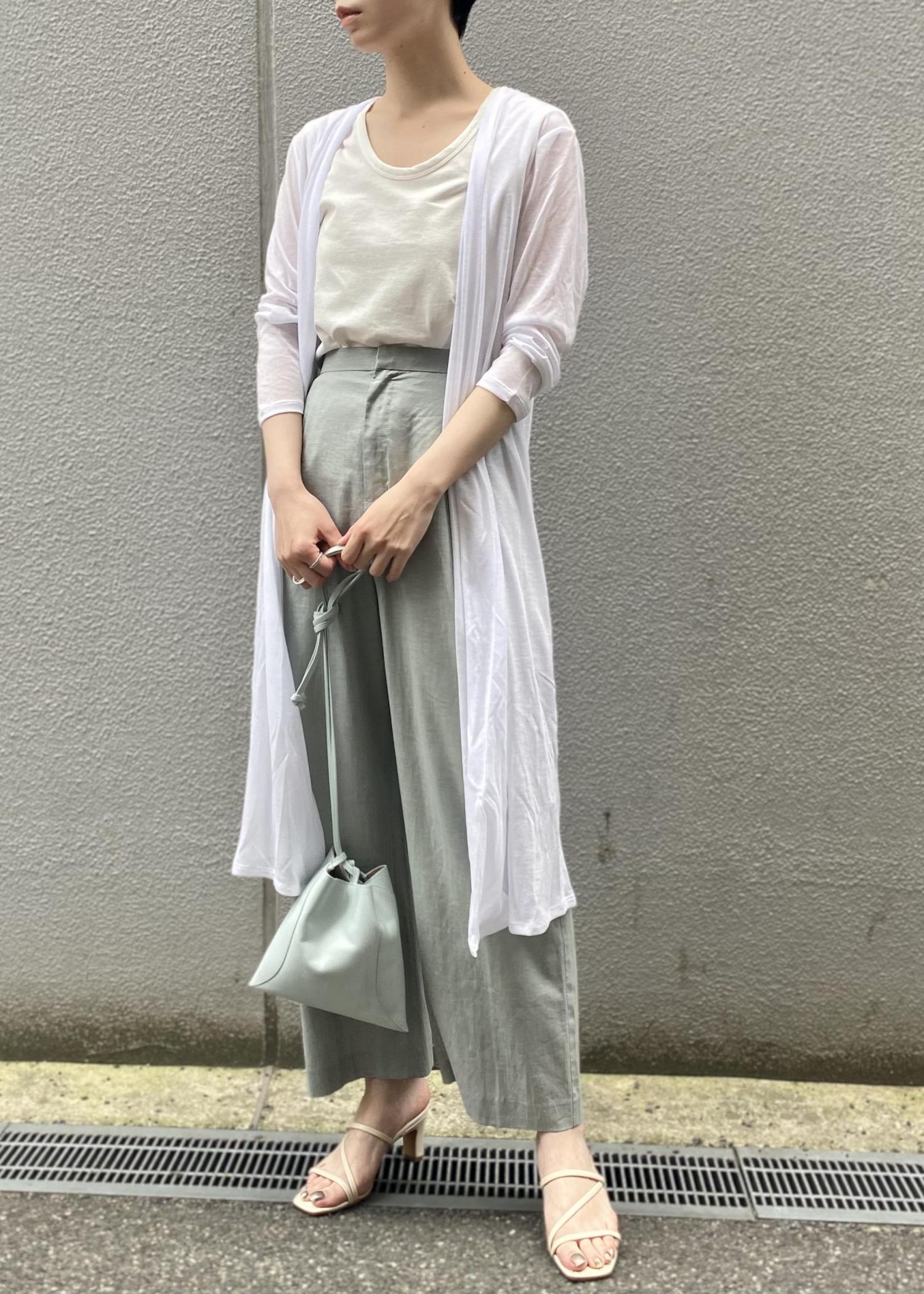 落ち感のあるロングカーディガンは縦のラインが強調されてスタイルアップにもなります◎