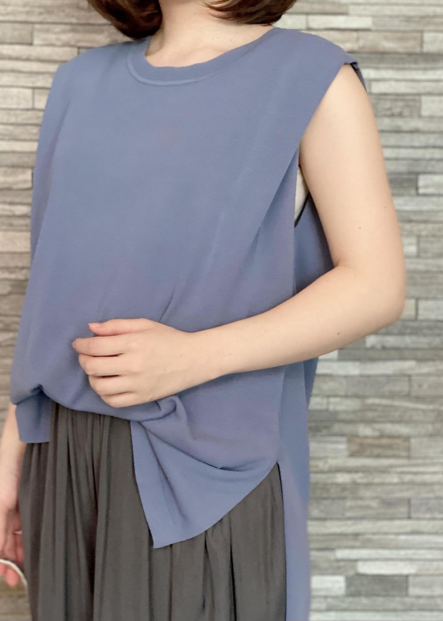接触冷感機能付きのノースリーブニットは、サラッとした肌触りで夏にぴったりな1枚。