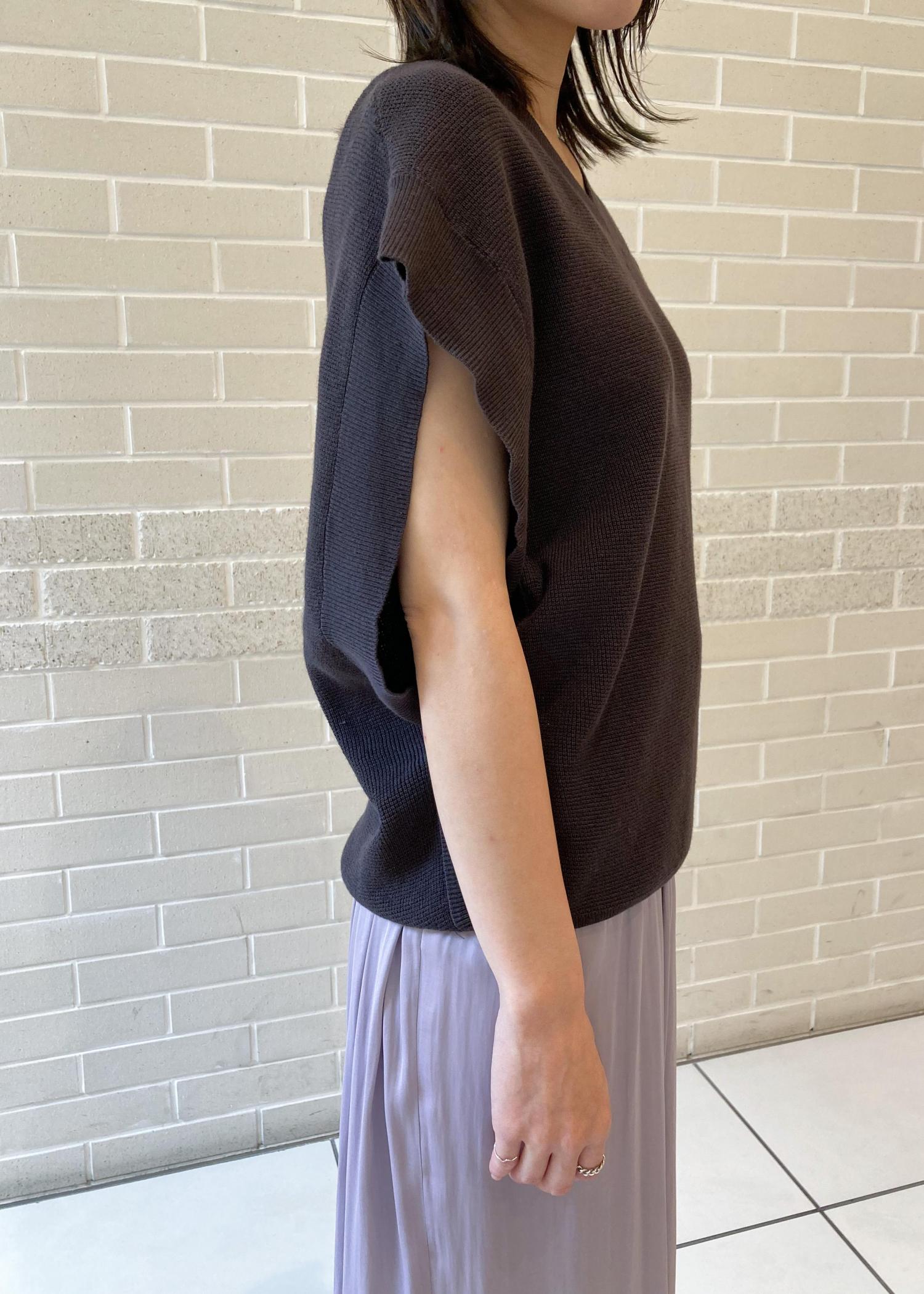 ニットの裾はリブで少し持ち上がるので、ウエストをインしなくてもスッキリと見せてくれます!