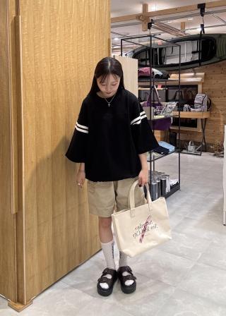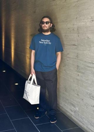 MIYAGIHIDETAKAオリジナルパッチワークのバンダナ柄をスラッシュで表現し、SATURDAYS NYC定番のミラスタロゴプリントを組み合わせた汎用性の高いサイズのエコトート型のバッグです。