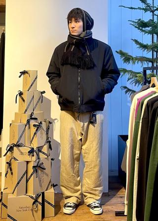 素材の表情を活かしたシンプルなリブ付きブルゾン。ボリュームのある中綿と配色がクラシックな印象のデザインです。