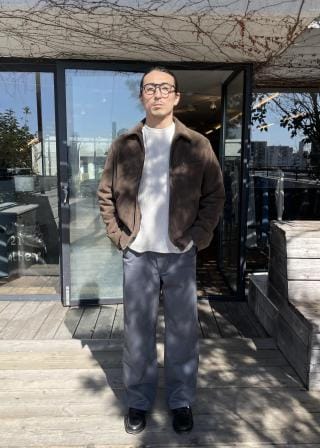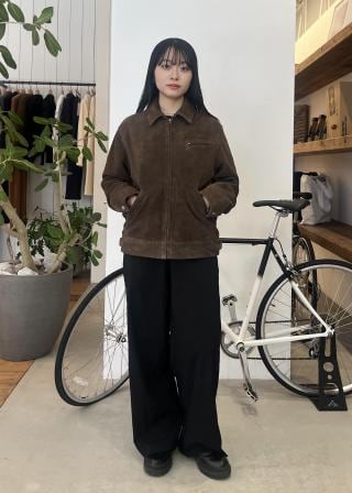 表情のある毛足のスエードと深いブラウンがスタイリングしやすく仕立て映えする素材です。