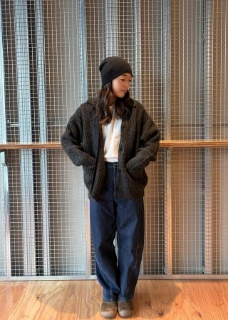 レトロさを感じるボリュームのあるローゲージカーディガンです。