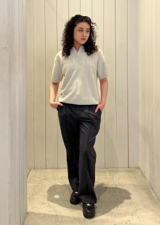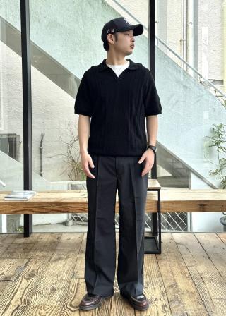 ややリラックスしたサイジングの半袖スキッパーポロデザインです。