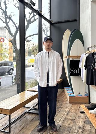 ハリとコシ、適度な落ち感が出るように加工を施した独特なタッチのコットン100%ツイル生地を使用しています。