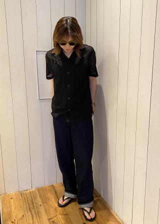 一昨年よりトレンドで人気のあるレースシャツ。今回はジャカードの縦縞パターンが全体に施されたコットンレースで作成されています。