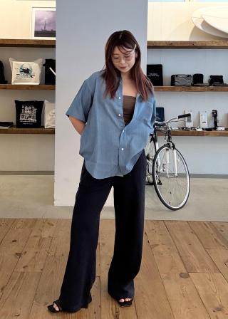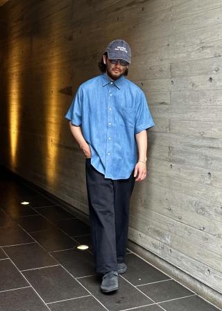 シャンブレー素材で汎用性の高いレギュラーカラーシャツです。