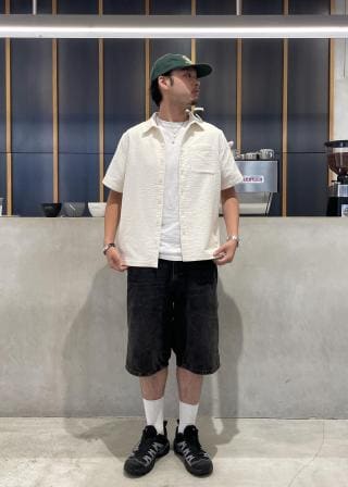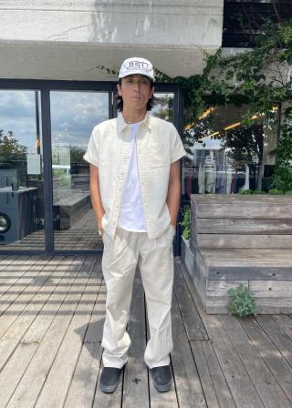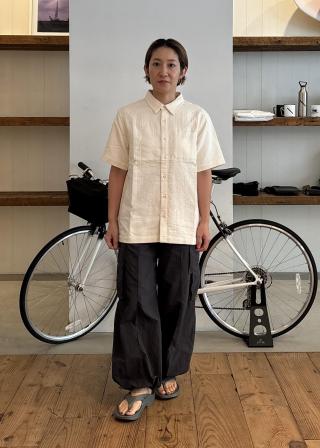 生地のシャドウで折柄の入ったよく見ると表情のある半袖シャツ